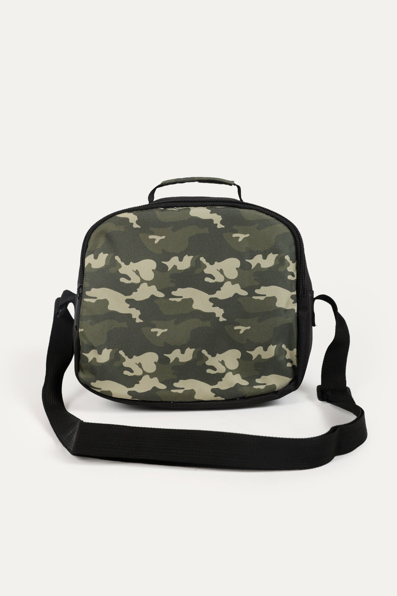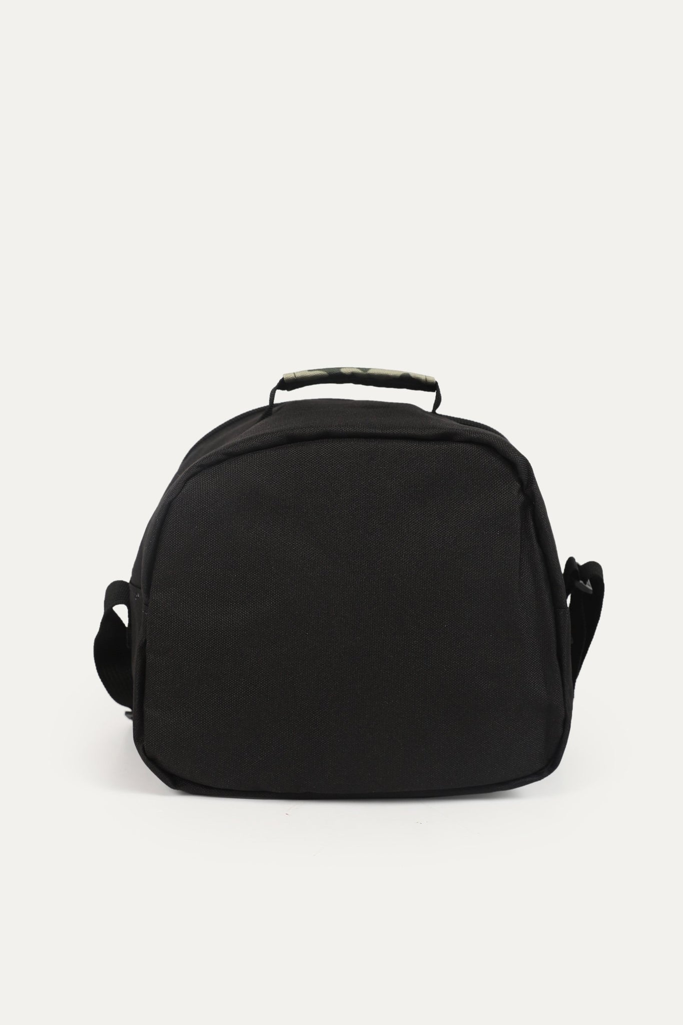 Handy bag with cross body strap, zipper detail, printed front and plain back