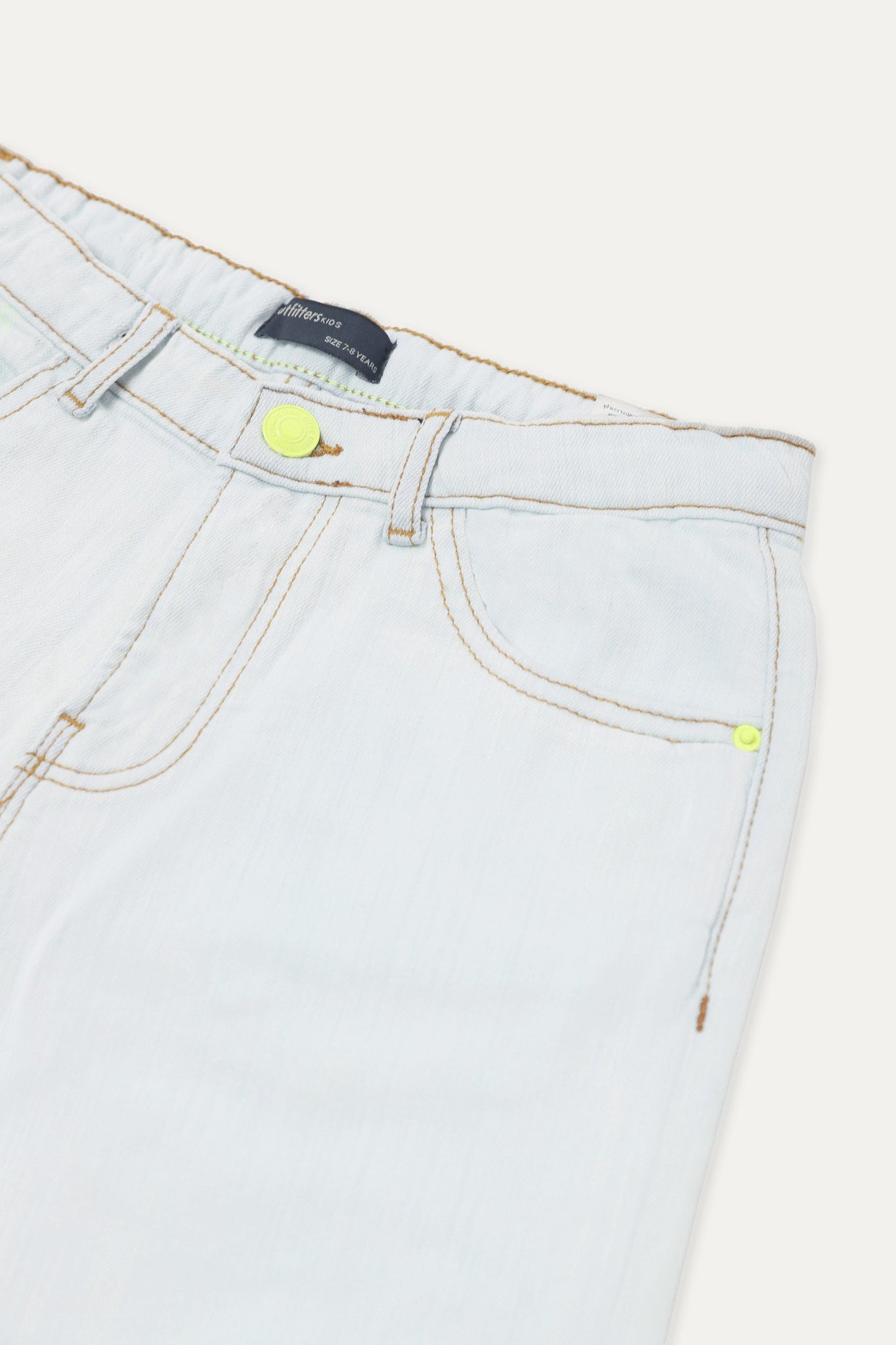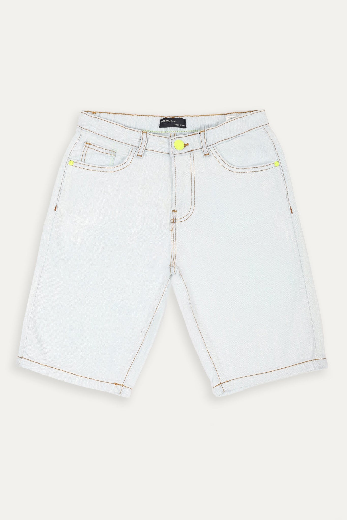 5-pocket shorts in slightly stretchable fabric, neon buttons and contrast thread stitching details