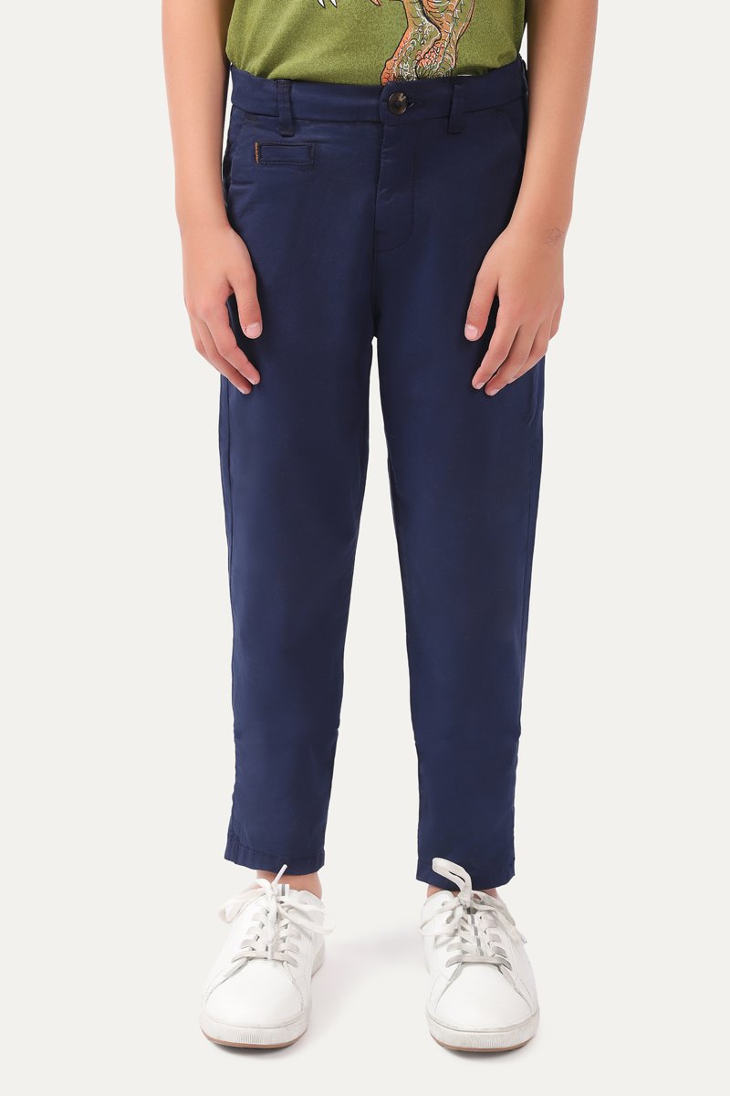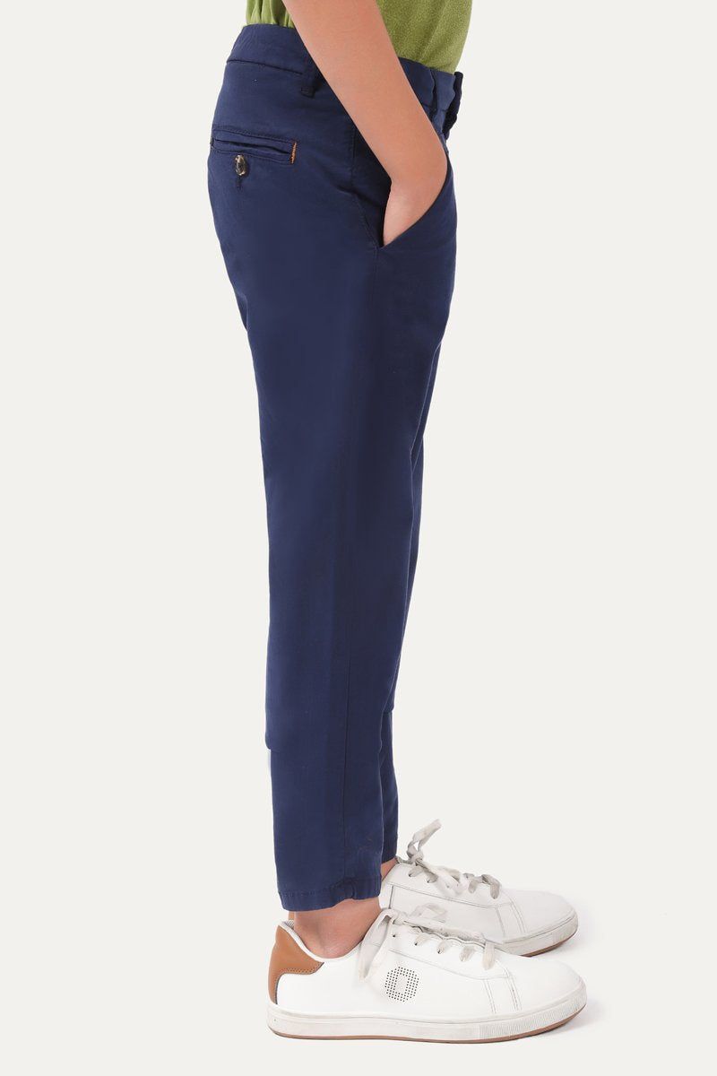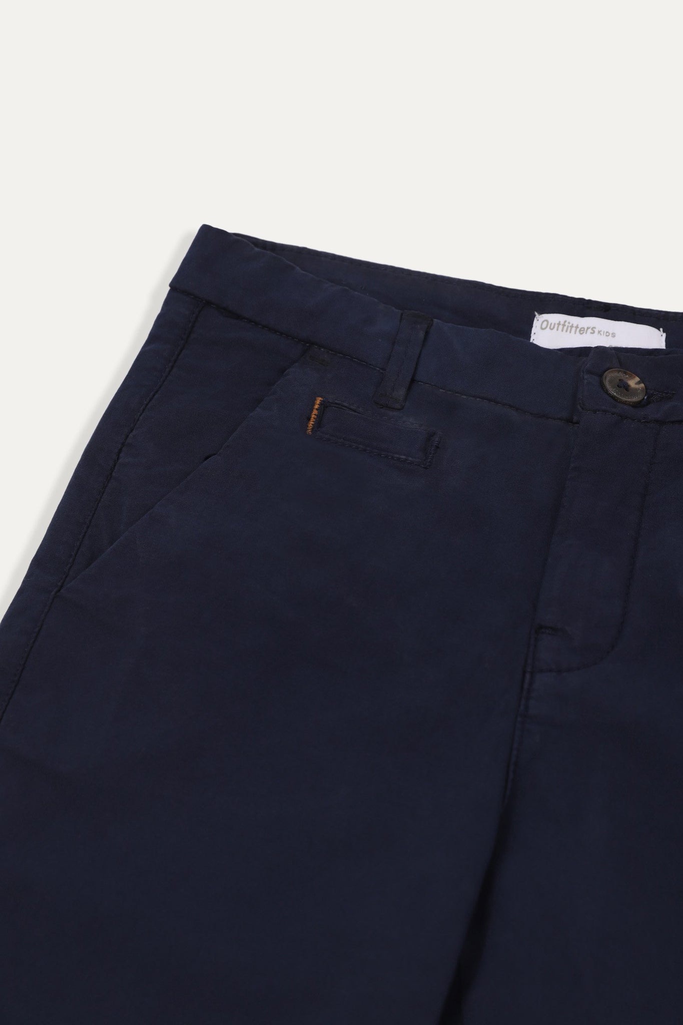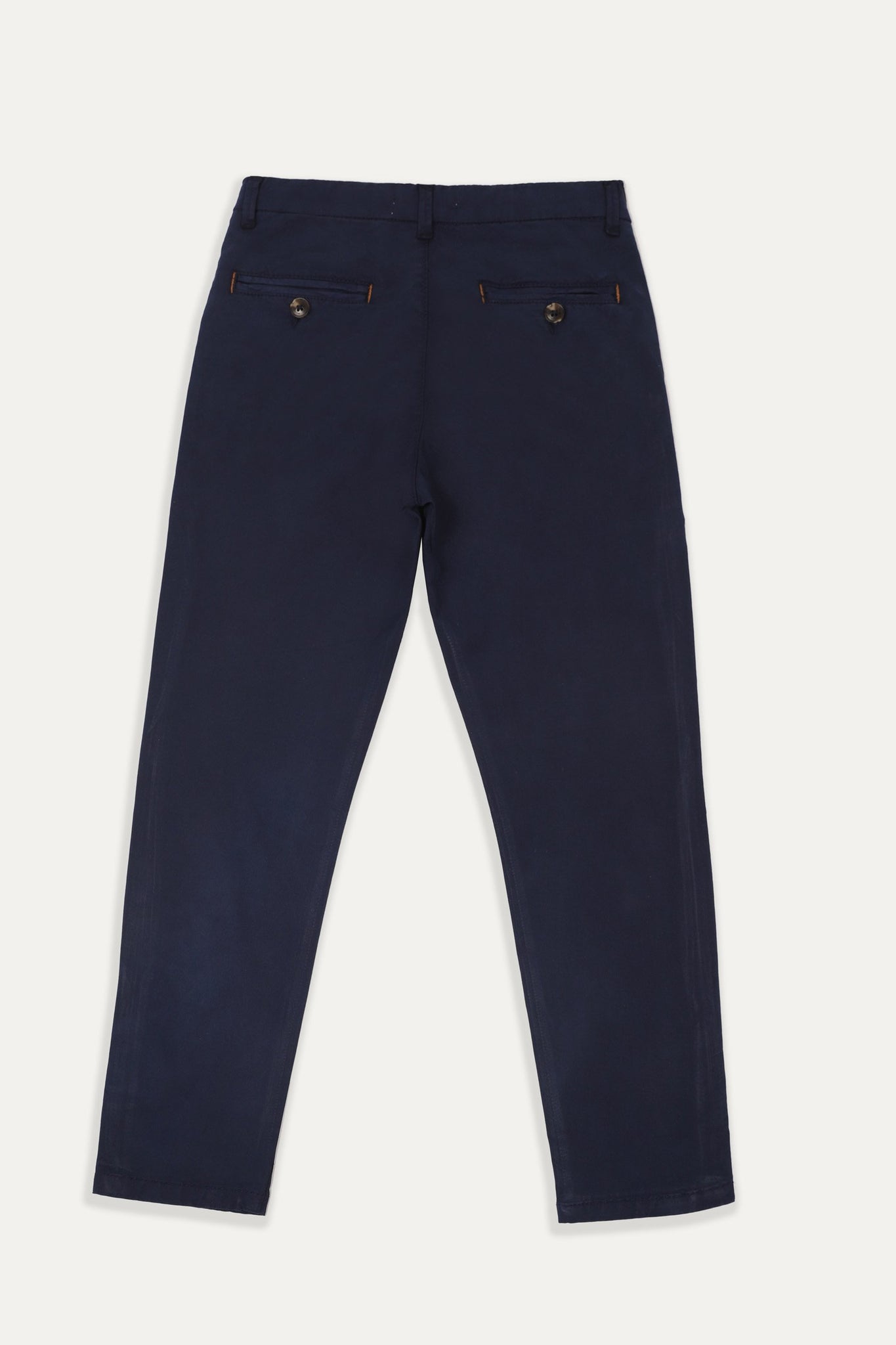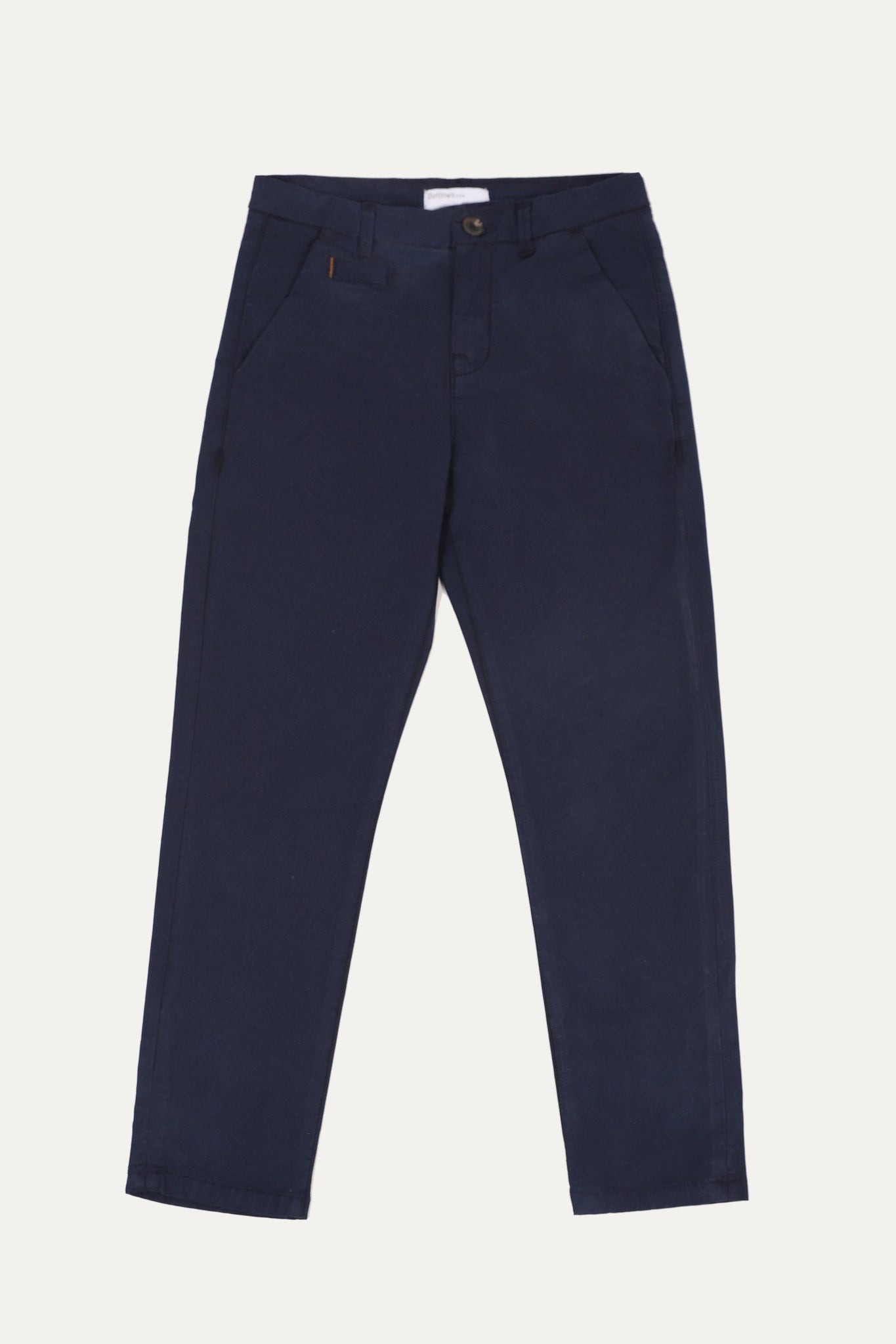 Basic chinos with four pockets and a stylish coin pocket at front, zip-up and one button fastening