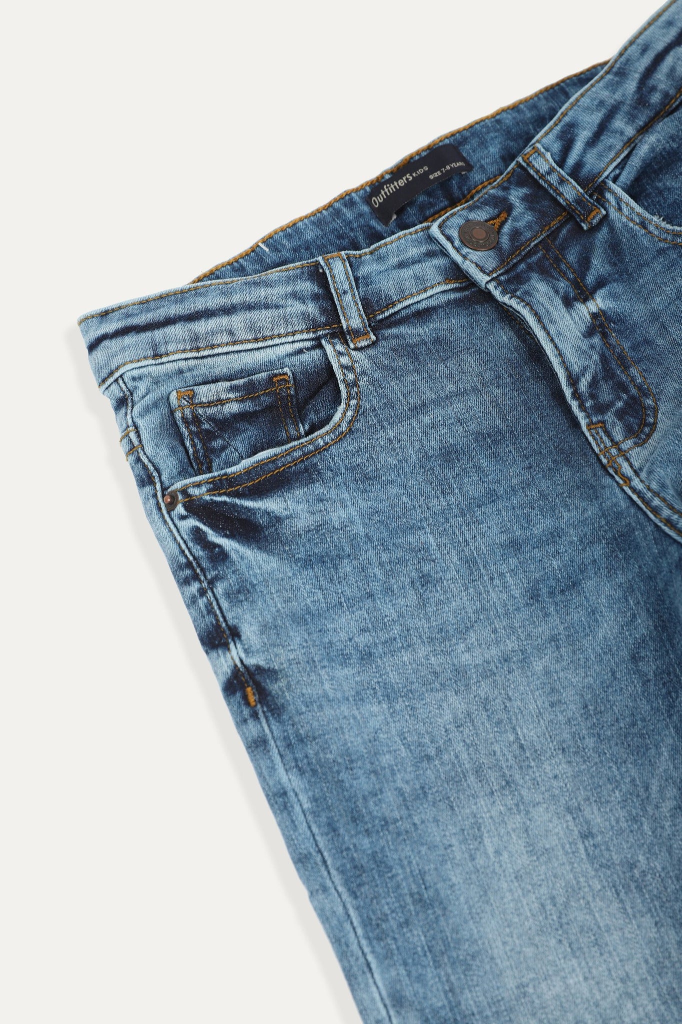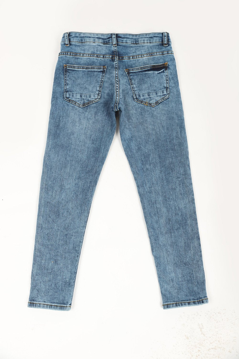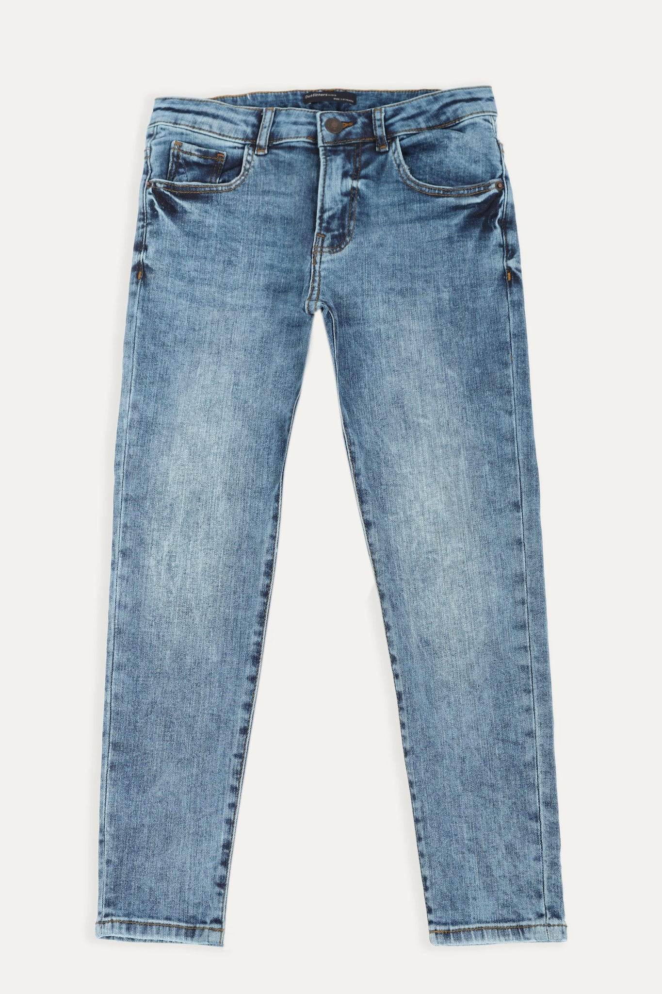 Basic jeans with contrast seams, five pockets, zip-fly and one button fastening