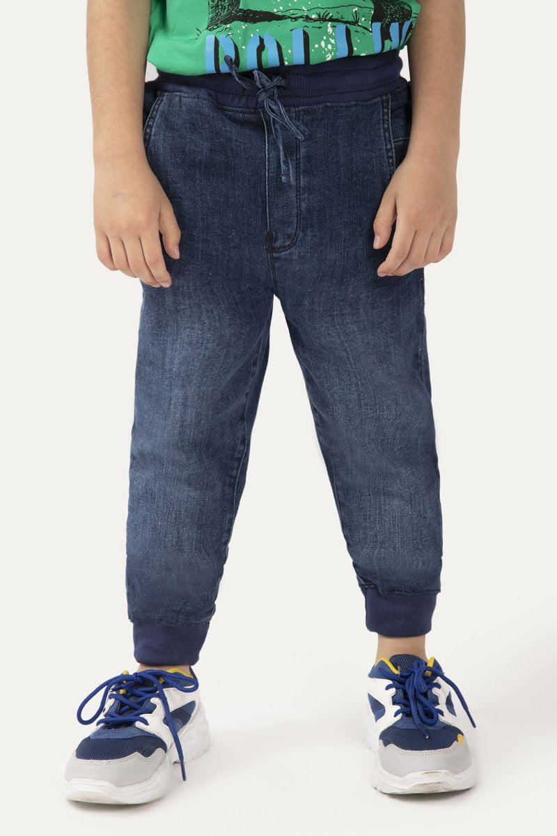 Ribbed Hem Jeans having knotted front with two side's pockets and back patched pockets