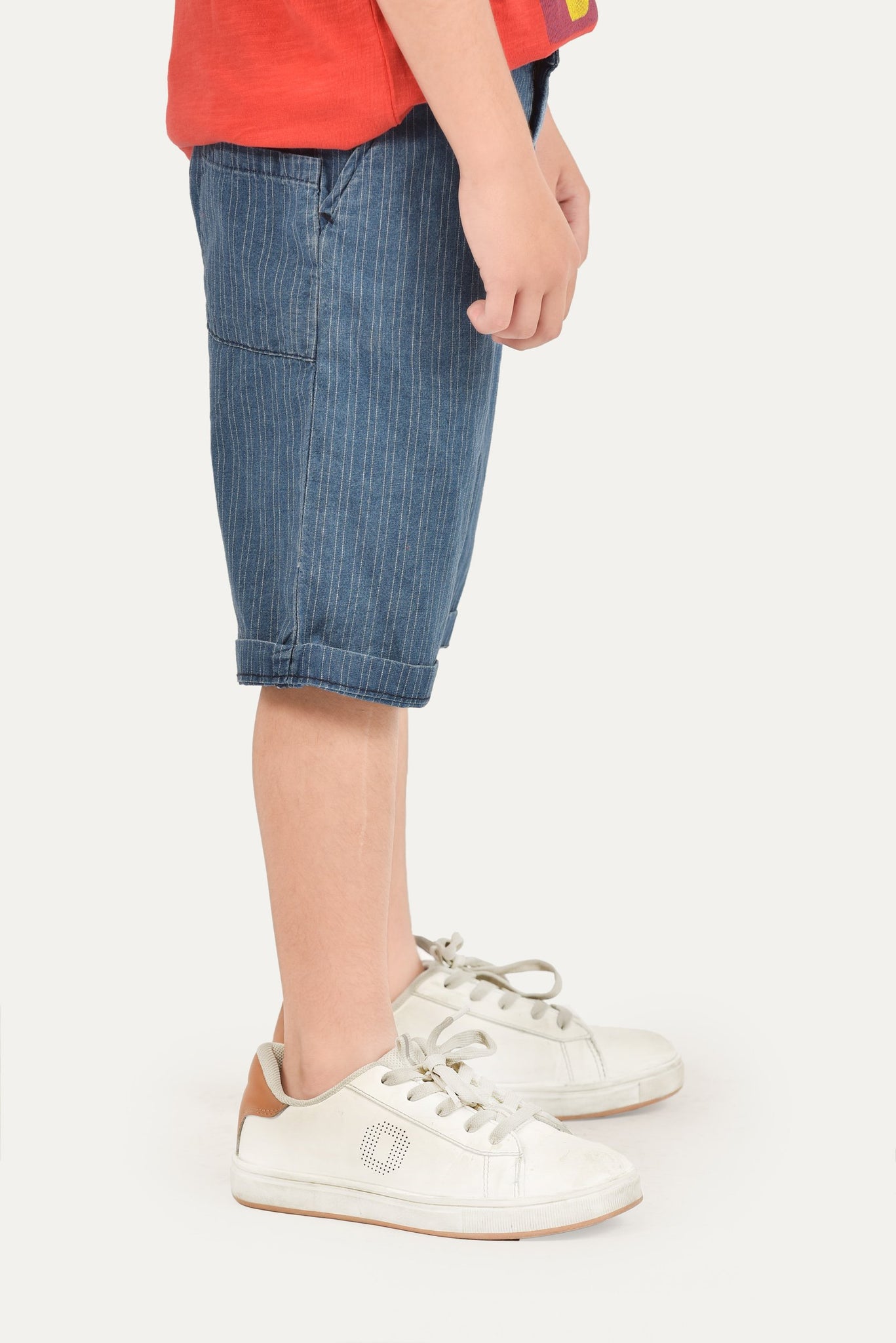 Shorts with belt loop, side pockets, buttoned front and plain back
