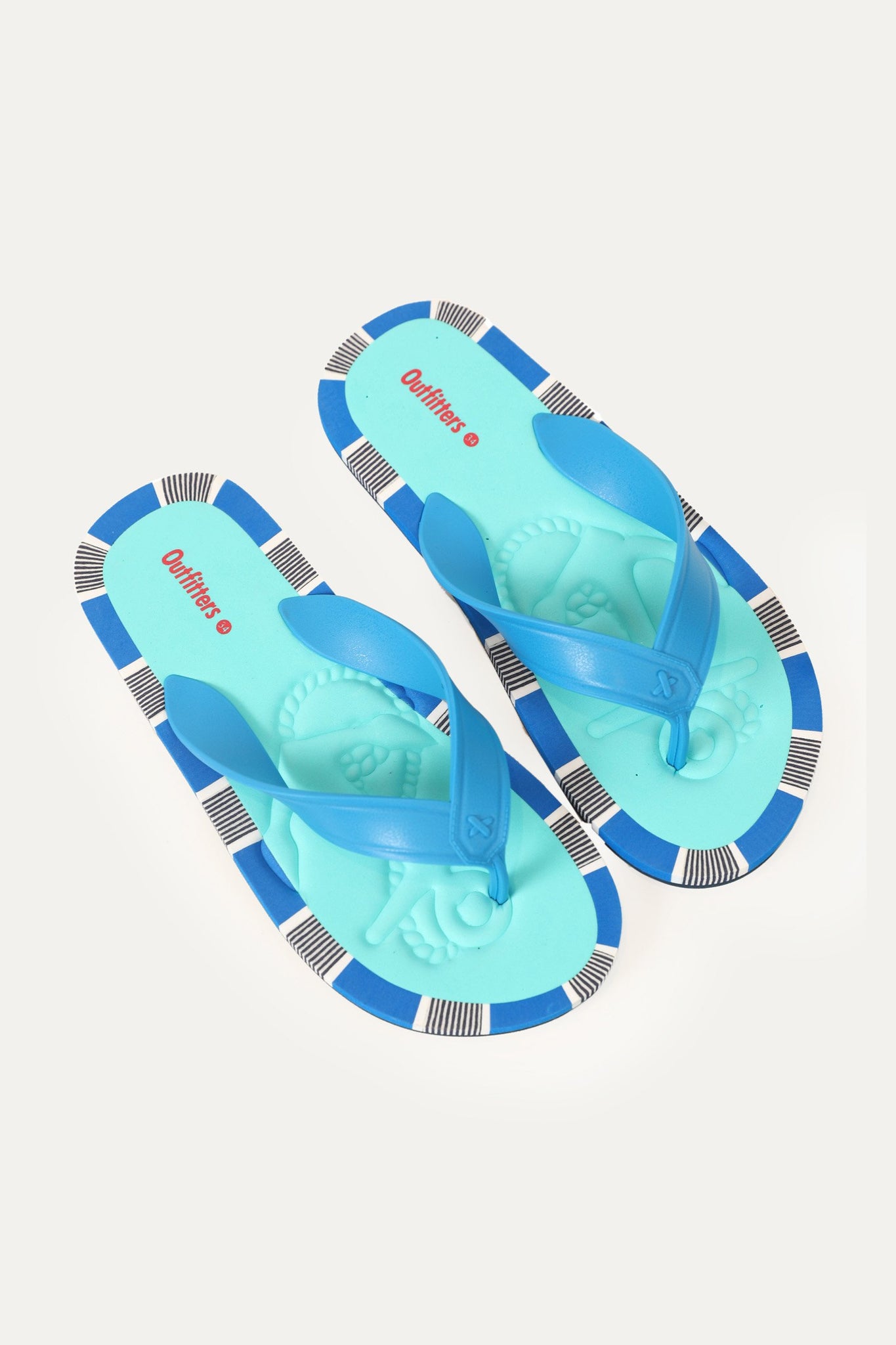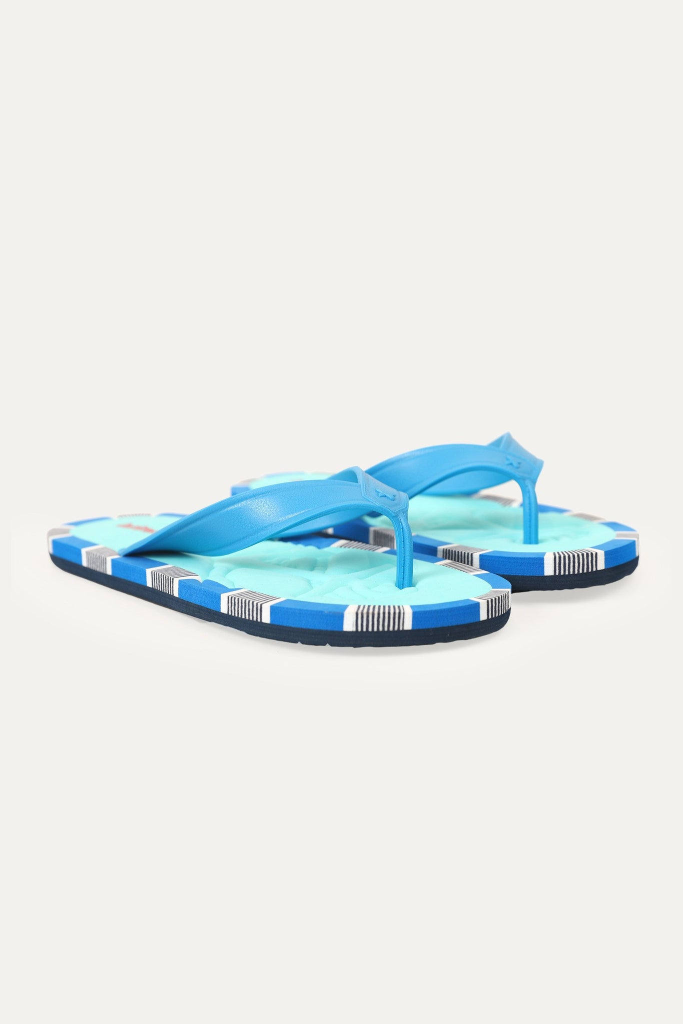 Rubber strap flip flop with EVA sheet sole and print on the edges of th insole