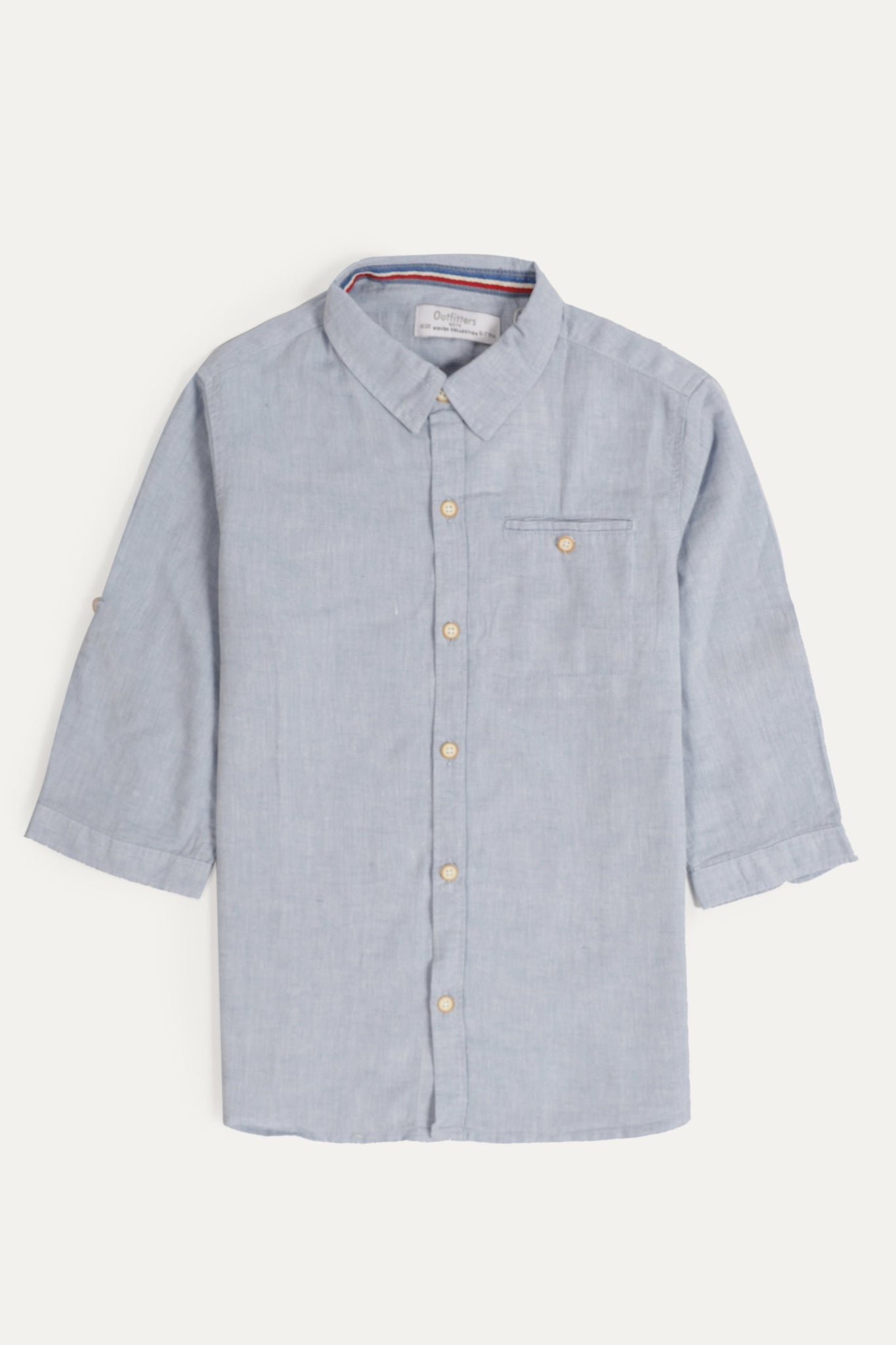 Buttoned cuffs, full sleeve shirt with a collar, chest pocket front and plain backComposition & Care: