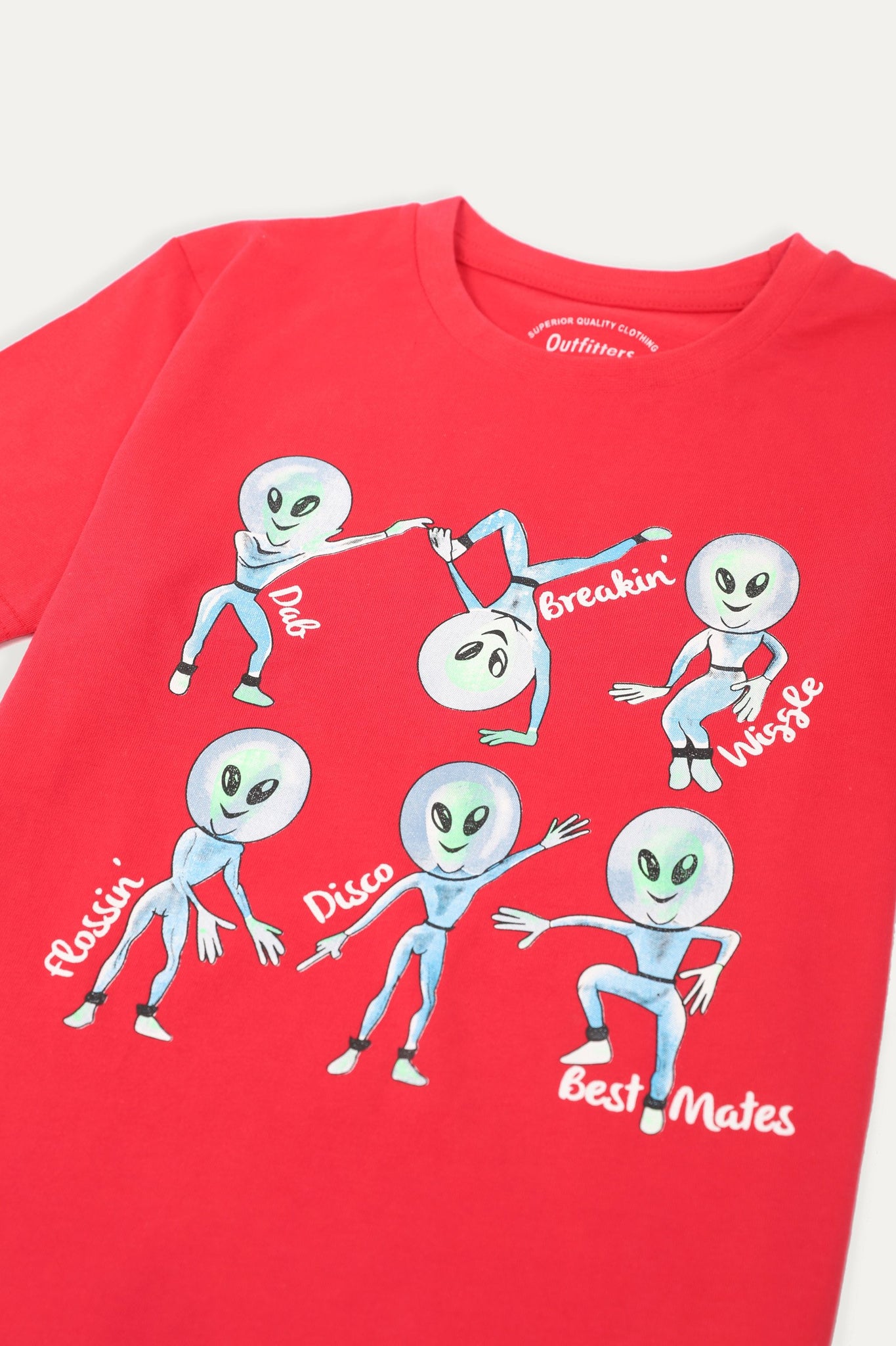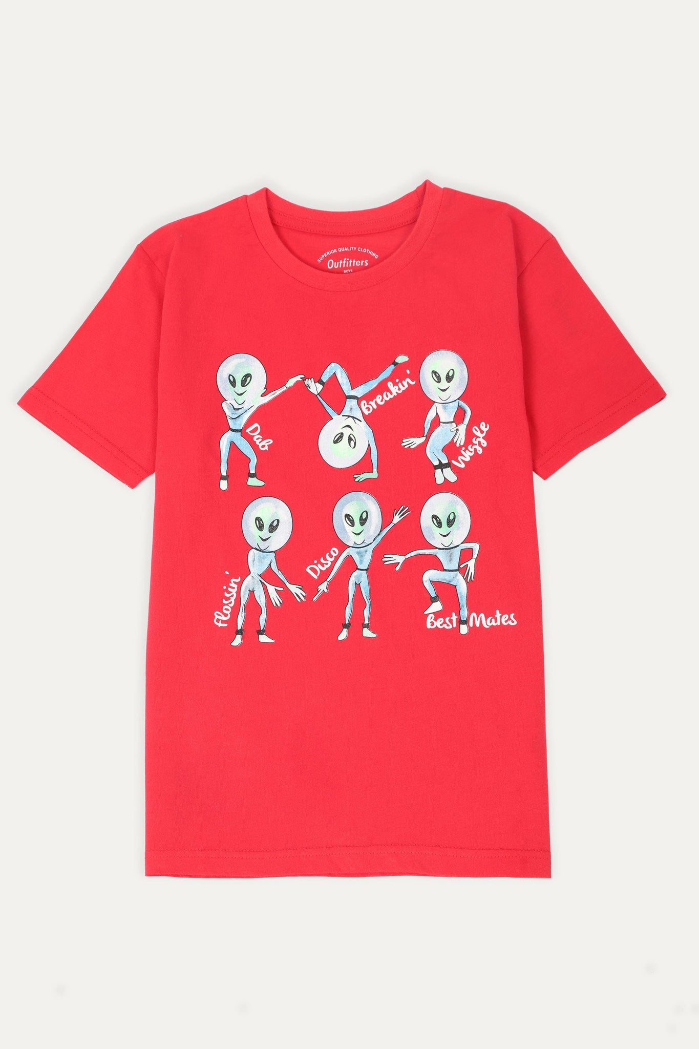 Graphic t-shirt with a round neck, half sleeves and aliens print on front