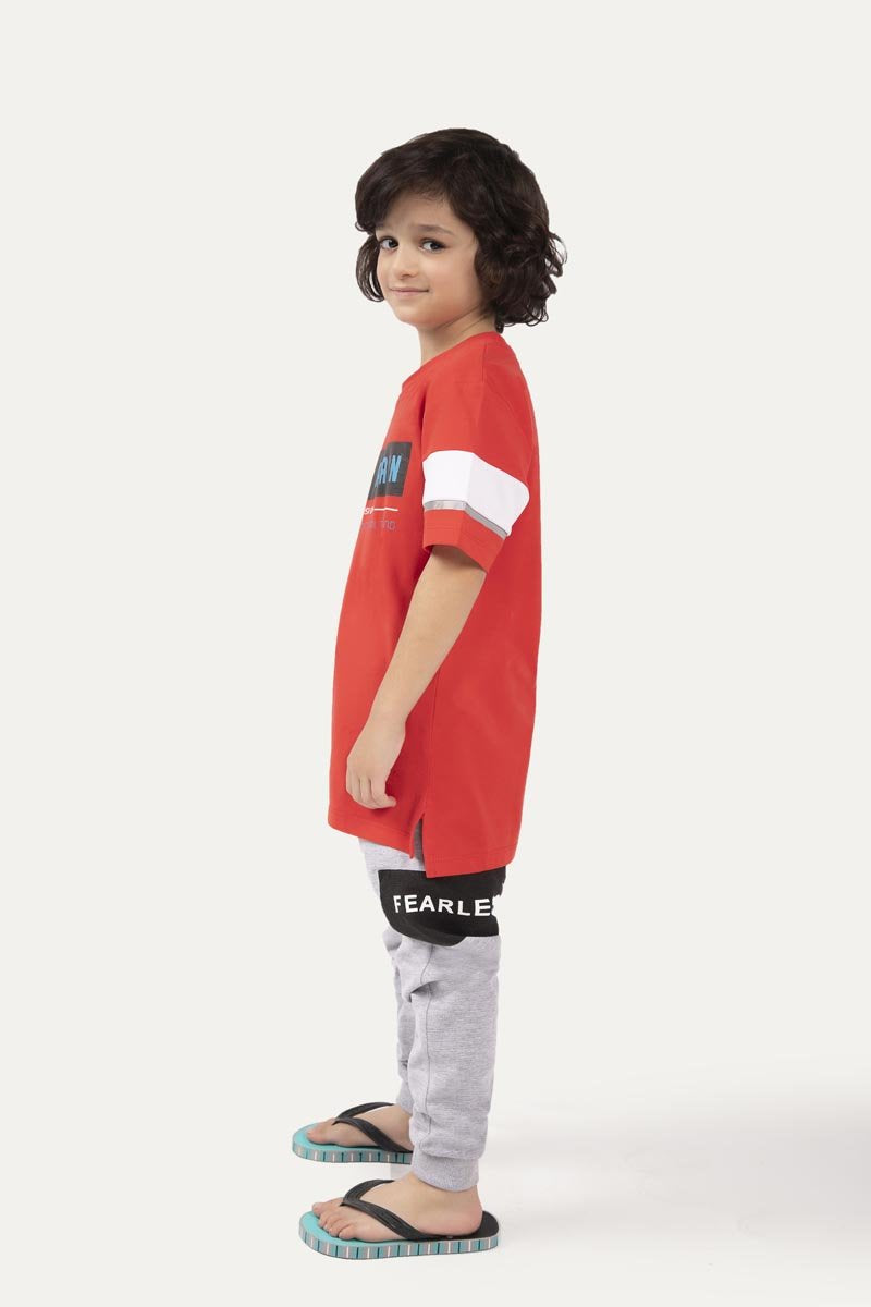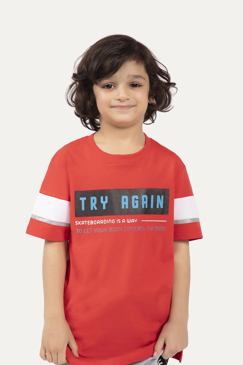 Half sleeve shirt with a round neck and print on front