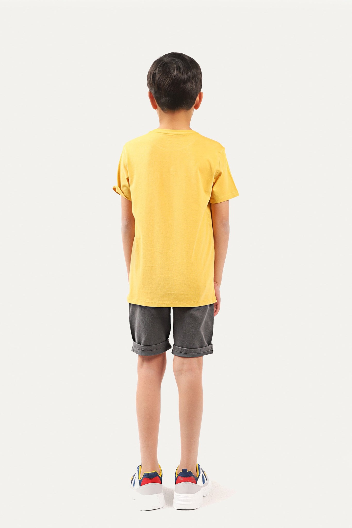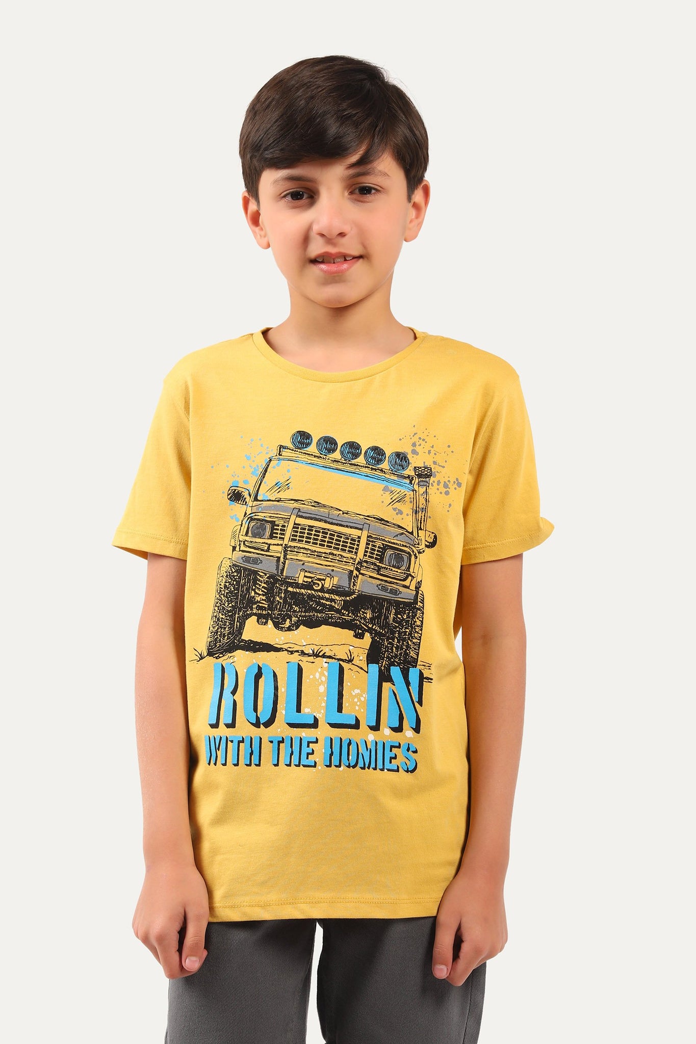 Graphic t-shirt with a round neck, half sleeves and printed design on front