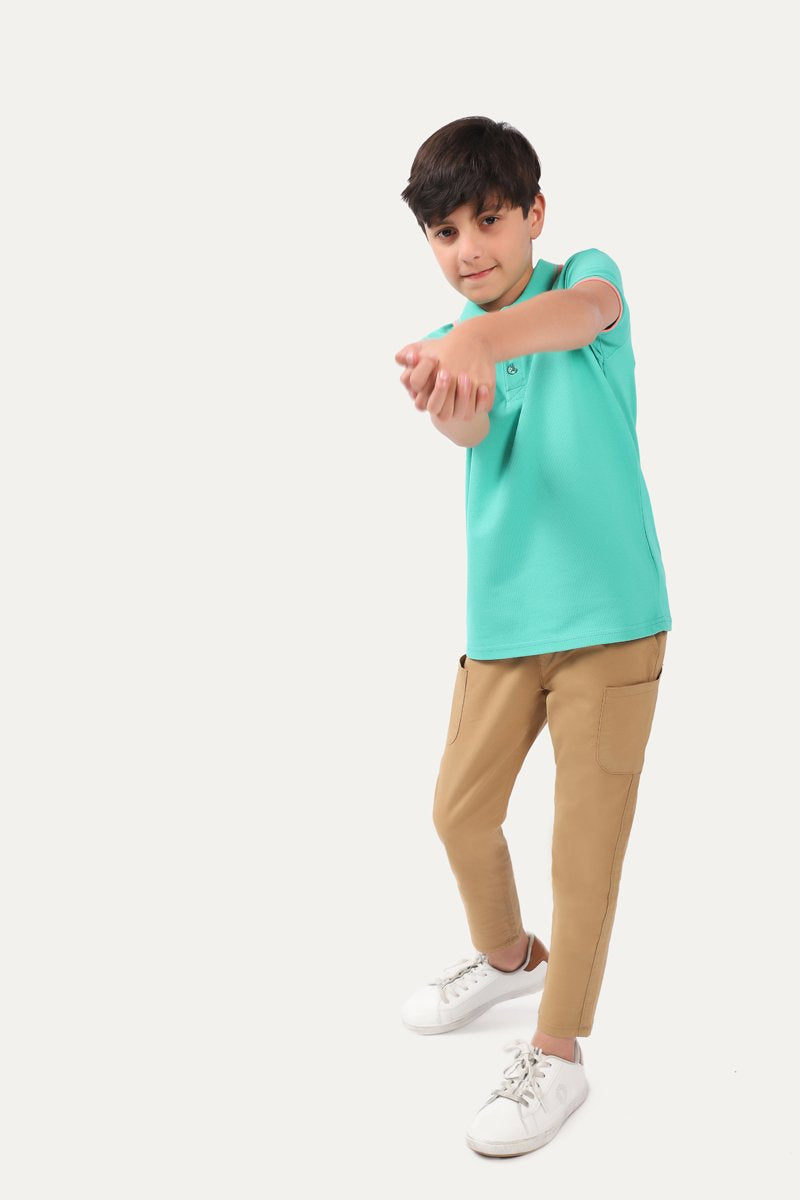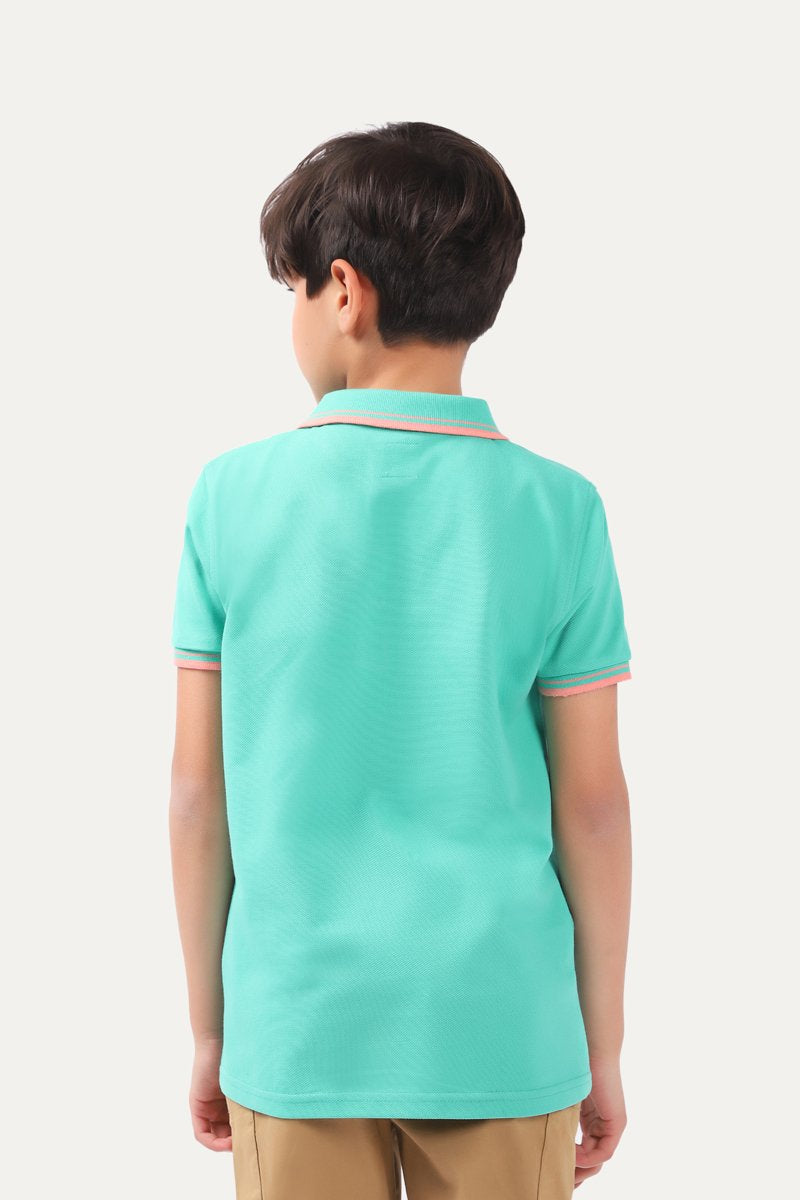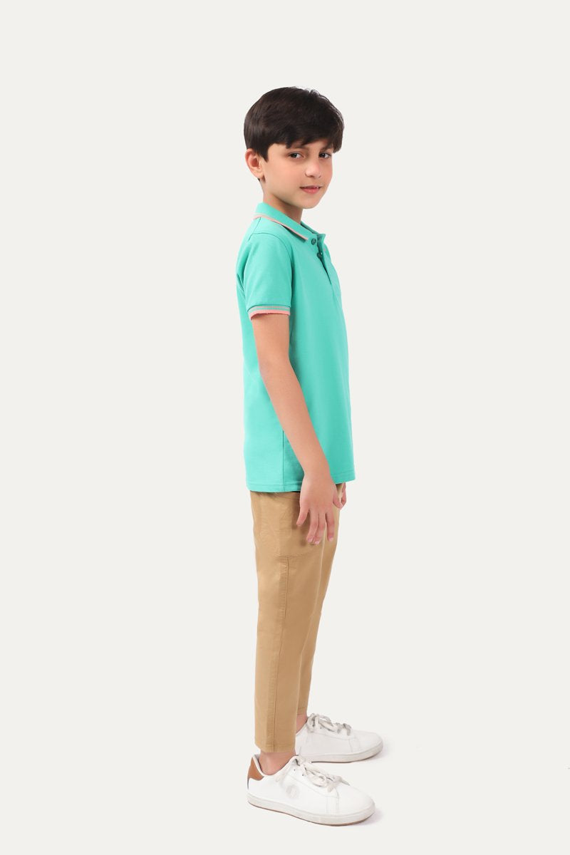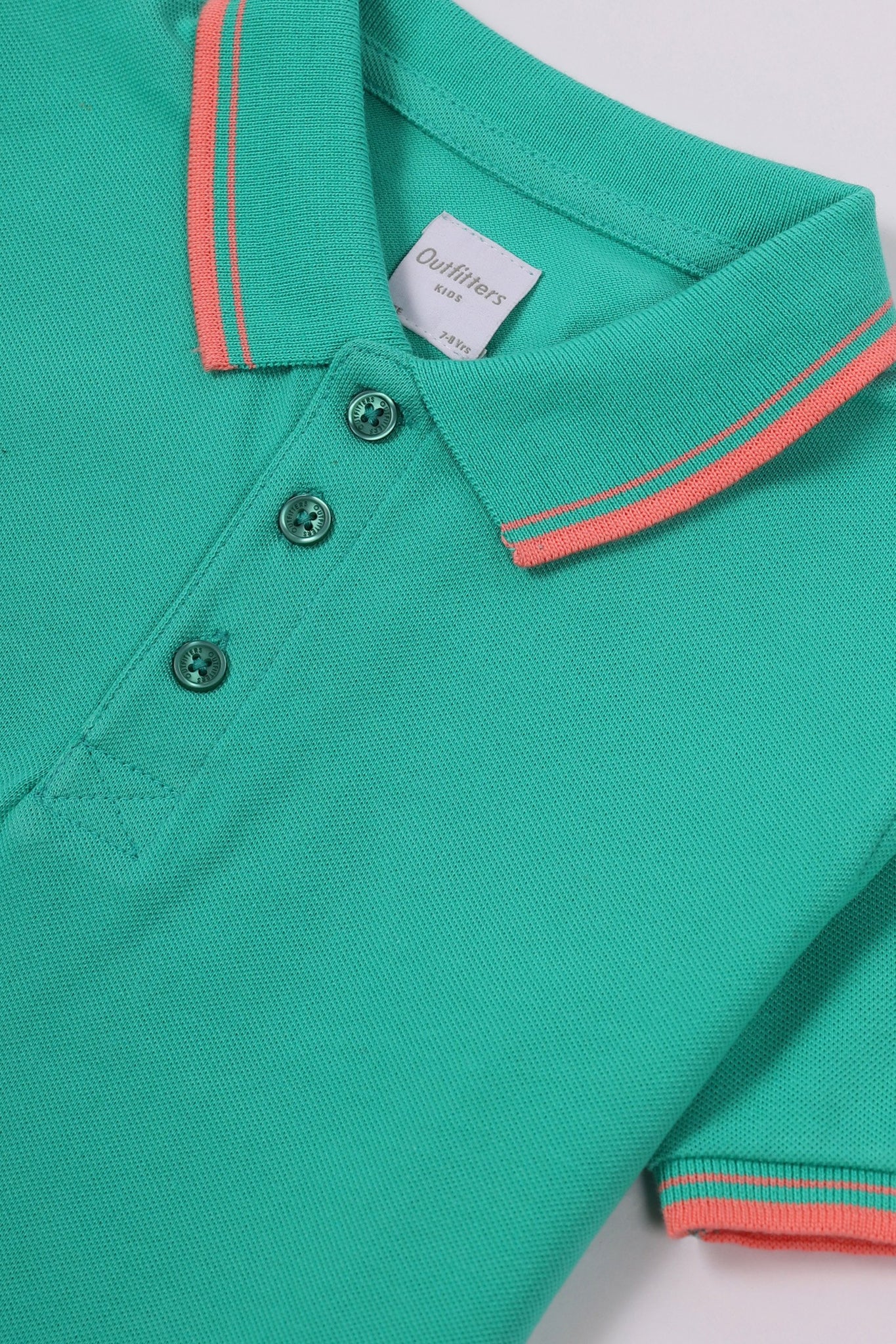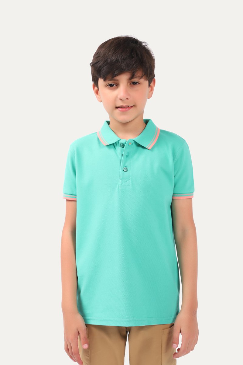 Colored Collar buttoned Polo Shirt featured half sleeves with plain front and back