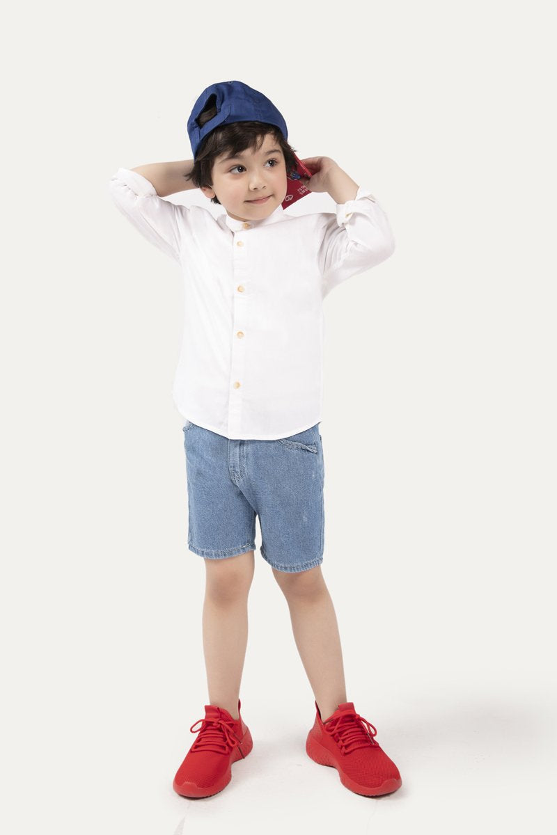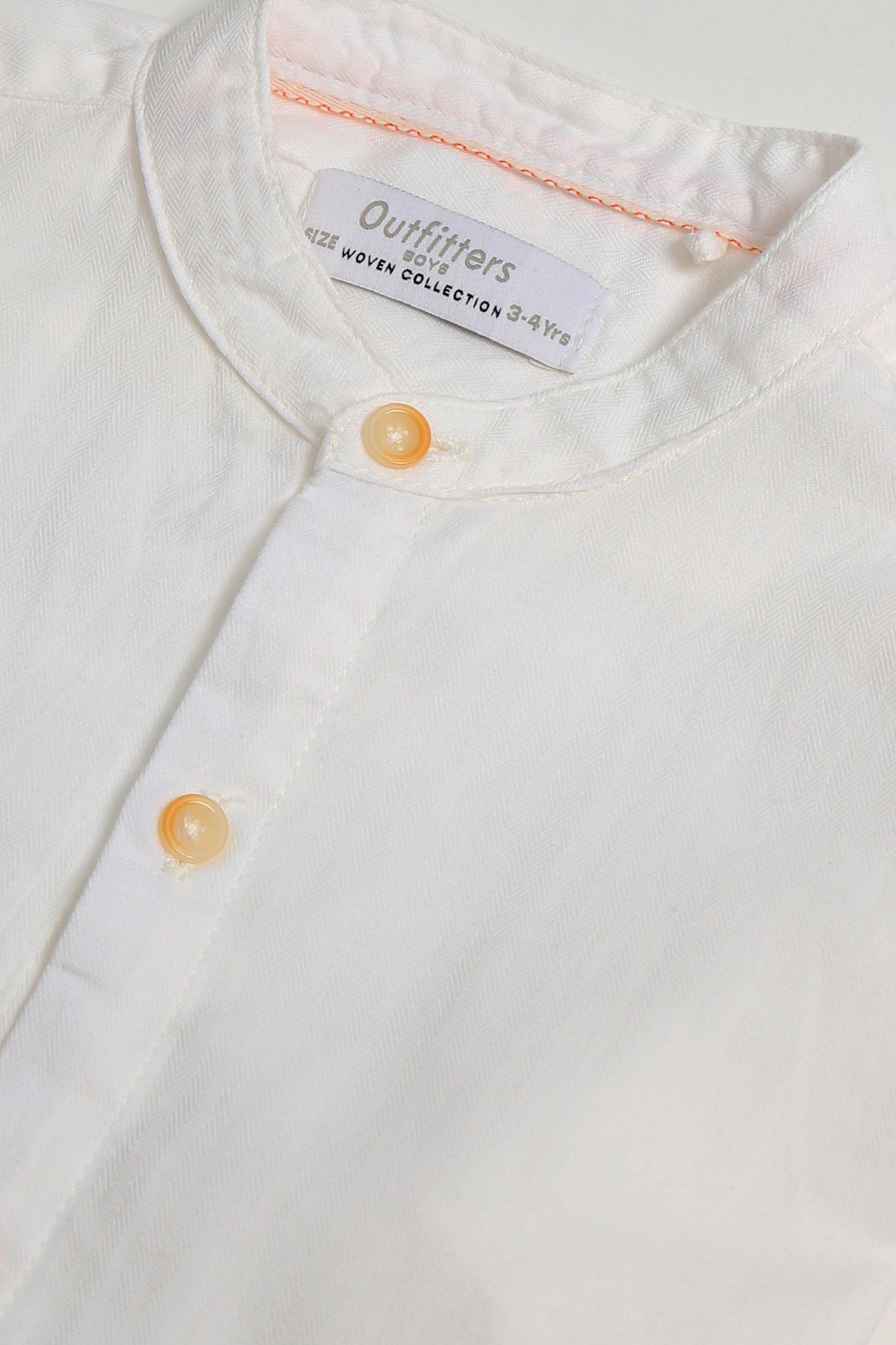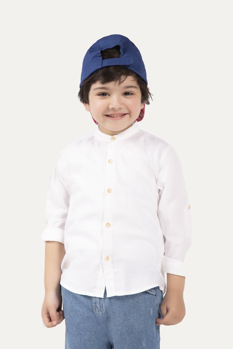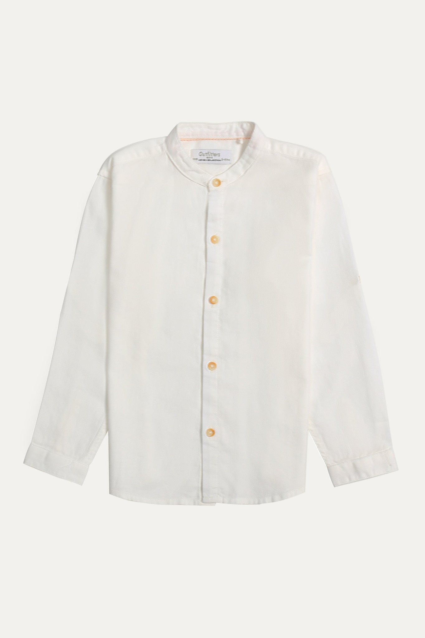 Henley collar shirt featuring full sleeves, button down front, buttoned cuffs and adjustable sleeves design