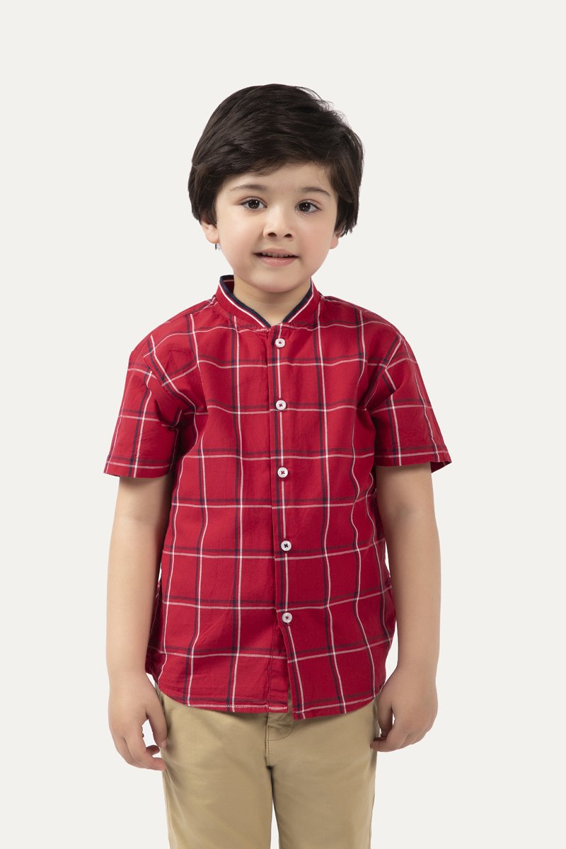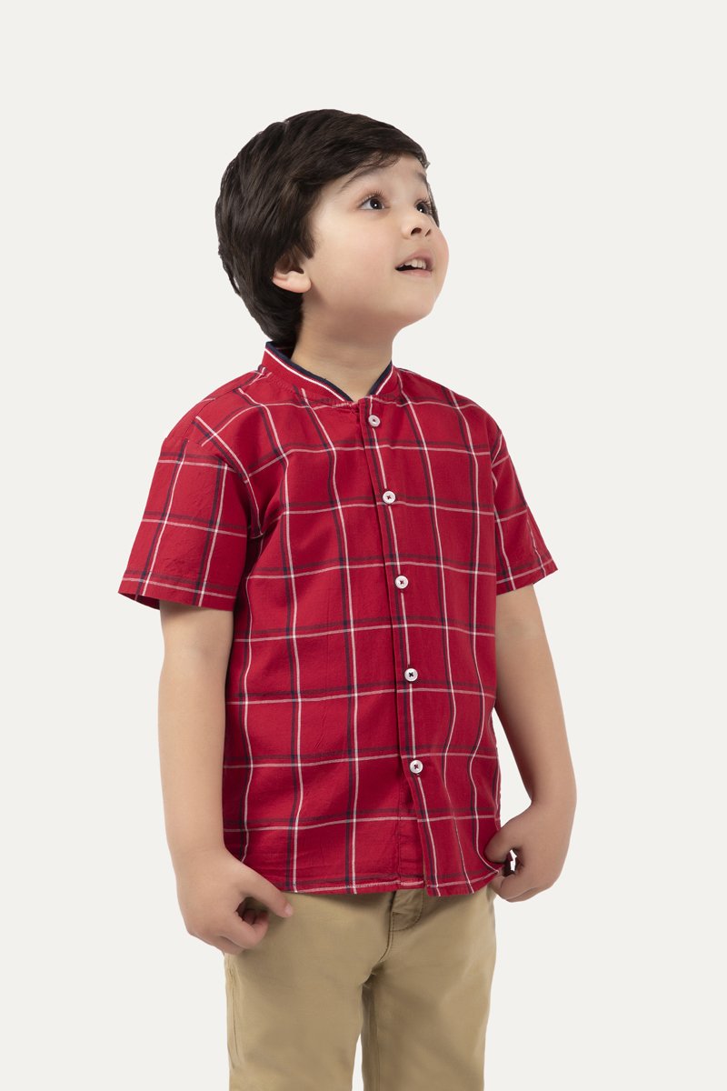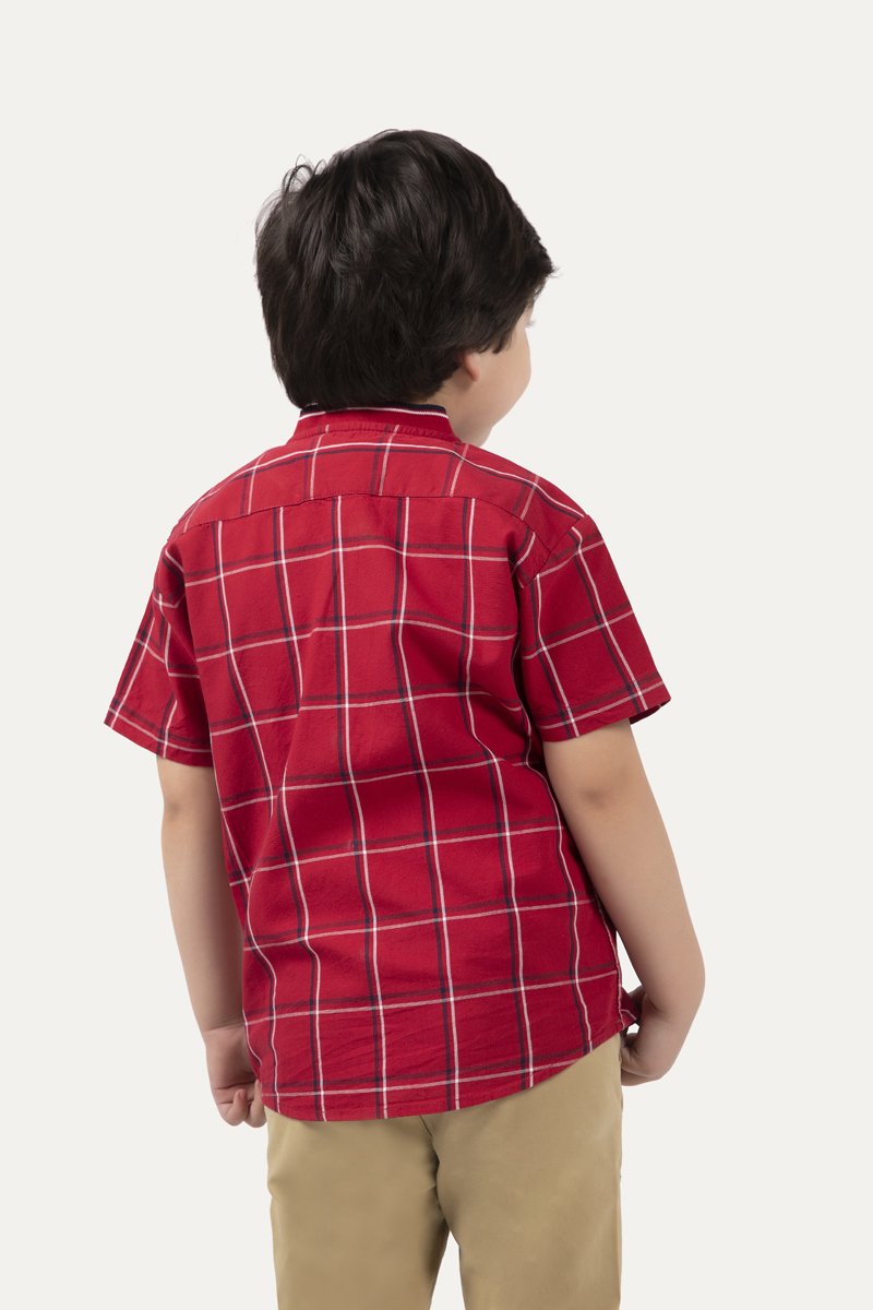 Half sleeve shirt with button down front and broad check design