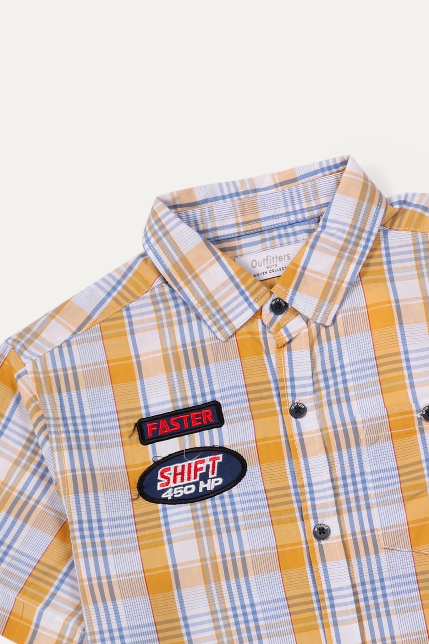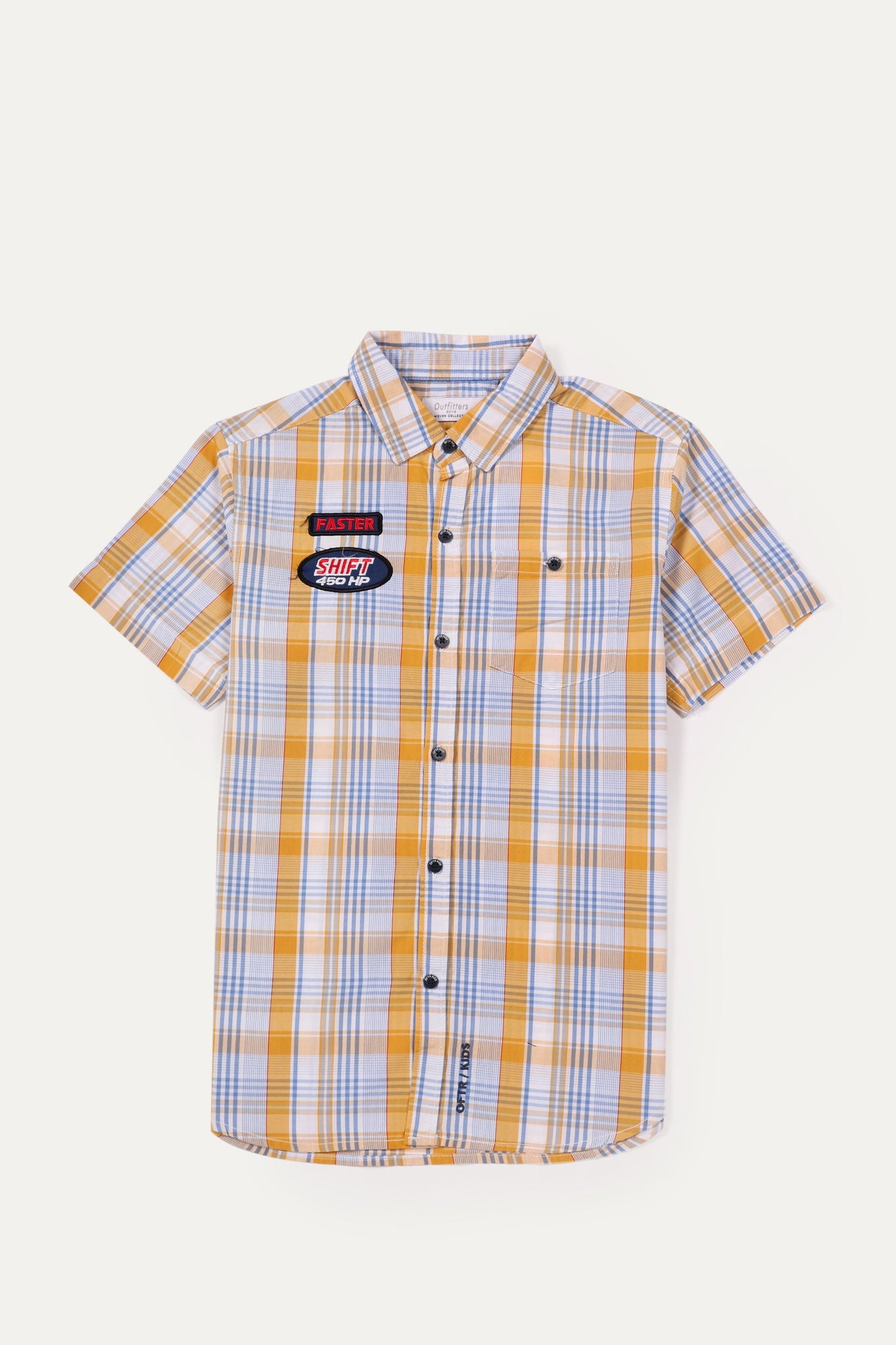 Shirt with half sleeves, basic collar, graphic printed check front and back