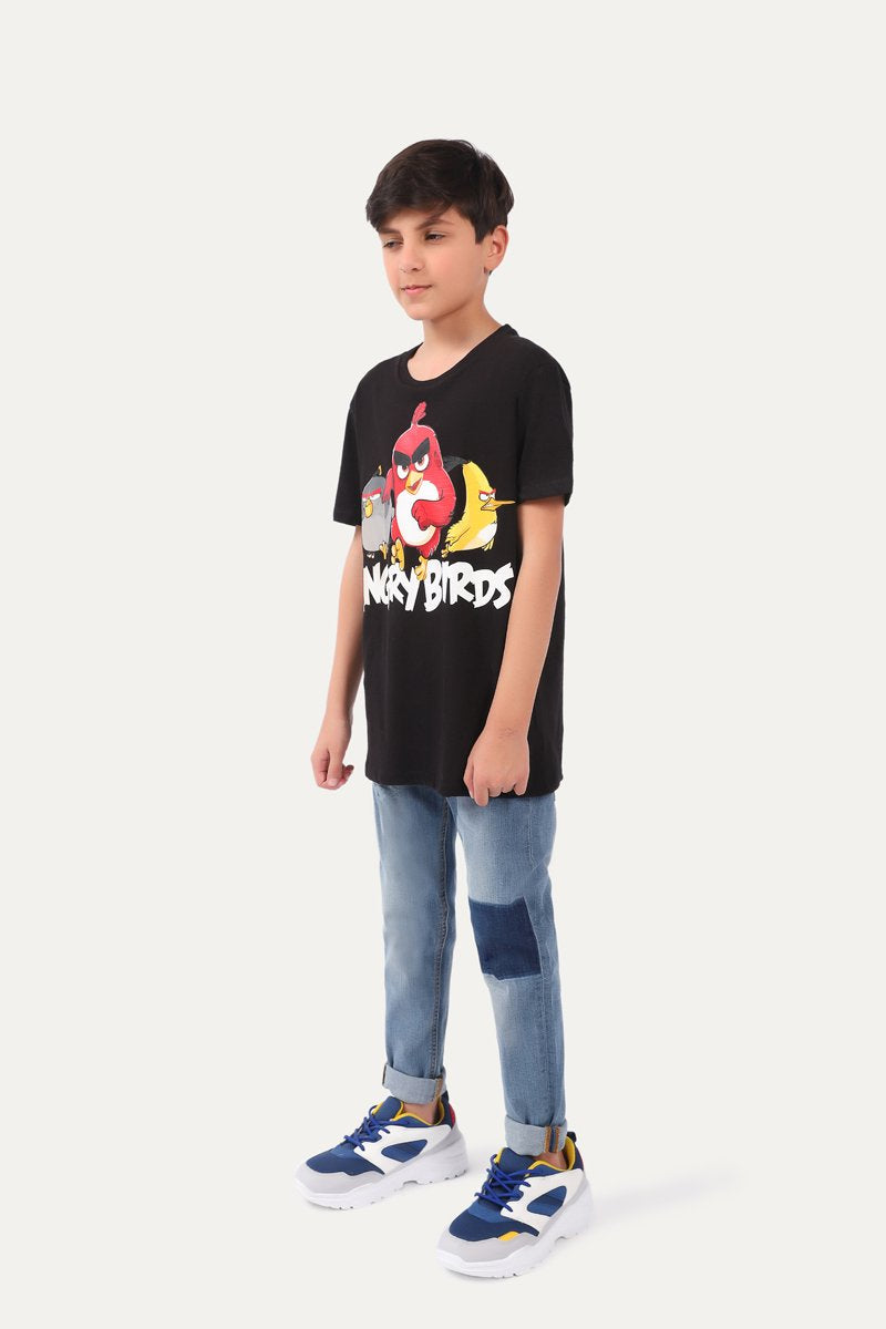 Half sleeve t-shirt with a crew neck, angry bird print front and plain back