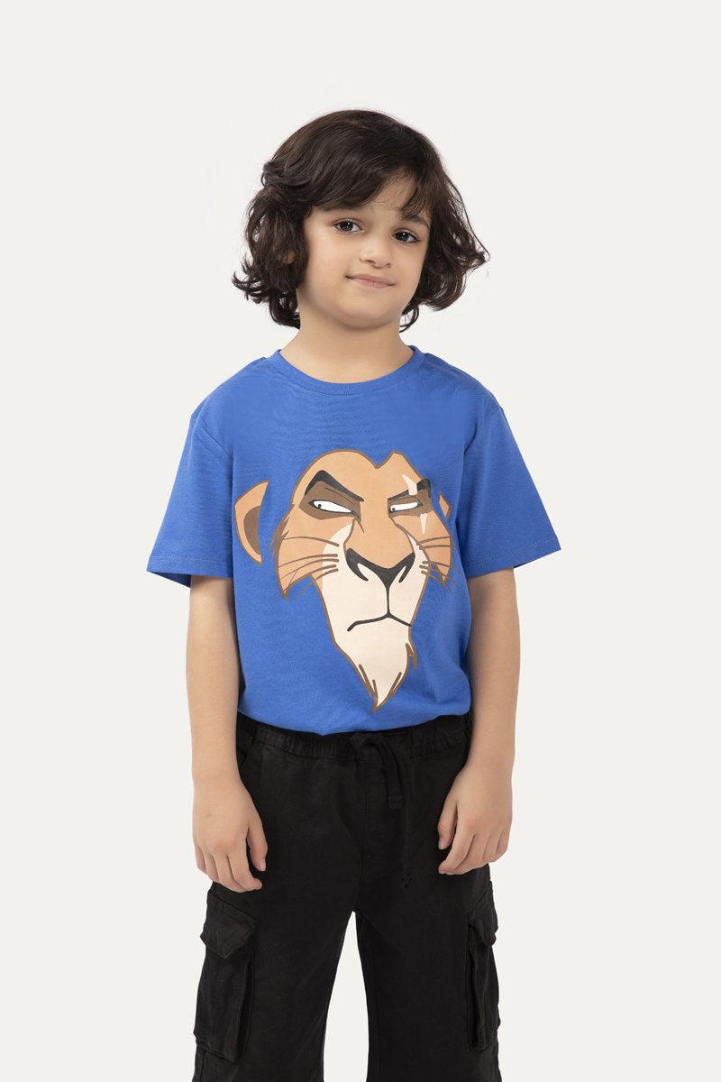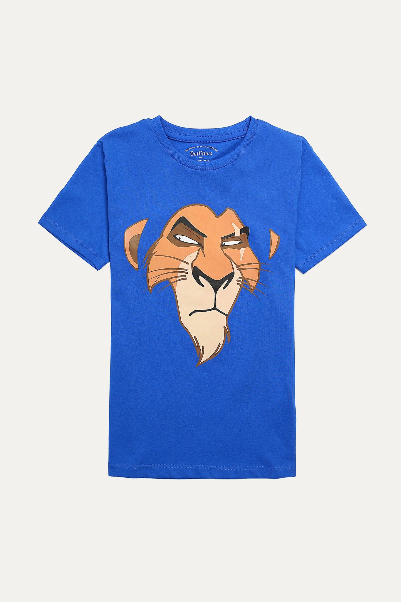 Half sleeve t-shirt with a crew neck, lion print front and plain back