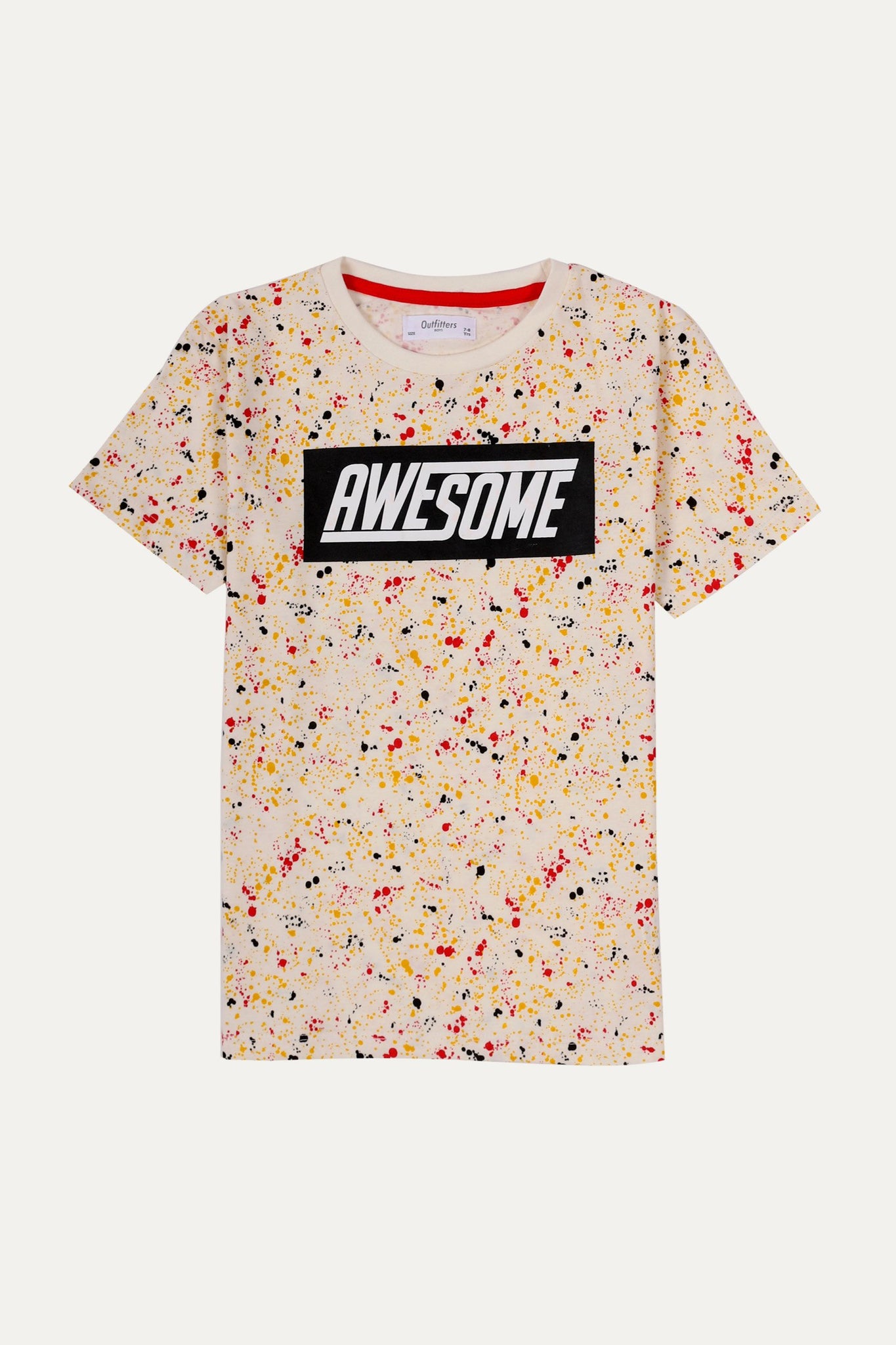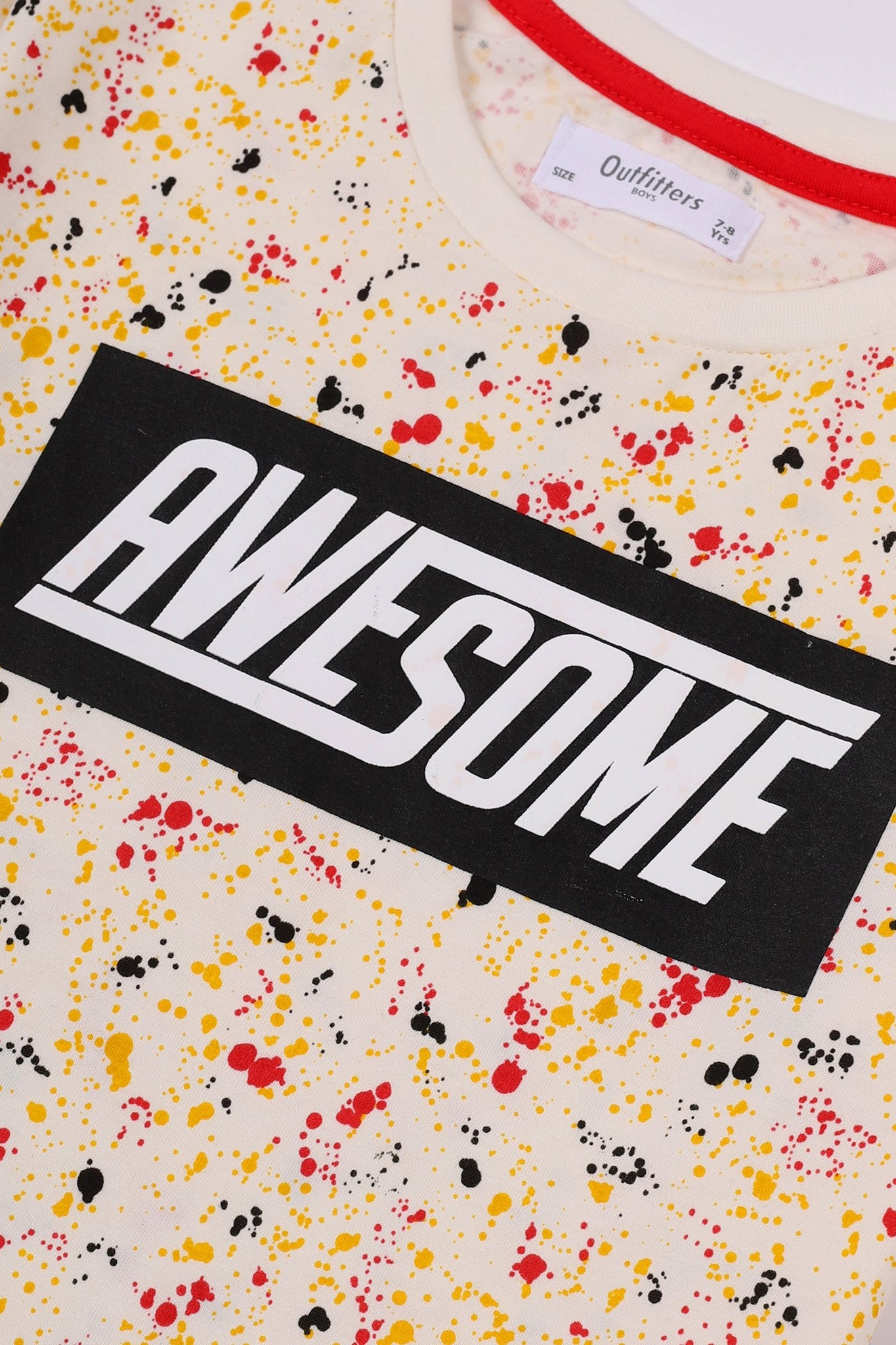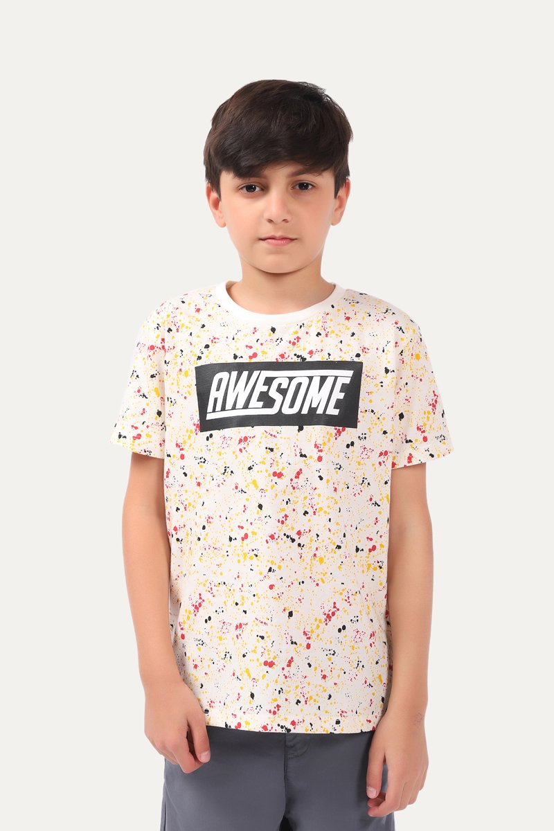 Half sleeve printed t-shirt with round neck, awesome' printed front and plain back