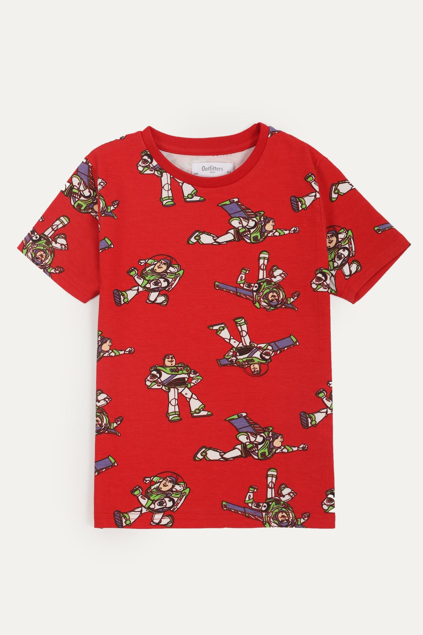 T-Shirt with round neck, half sleeves, printed front and plain back with shorts