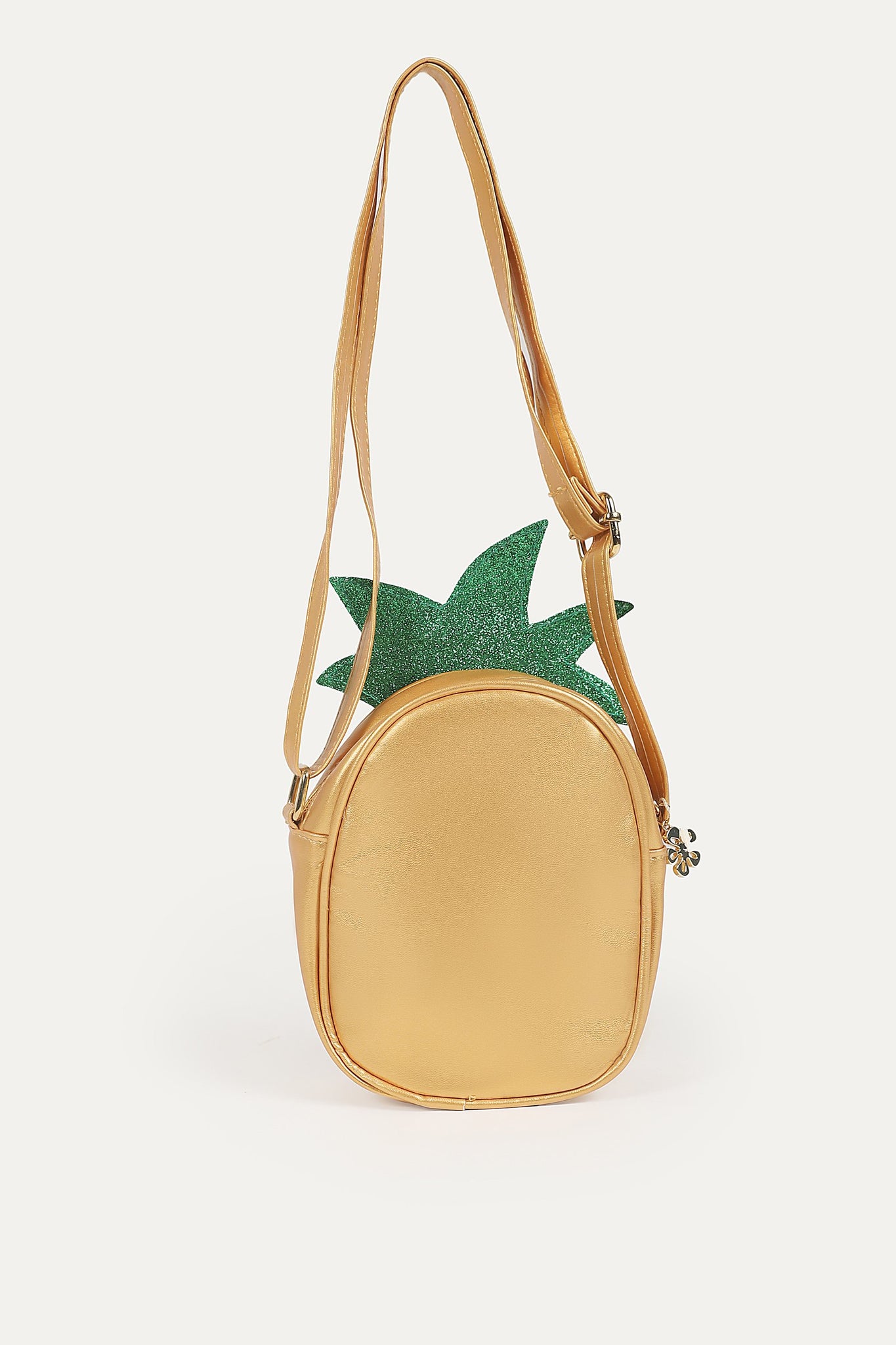 Bag with corss body strap, zipper detail, glitter designed front and plain back