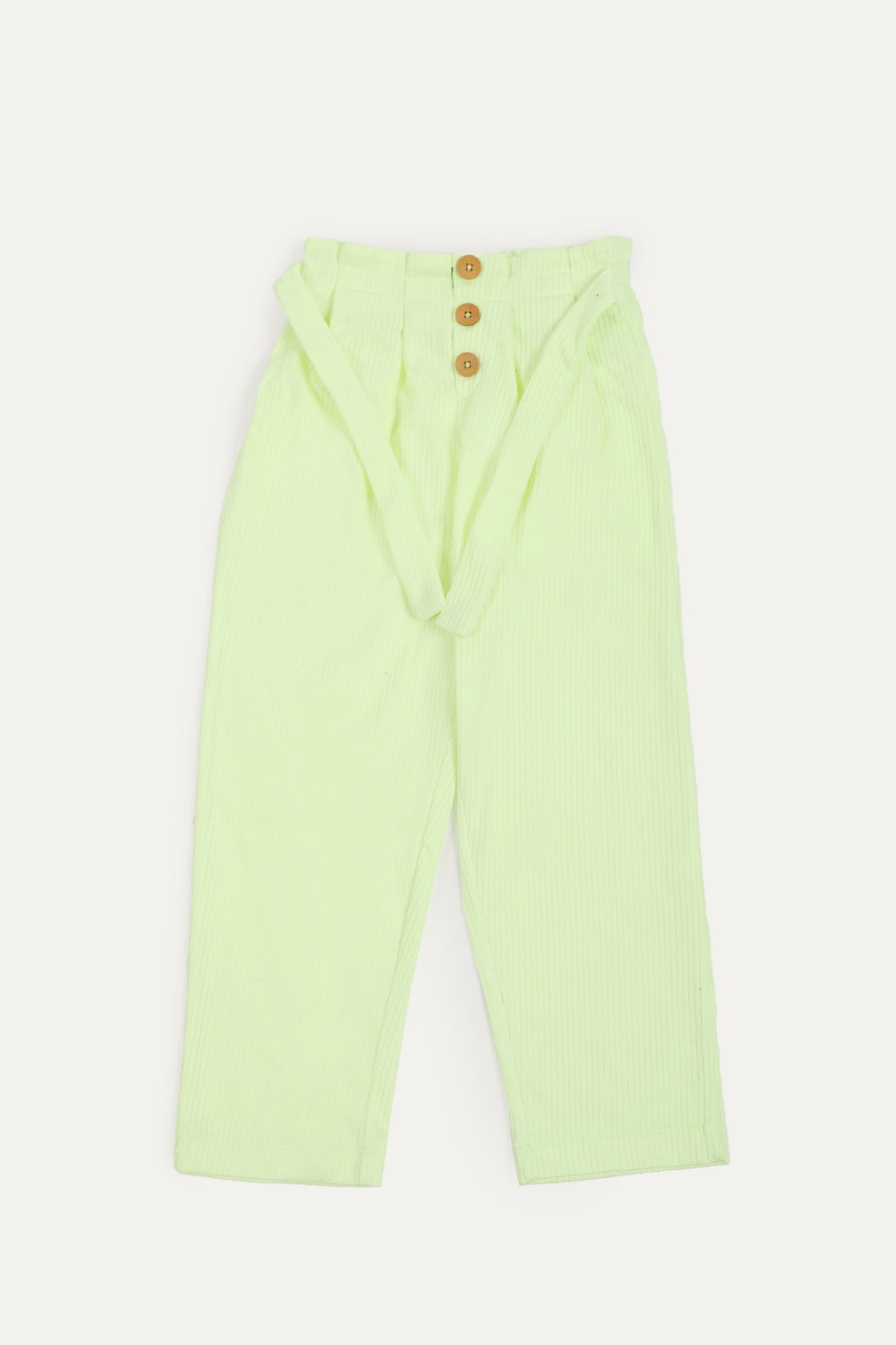 Buttoned culotte design trouser with knot belt, ruffled style front and back
