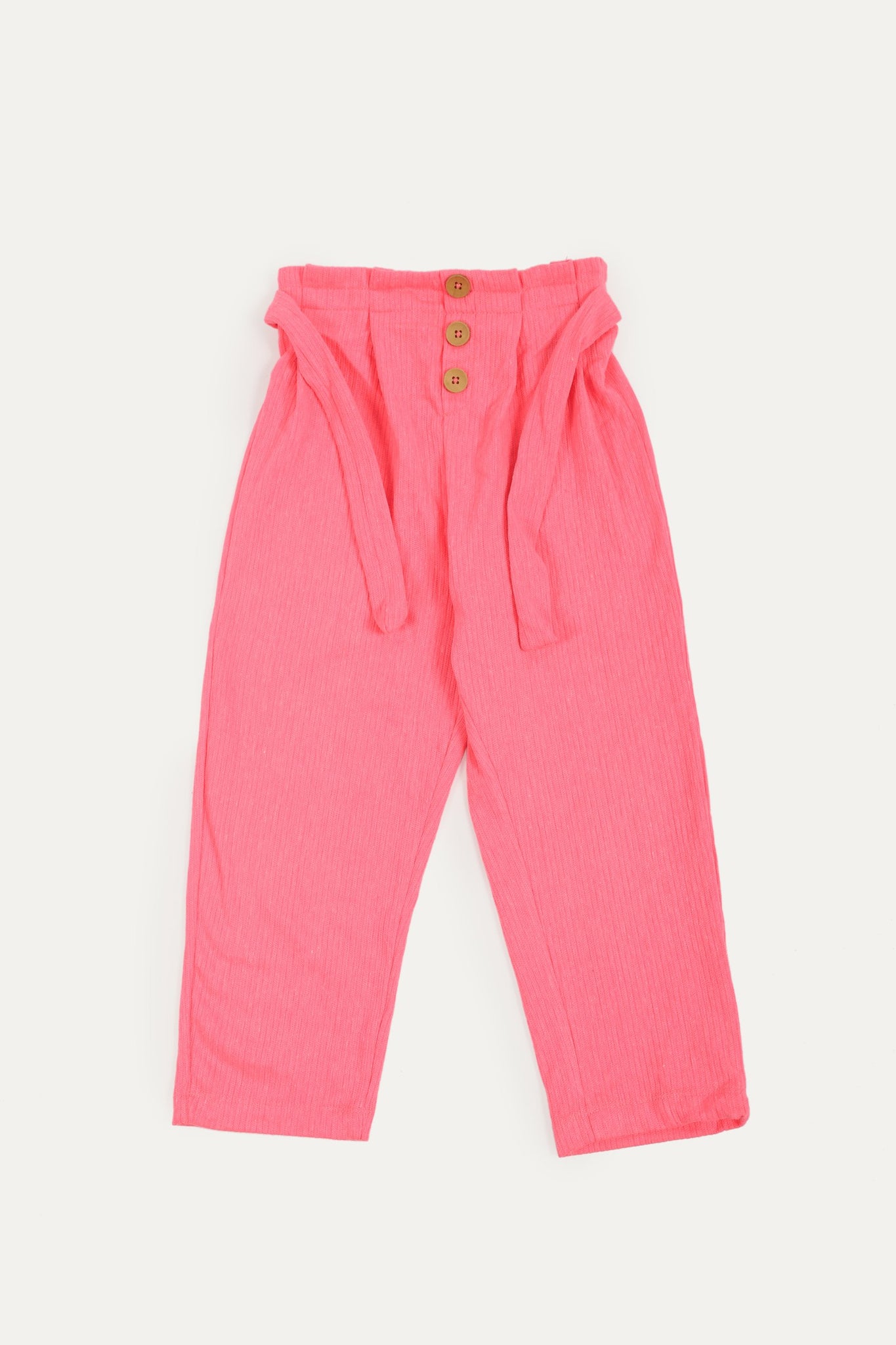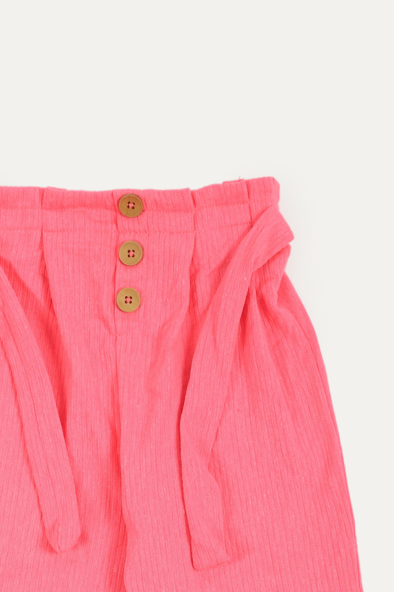 Buttoned culotte design trouser with knot belt, ruffled style front and back