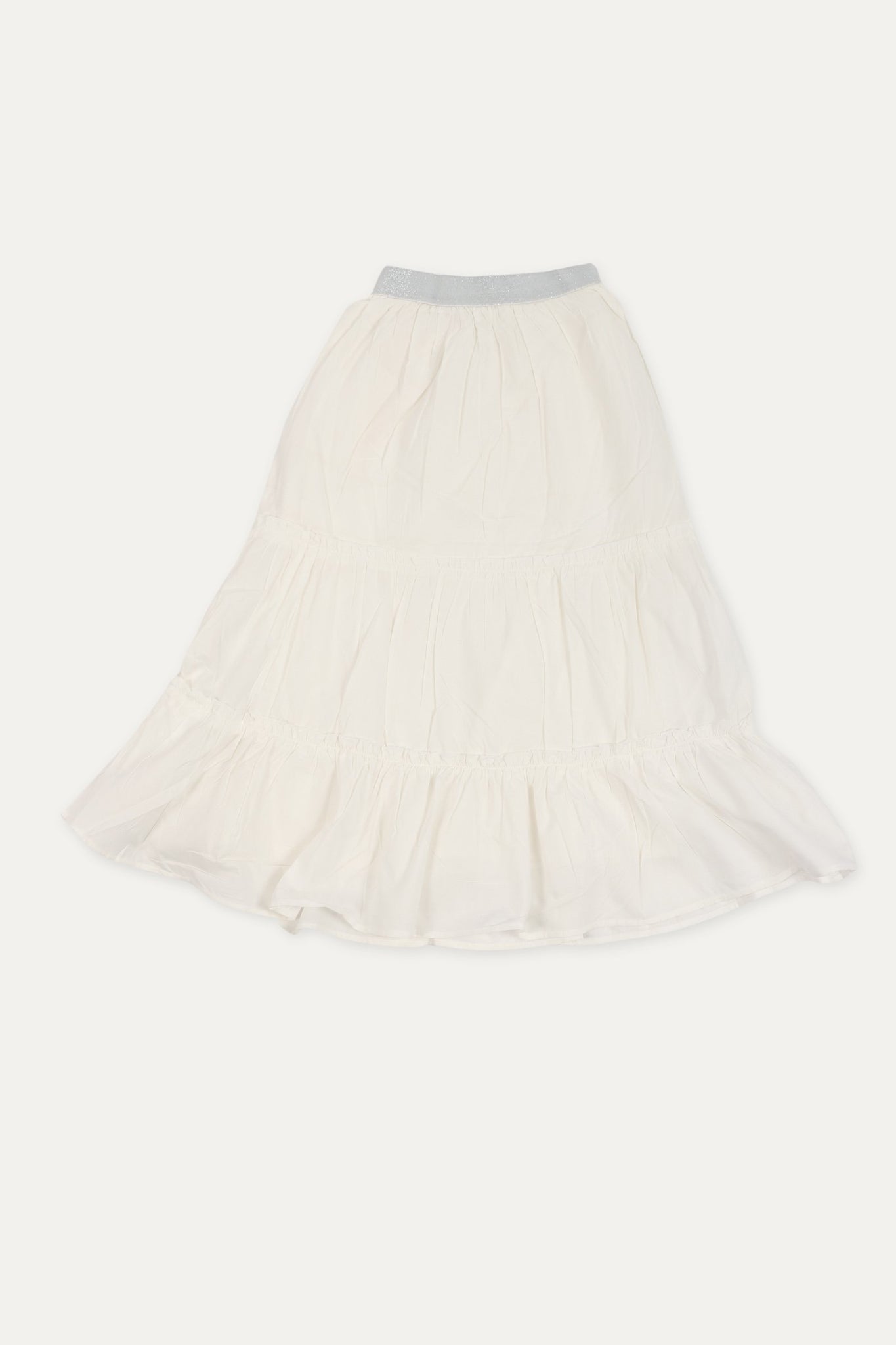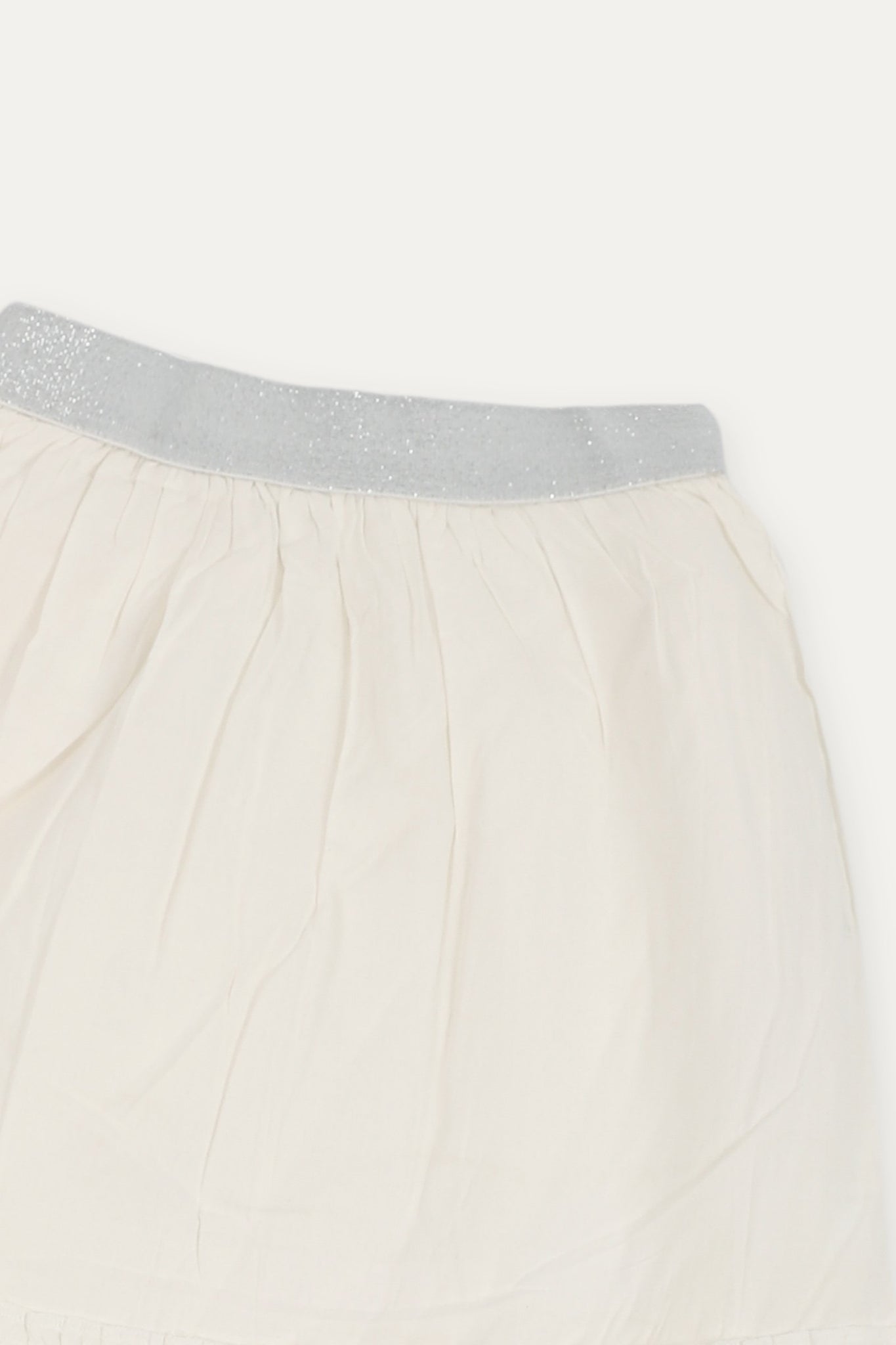 Skirt with ruffled style front and elastic glittery lace detail on waist