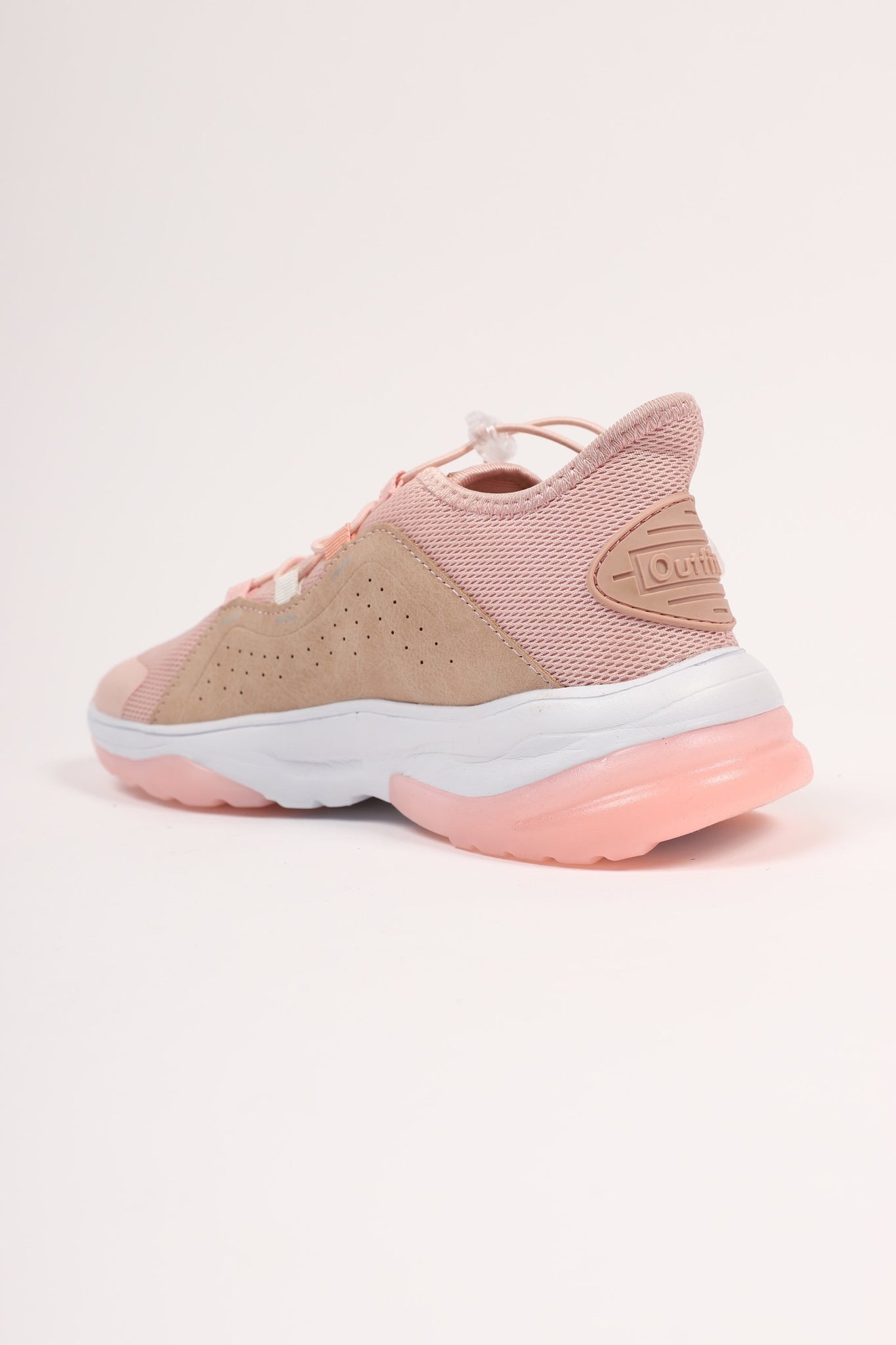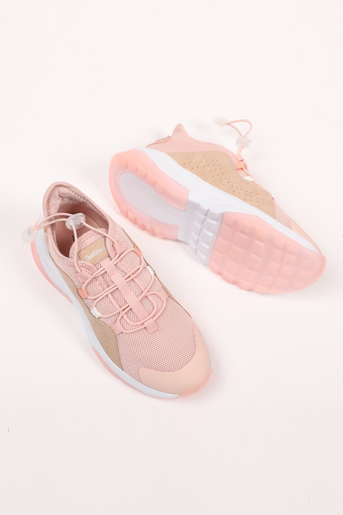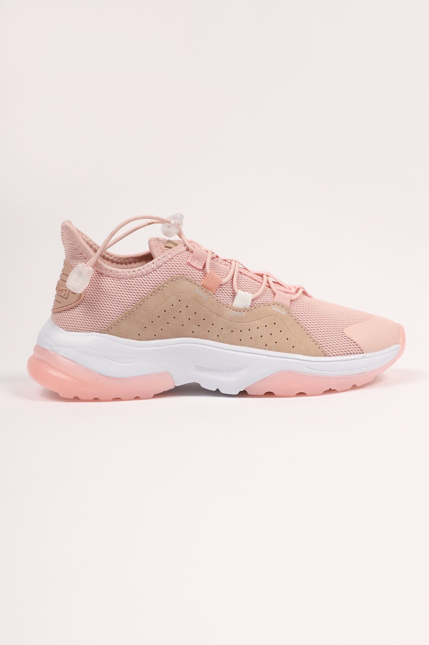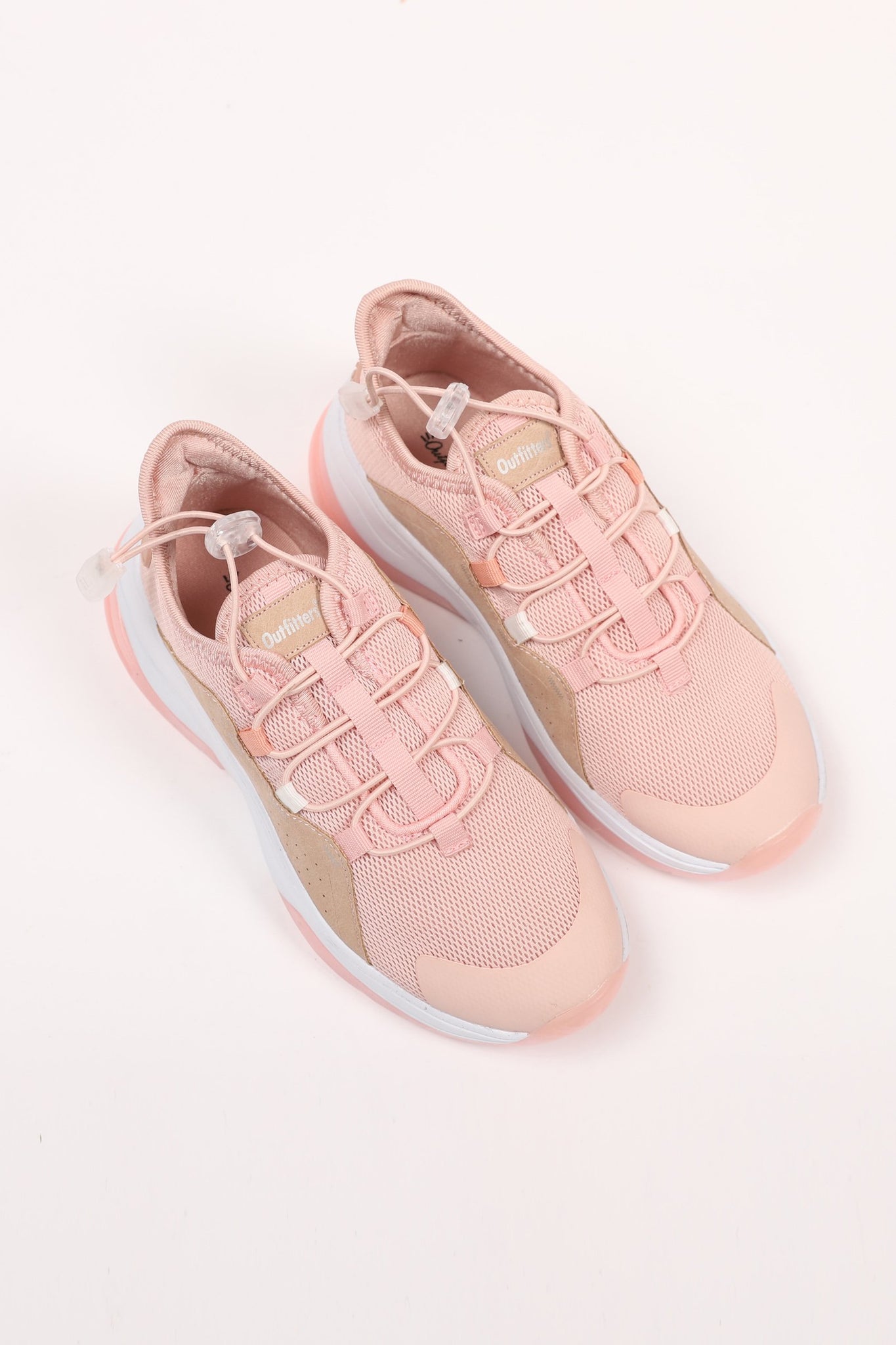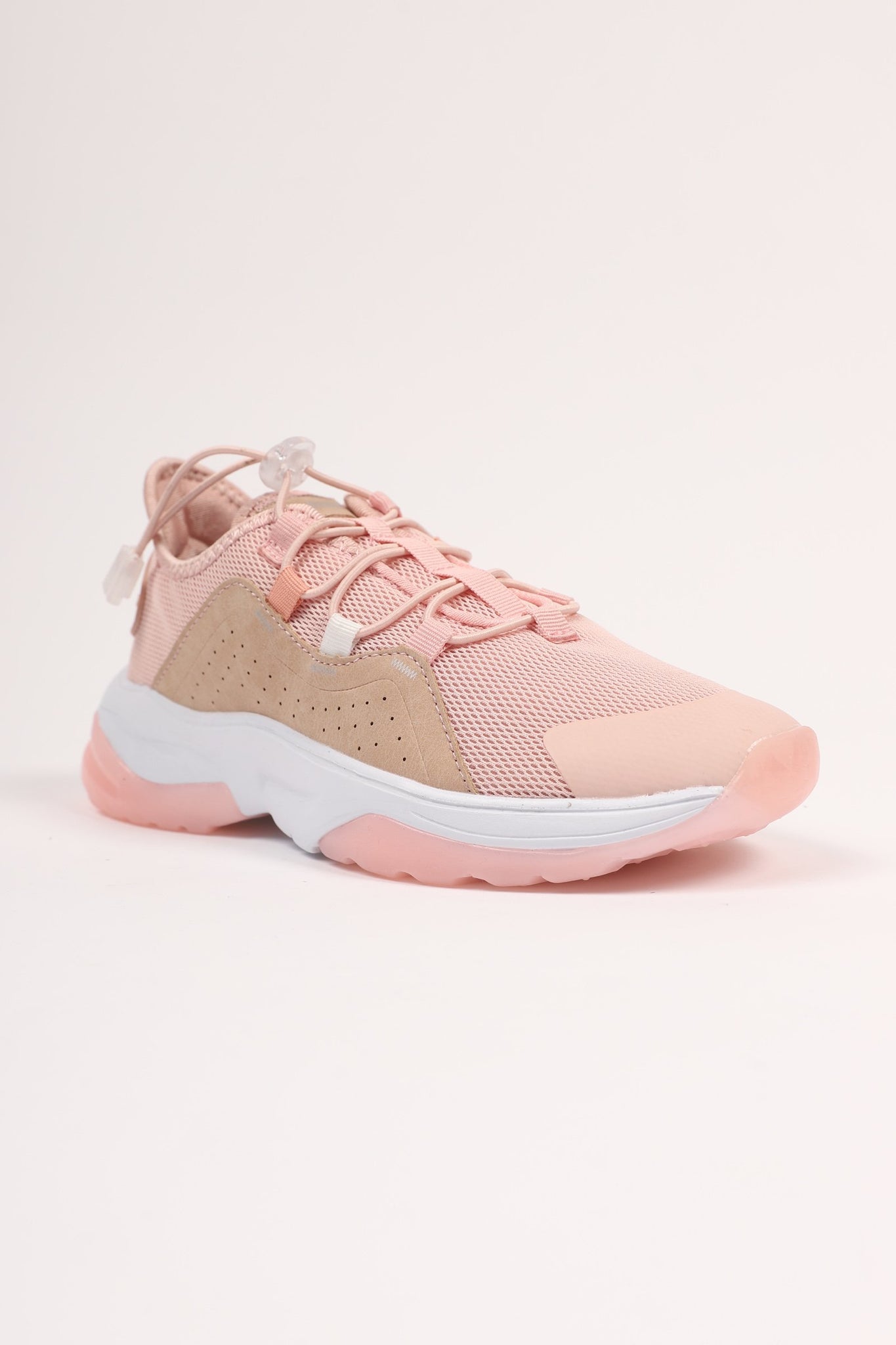 Double color chunky sole sneakers with mesh details and and stretch elastic lace fastening