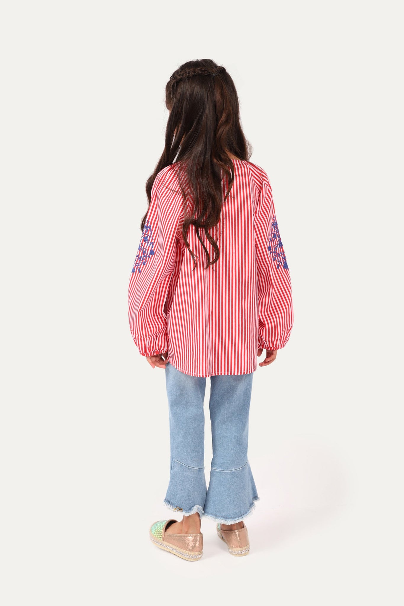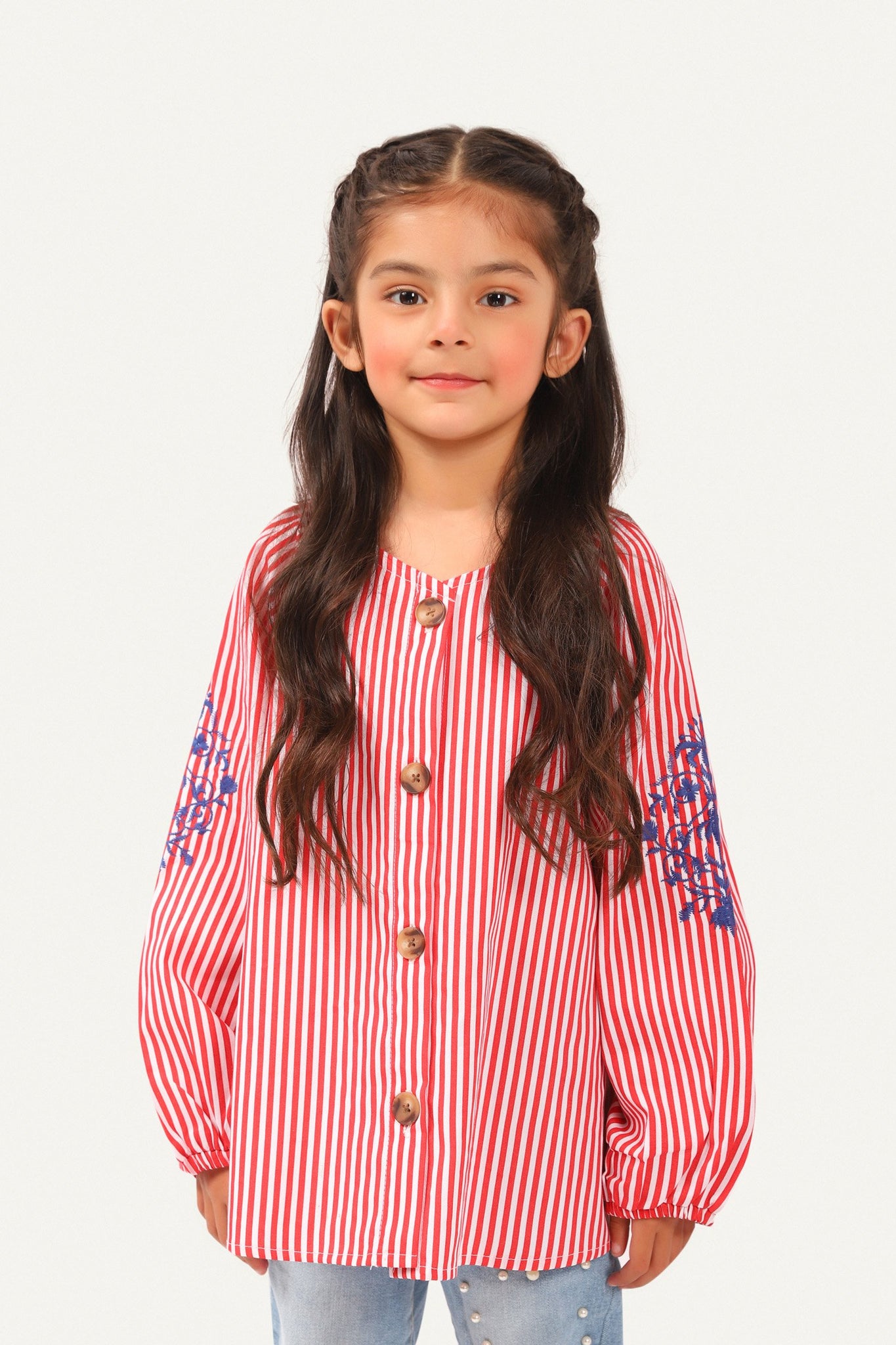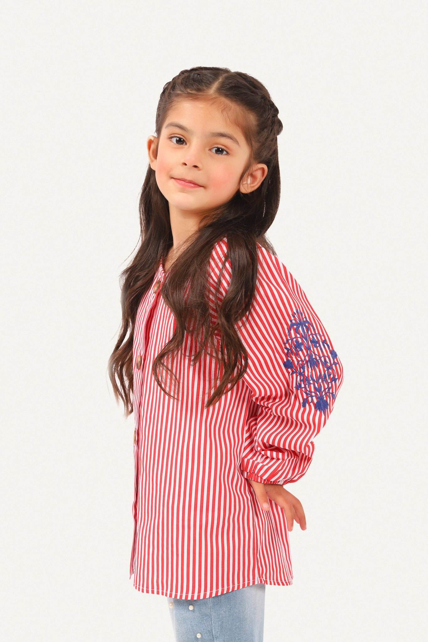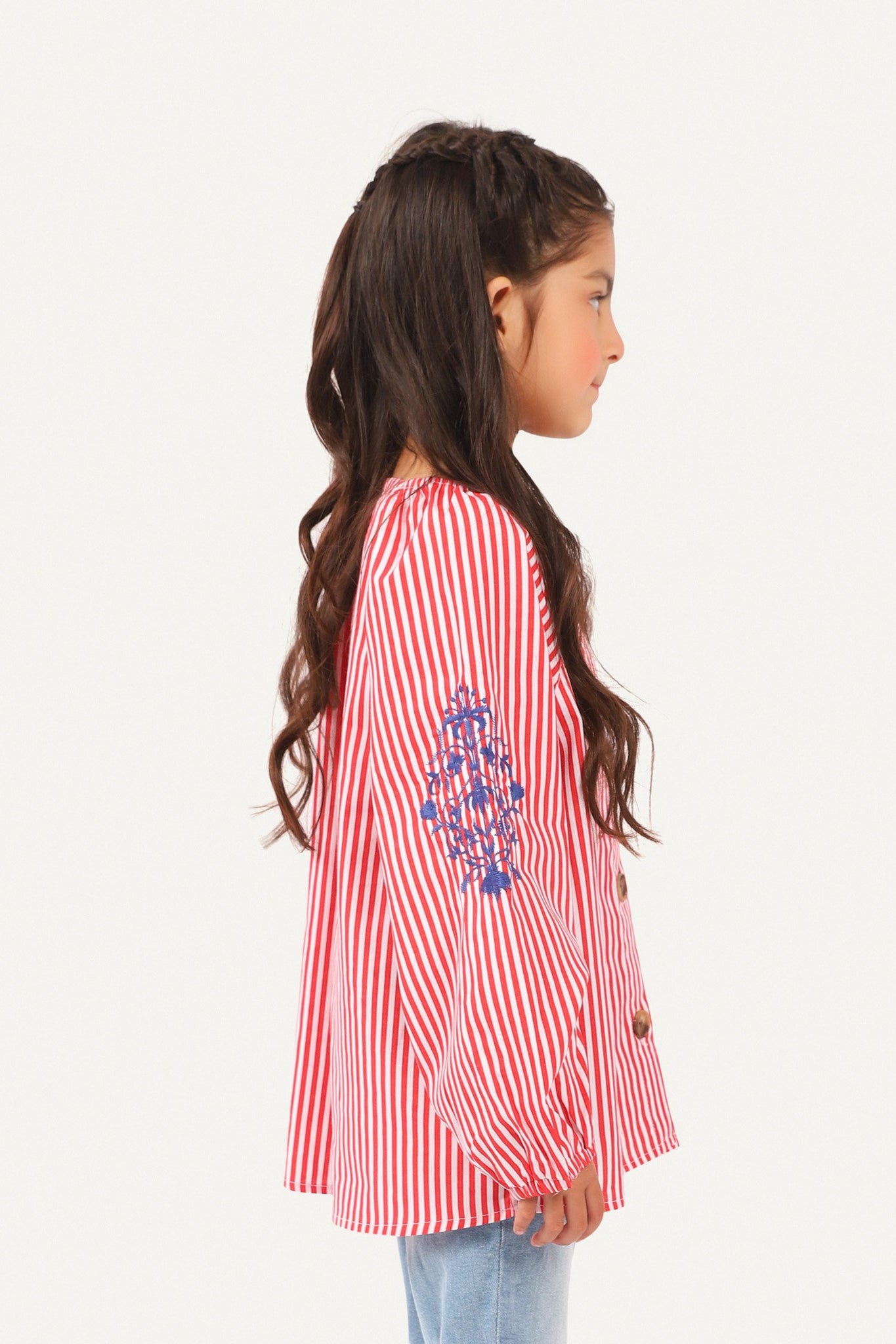 Shirt with full sleeves with embroidery on it, round neck, buttoned down front and printed back