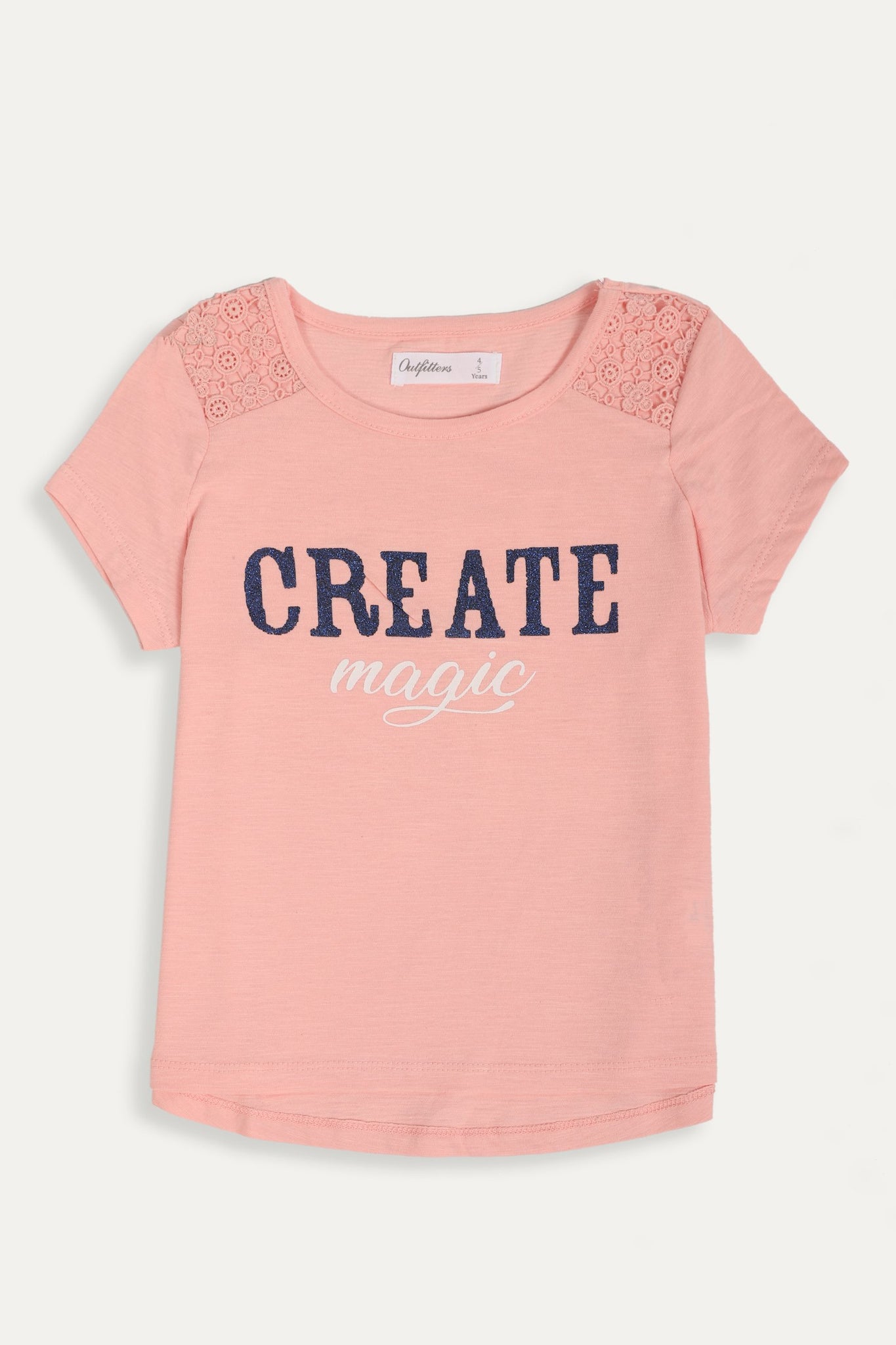 T-Shirt with lace detail shoulder, half sleeves, round neck, graphic front and plain back