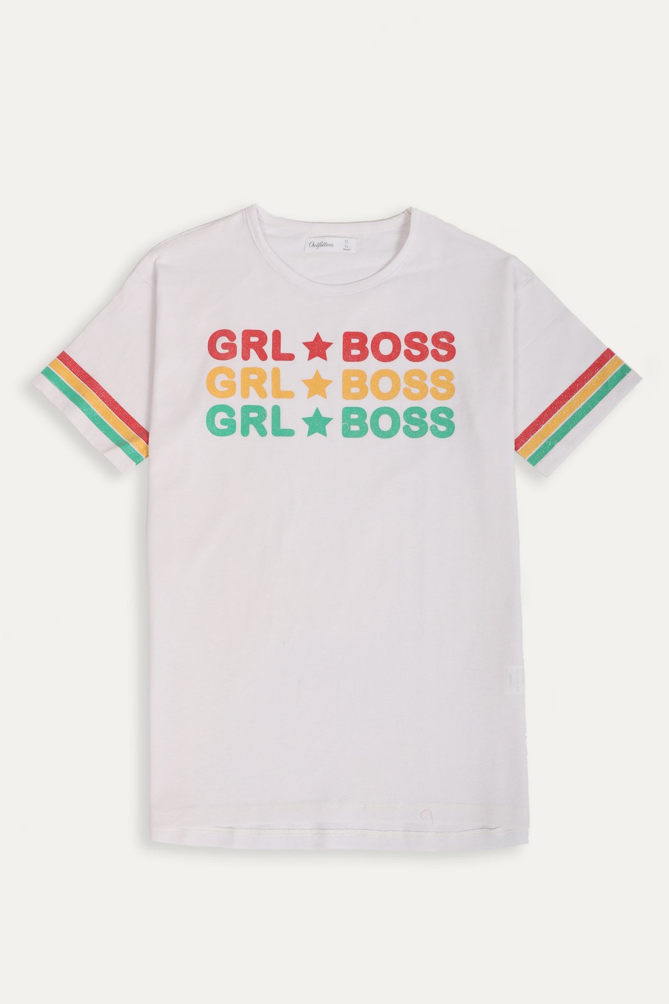 T-Shirt with half sleeves, round neck, printed front and plain back