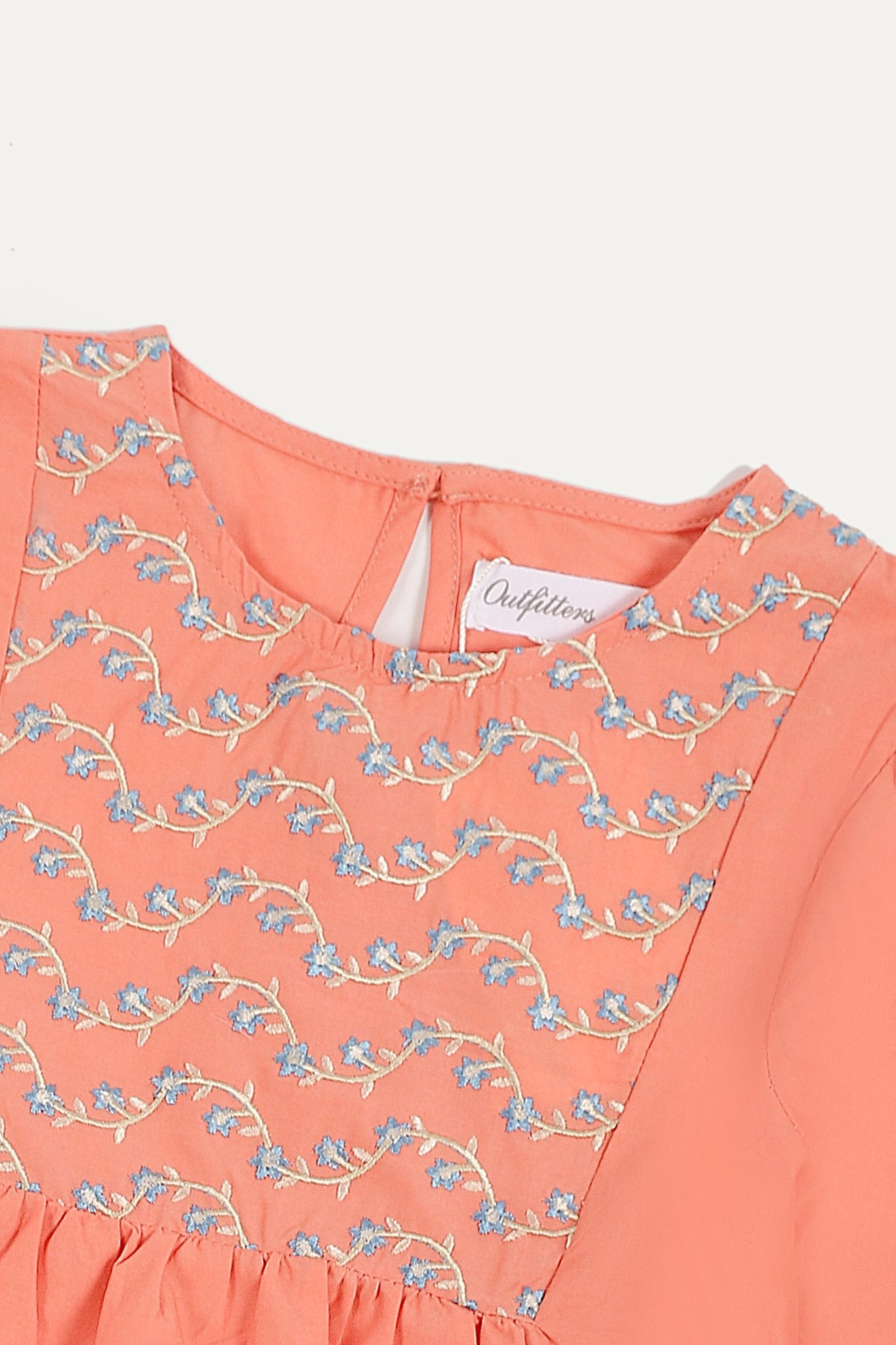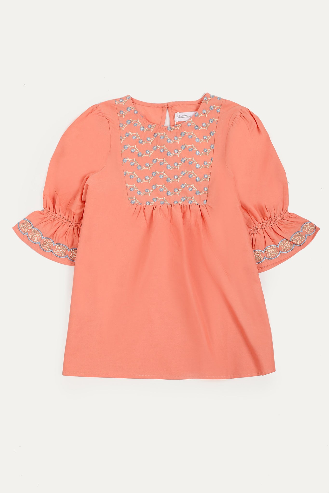 Embroidered shirt with ruffled half sleeves, lace detailed front and back