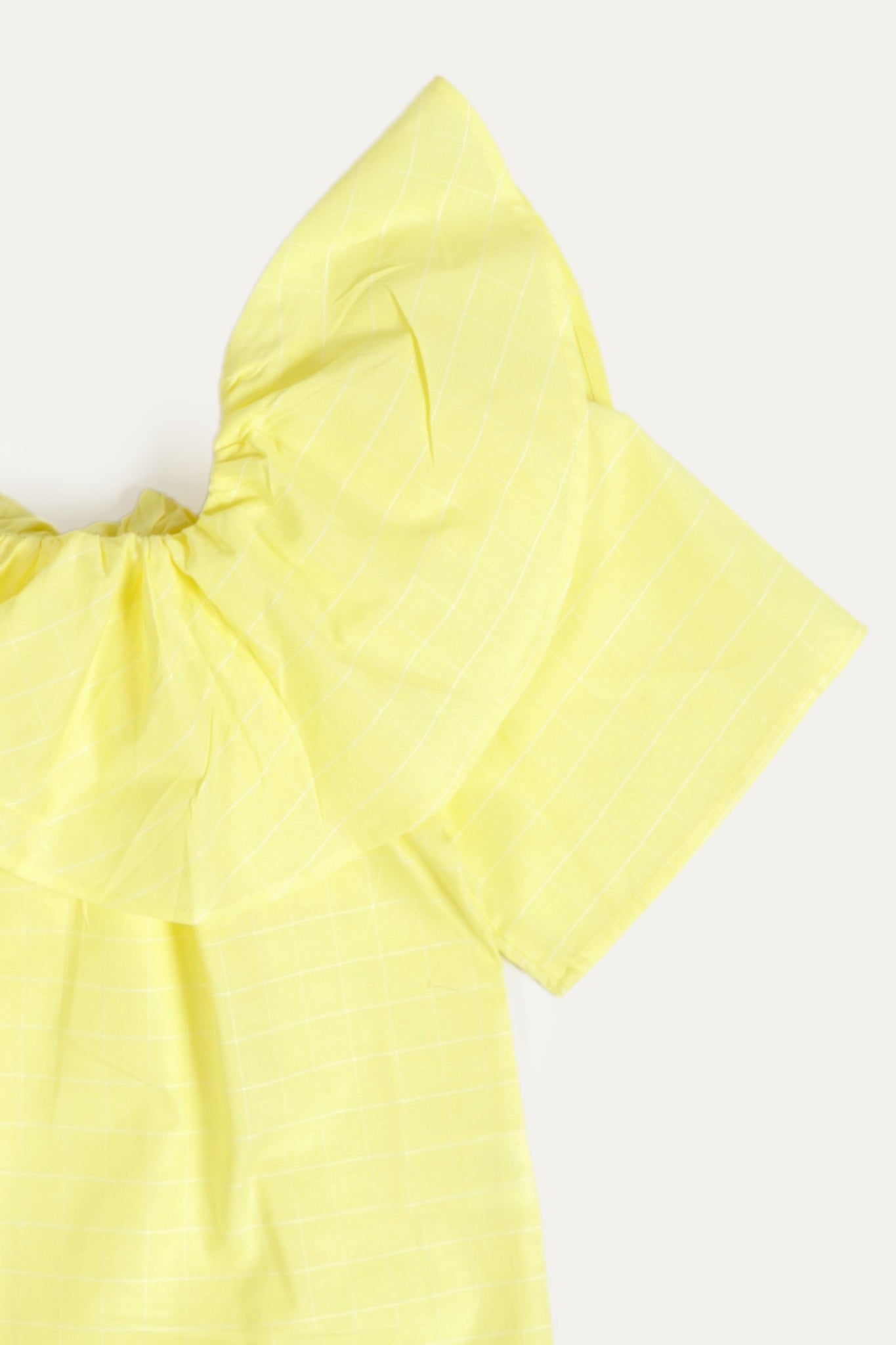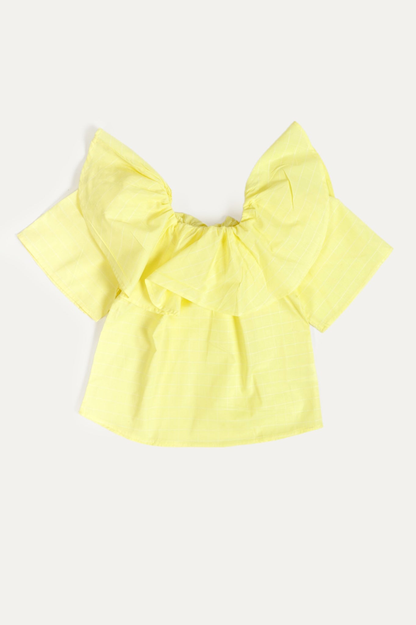 Shirt with ruffled design front, round neck, featured half sleeves, lining printed front and back