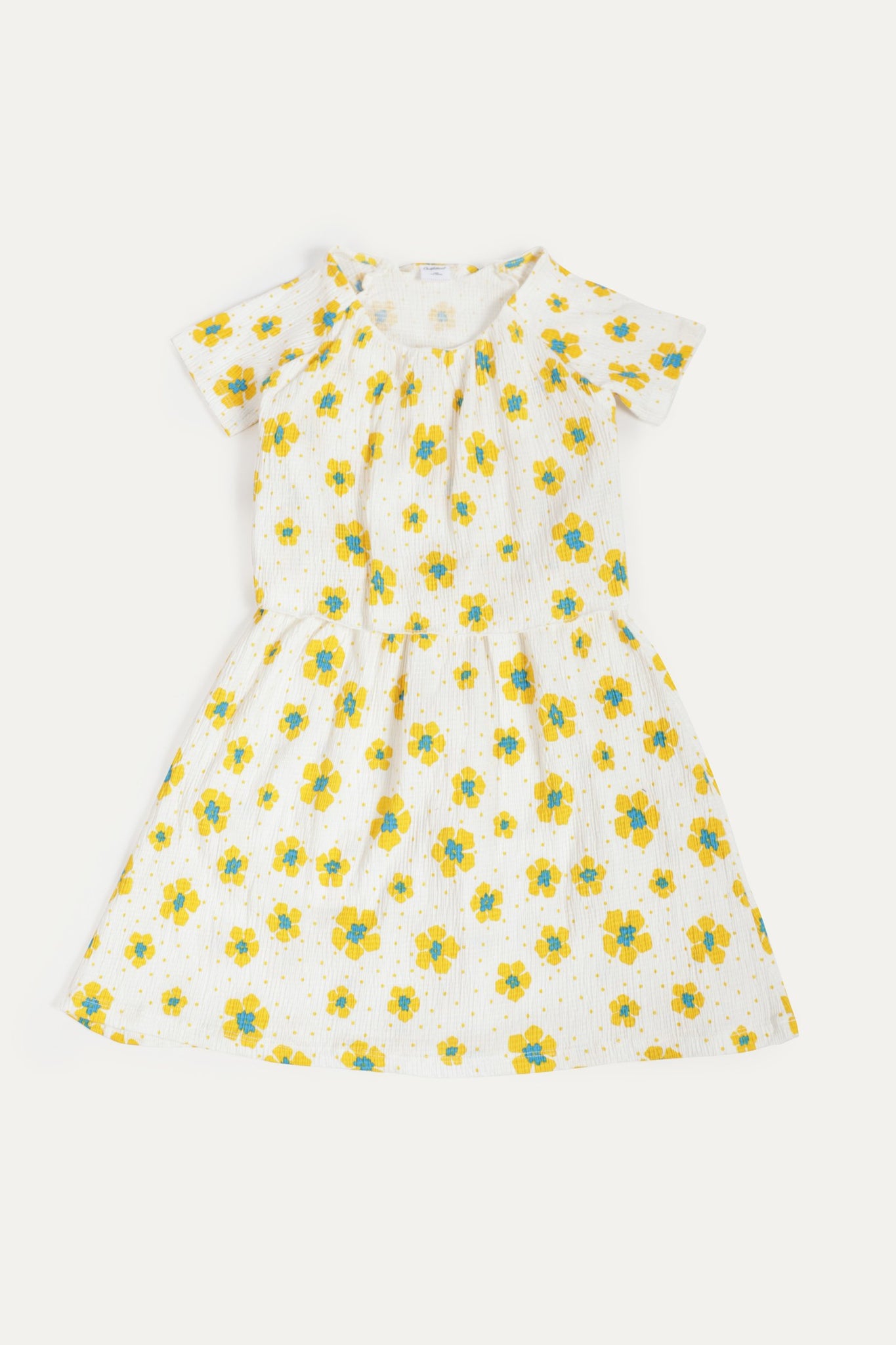 Flora print frock with half sleeves, co-rd style front and backComposition & Care: