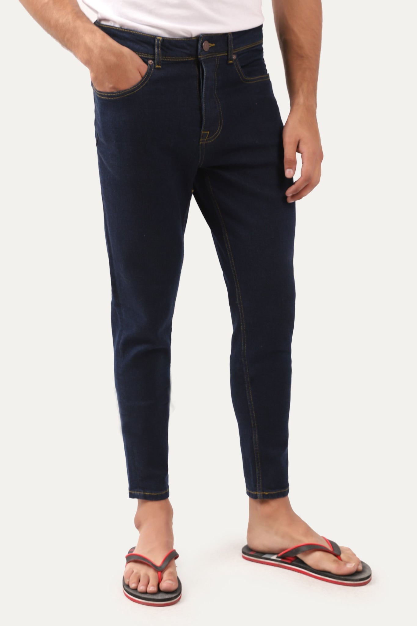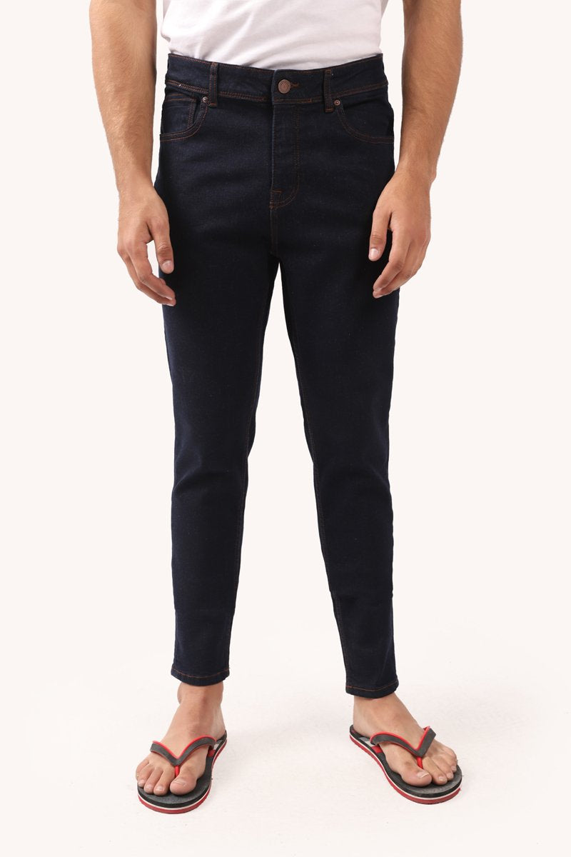 Basic skinny jeans with contrast seams, five pockets, zip fly and one top metallic button fastening
