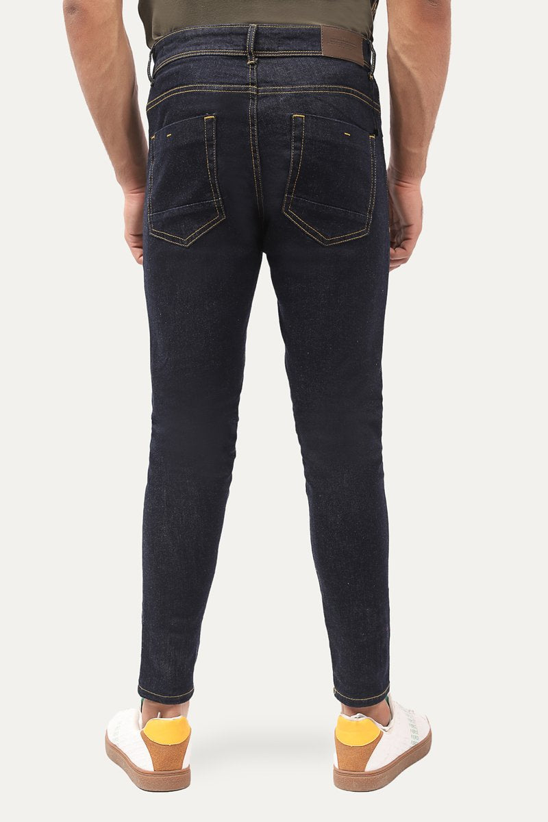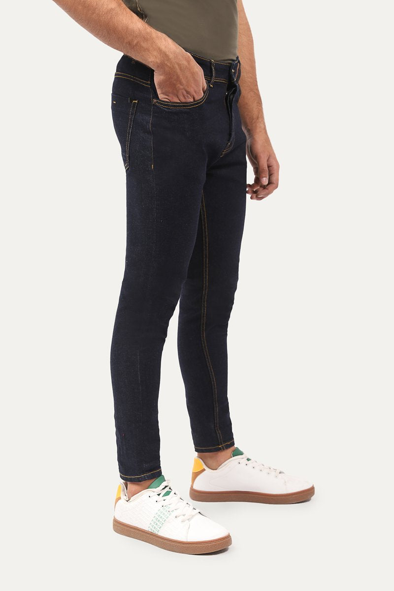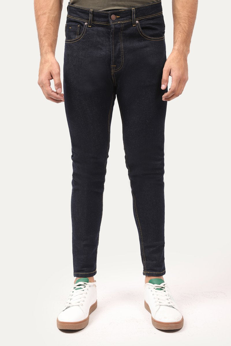 Basic skinny jeans with contrast seams, five pockets, zip fly and one top metallic button fastening