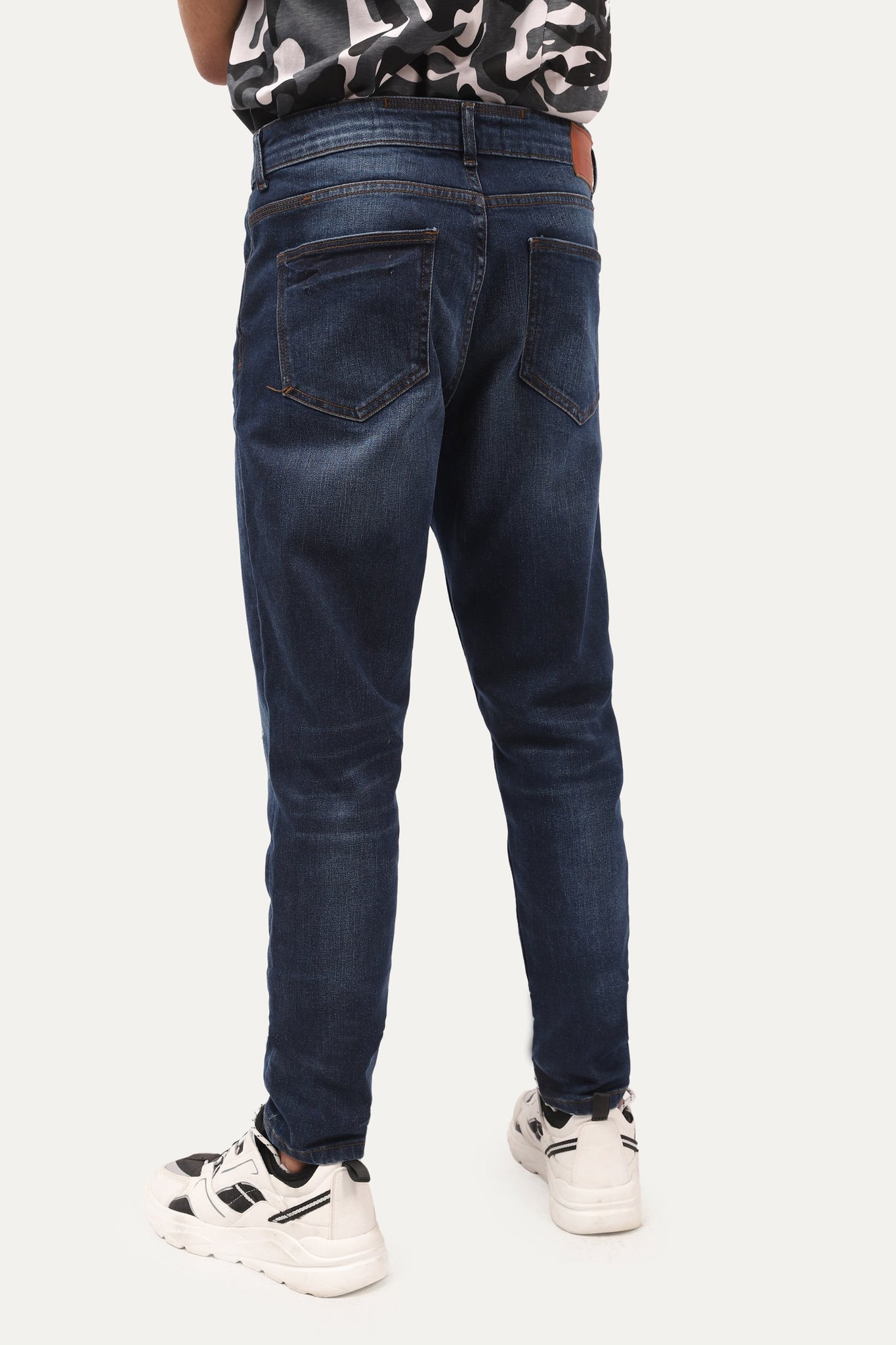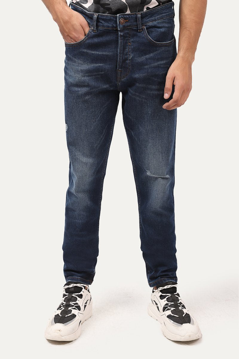 Ripped skinny jeans with five pockets. Fastening with zip fly and top button in the front