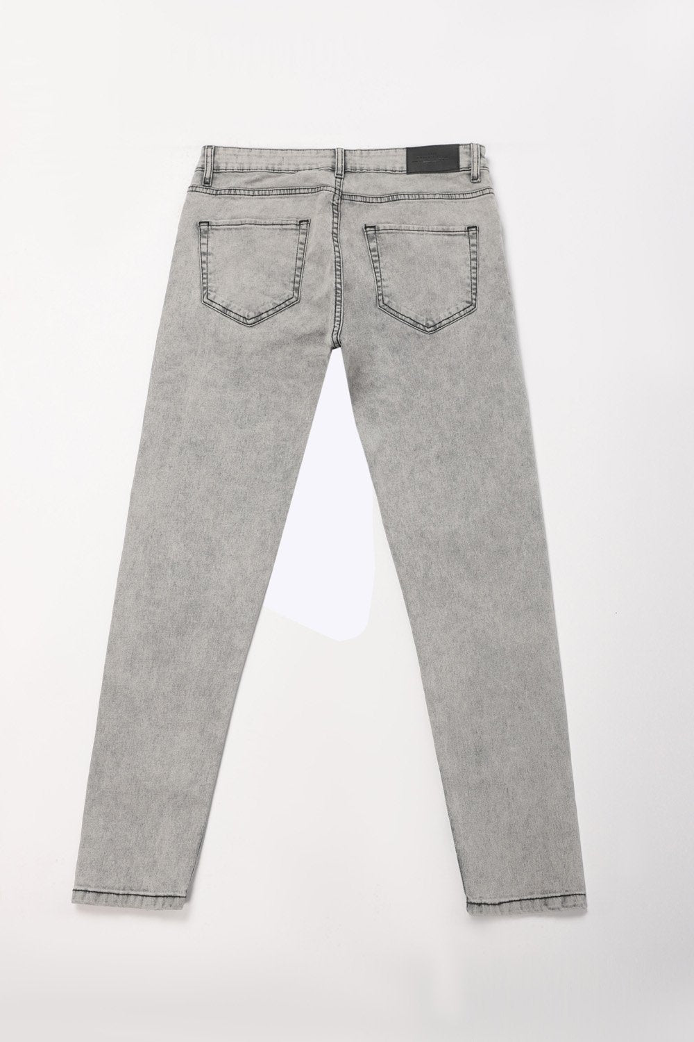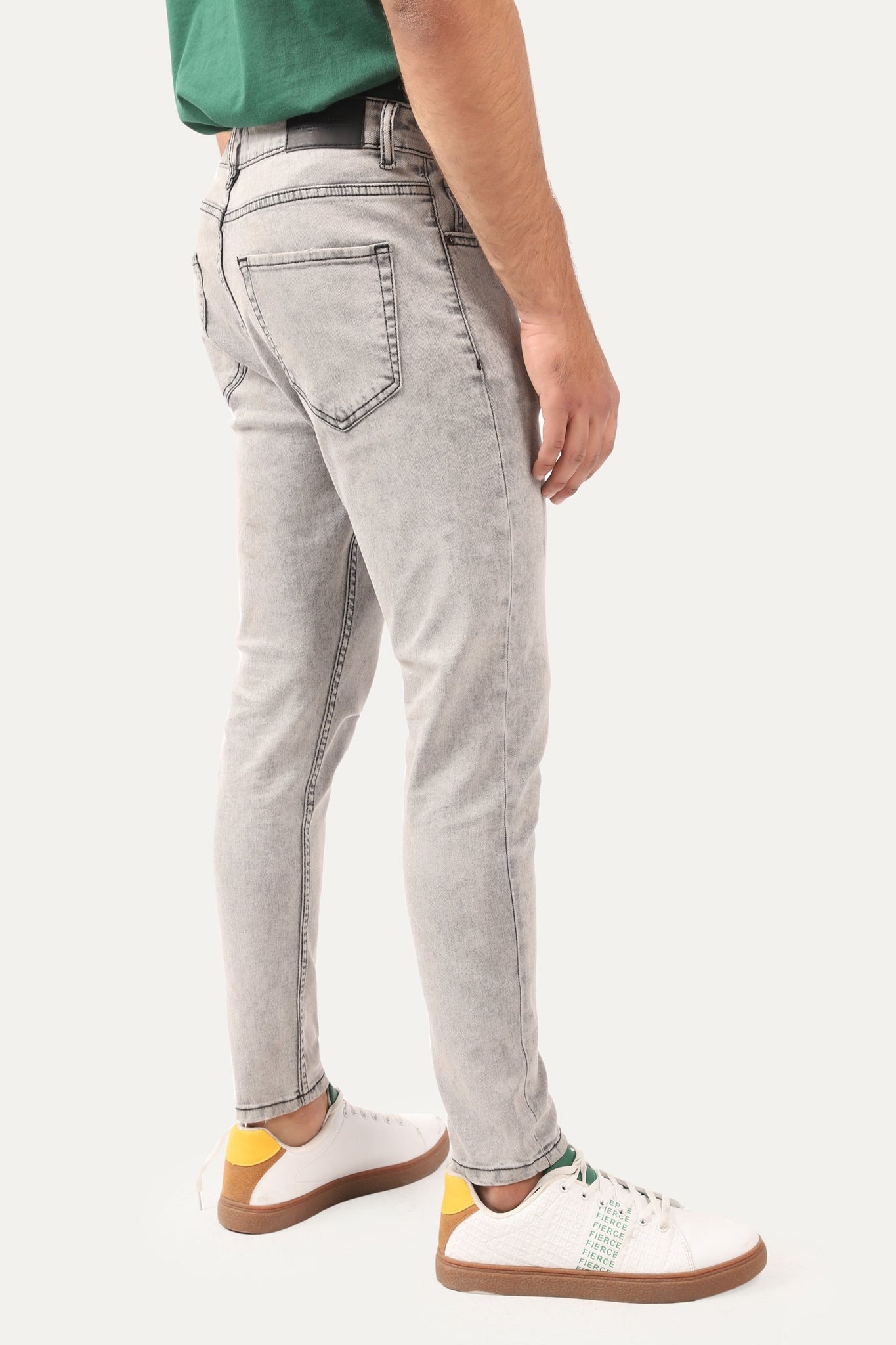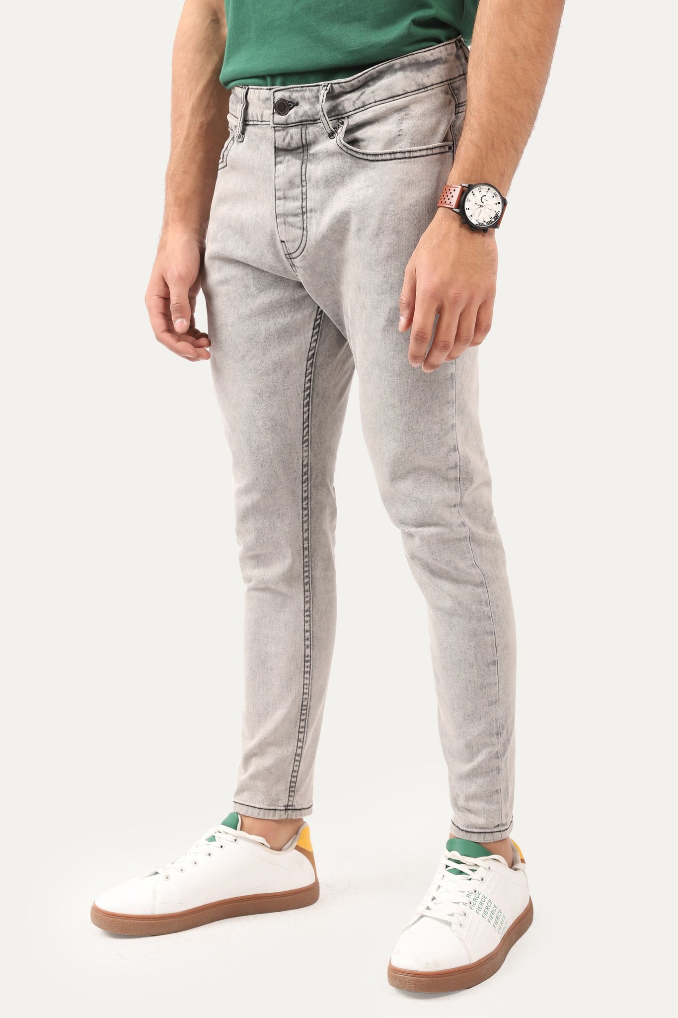 Carrot Fit jeans with slightly ripped design, contrast seams, five pockets, zip fly and one top metallic button fastening