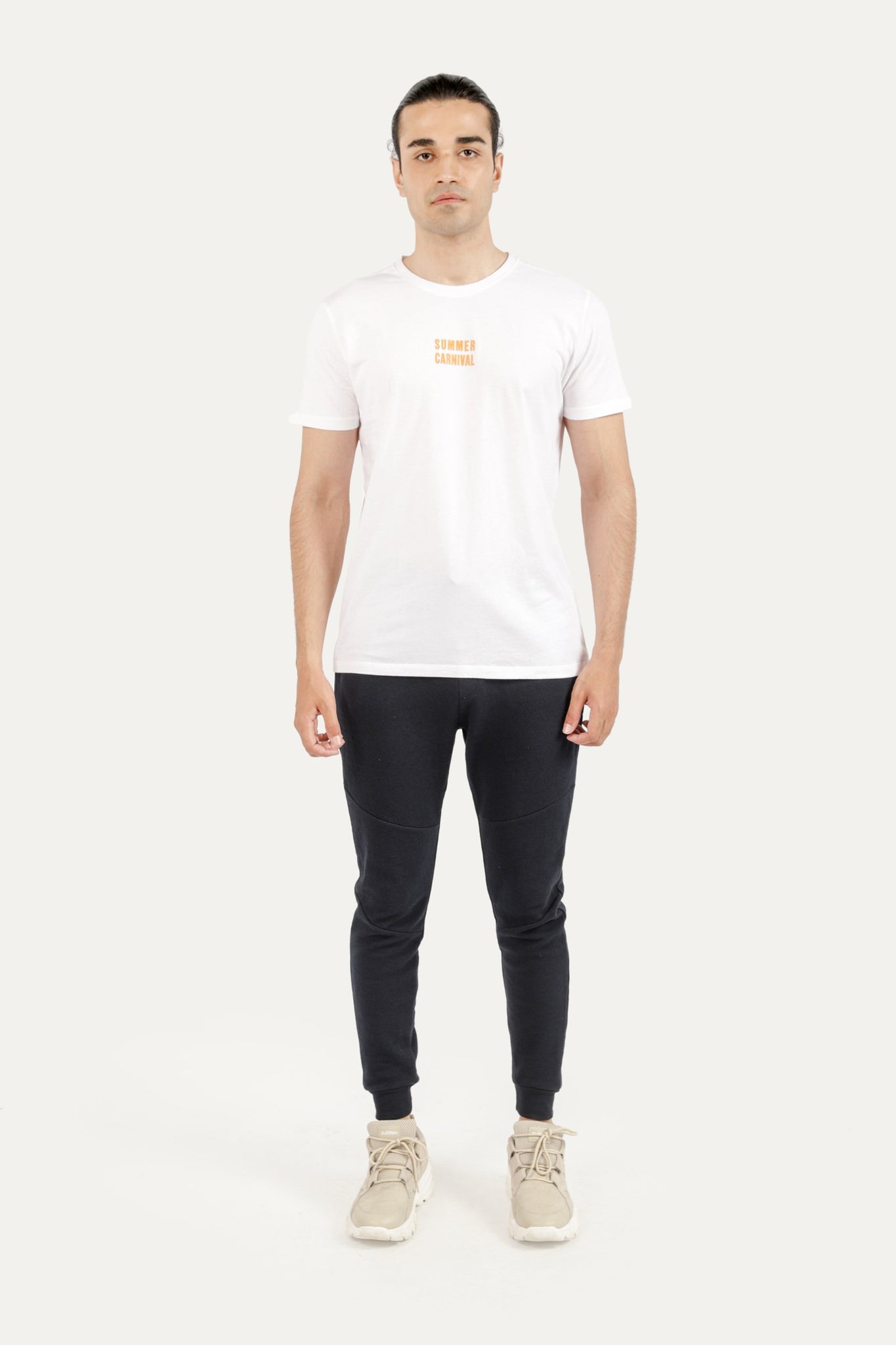 Jogging trousers with drawstring, ribbed hem, designed front and back