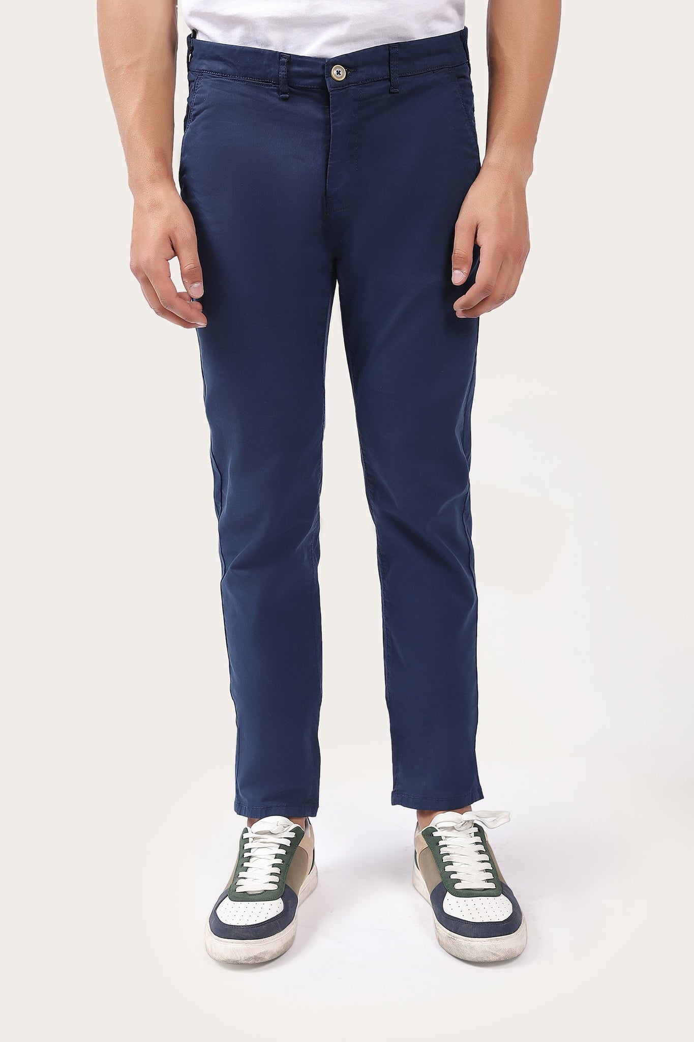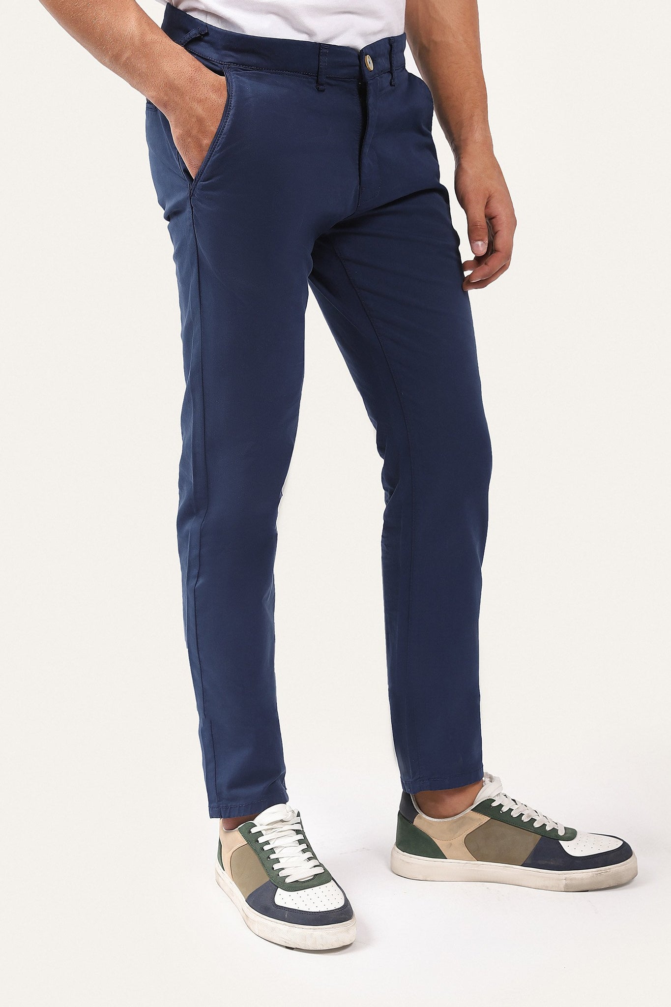 Basic chinos with belt loops, pockets, zip fly and one button fastening
