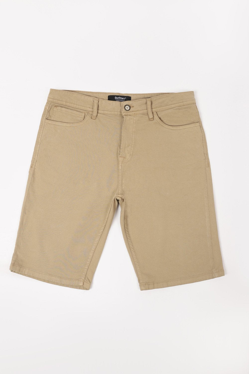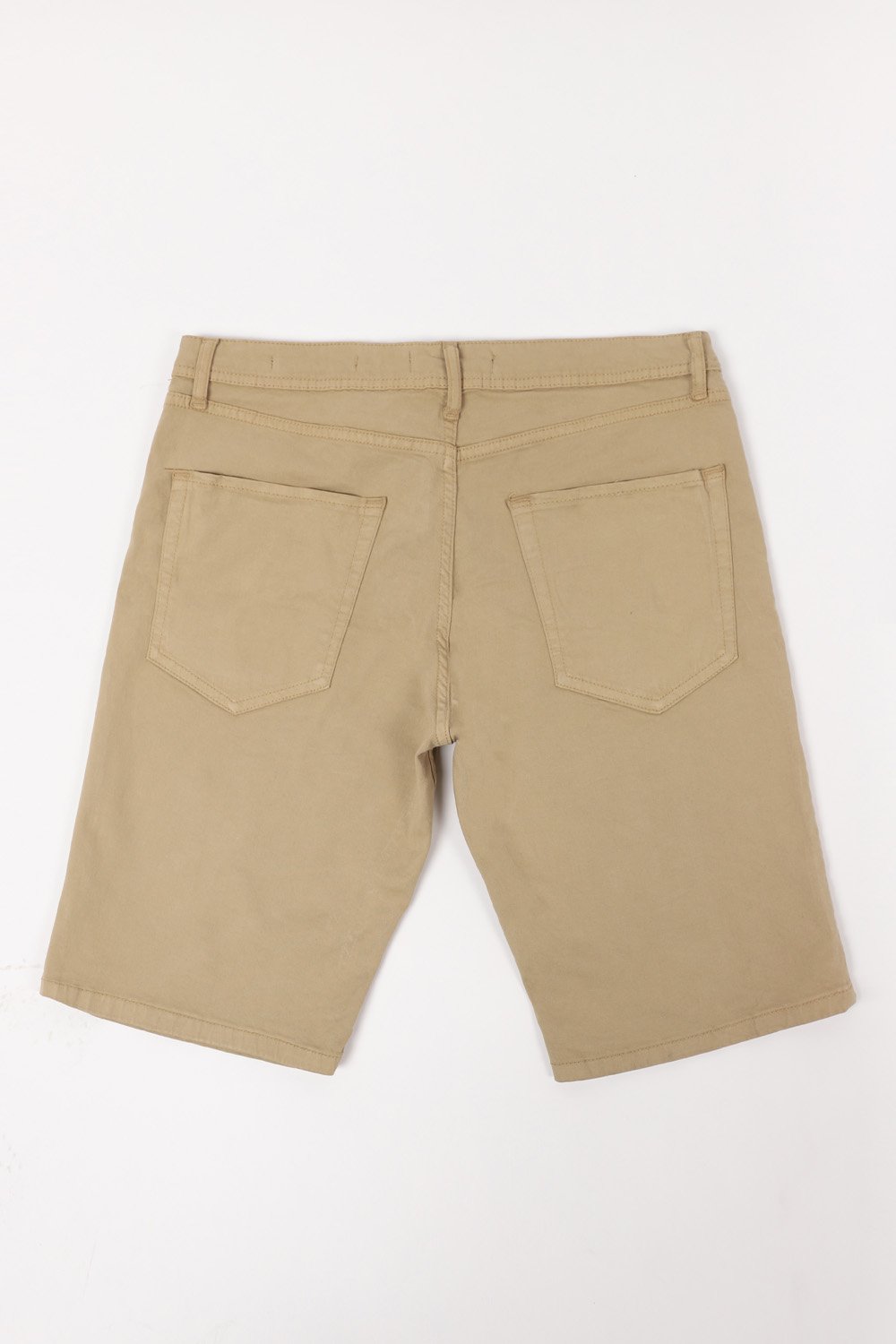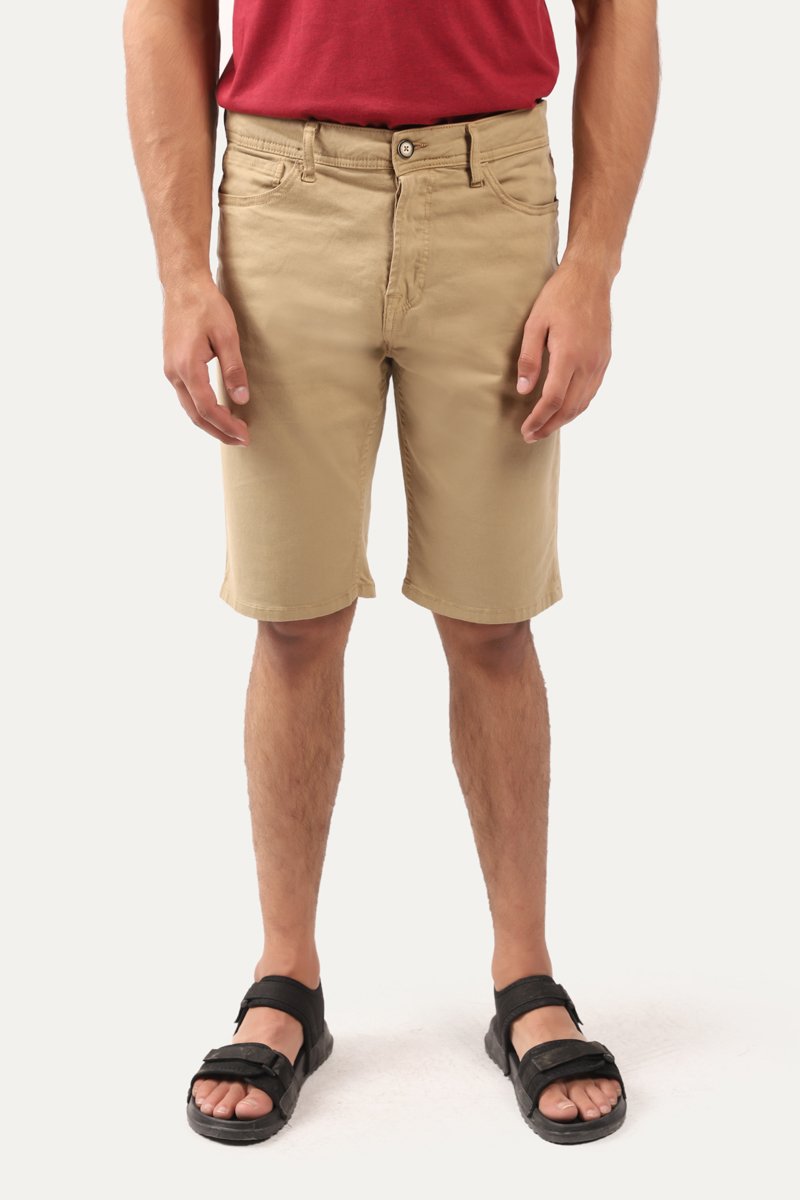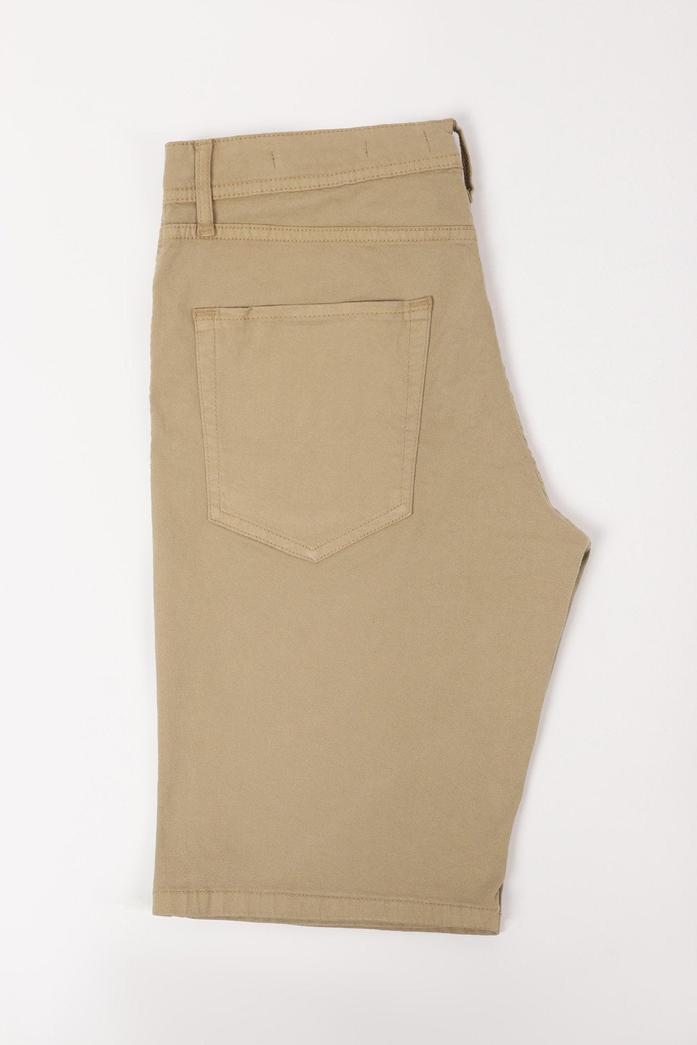 Five pocket shorts with belt loops. Zip fly and top contrast button fastening