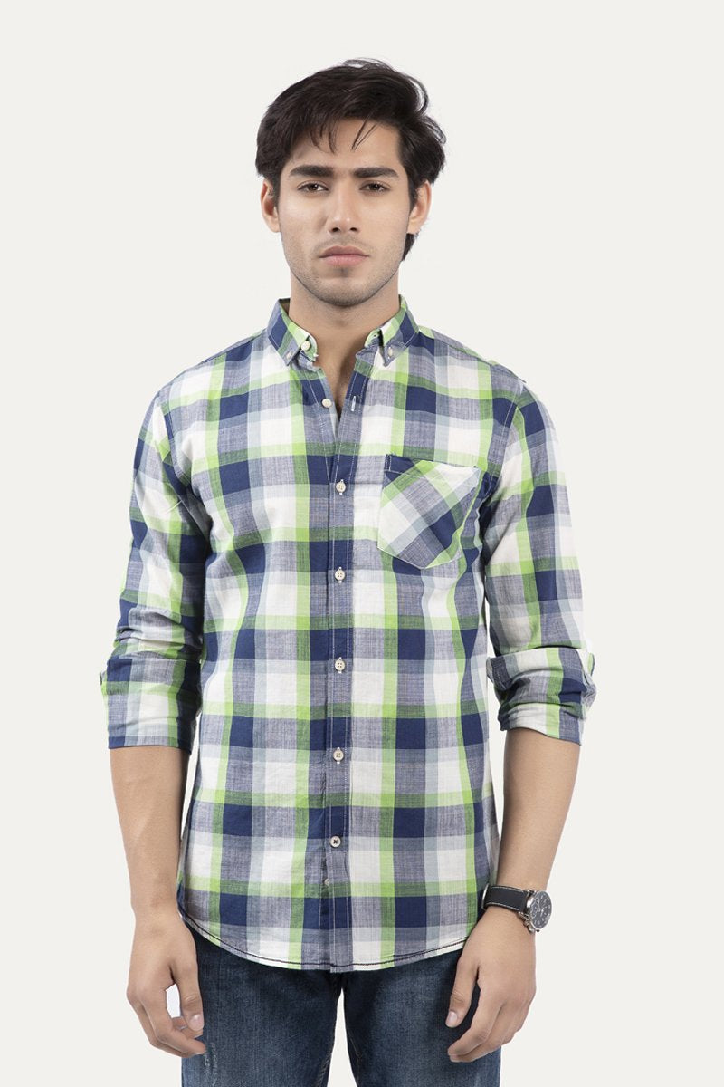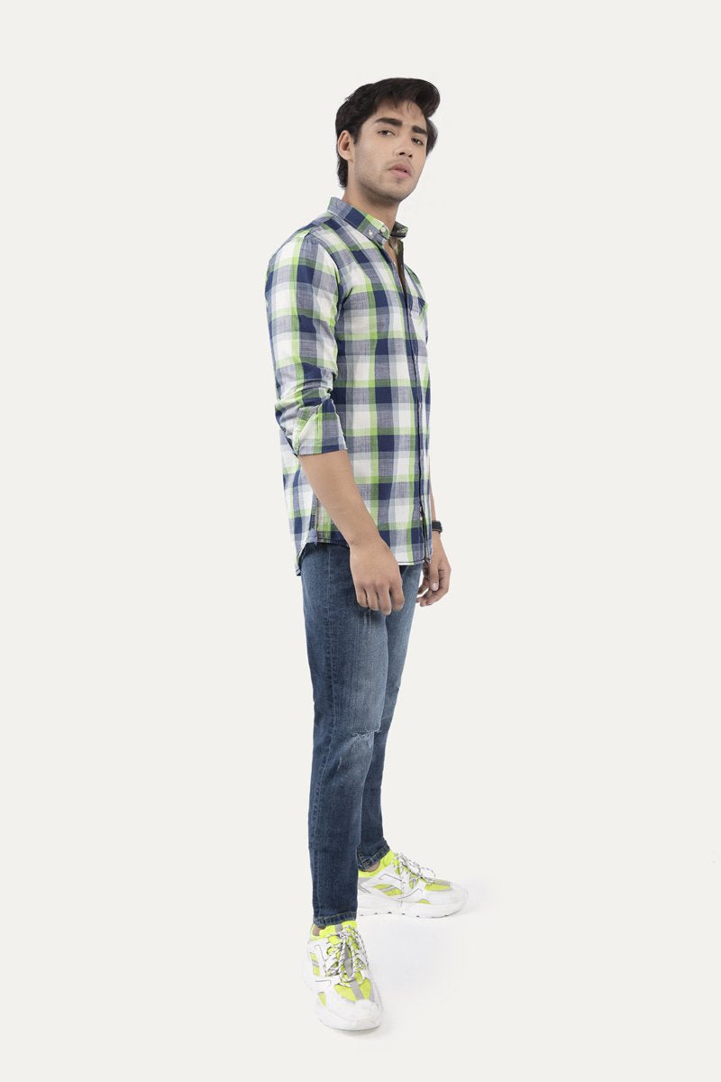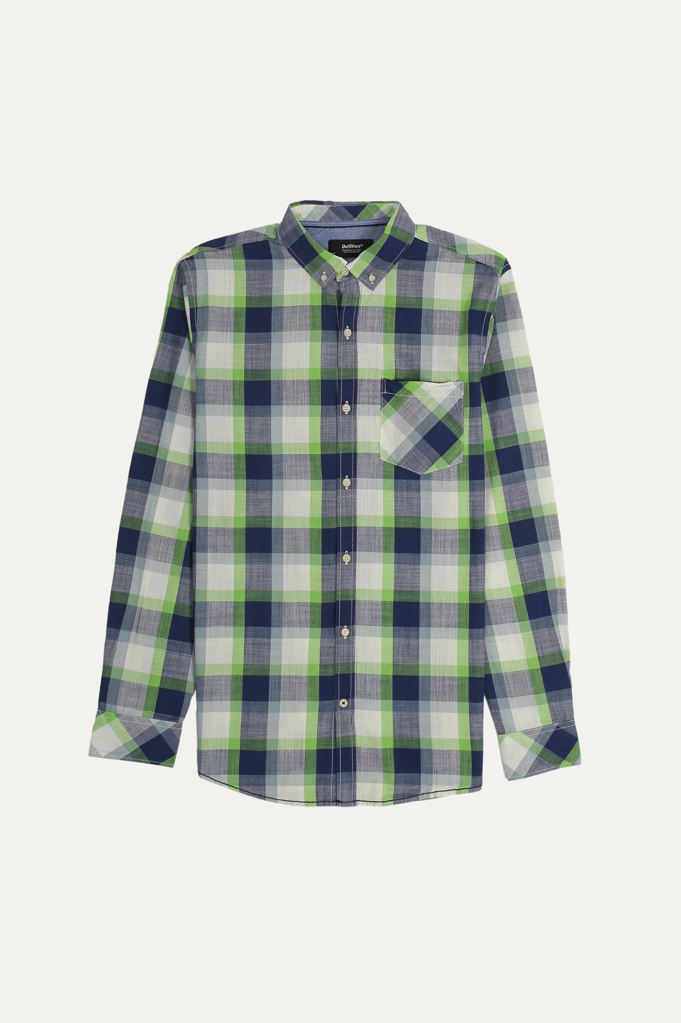 Check styled Long sleeve shirt with buttoned cuffs, classic collar, lining back with button up front