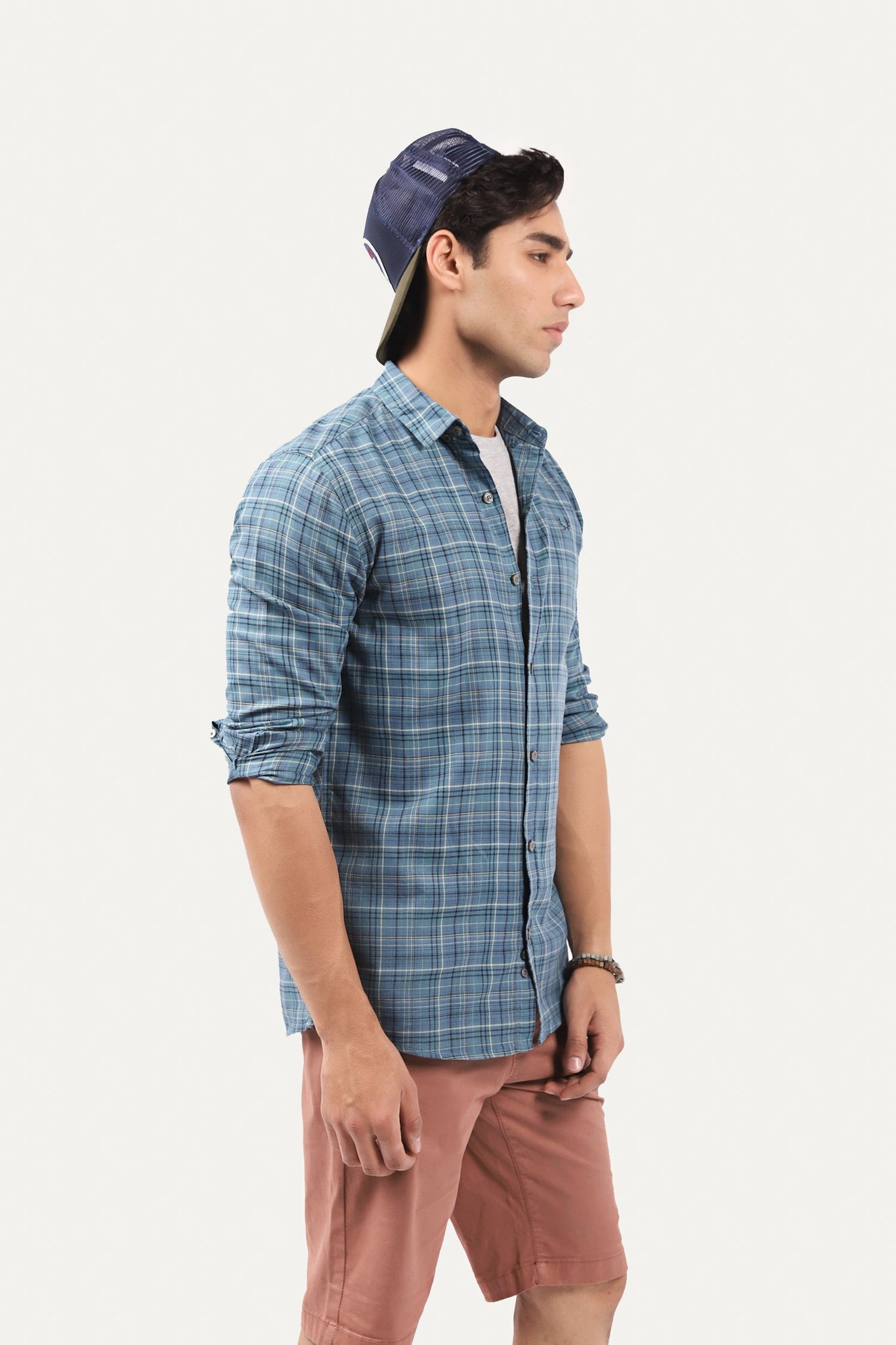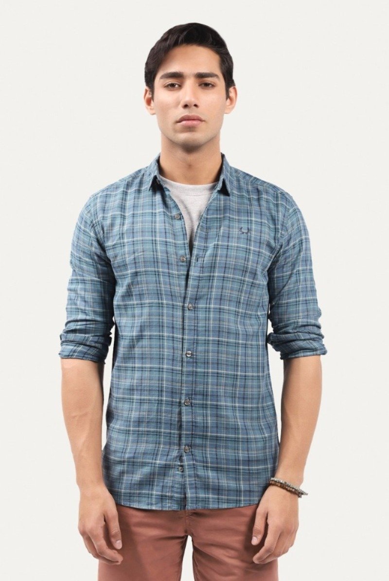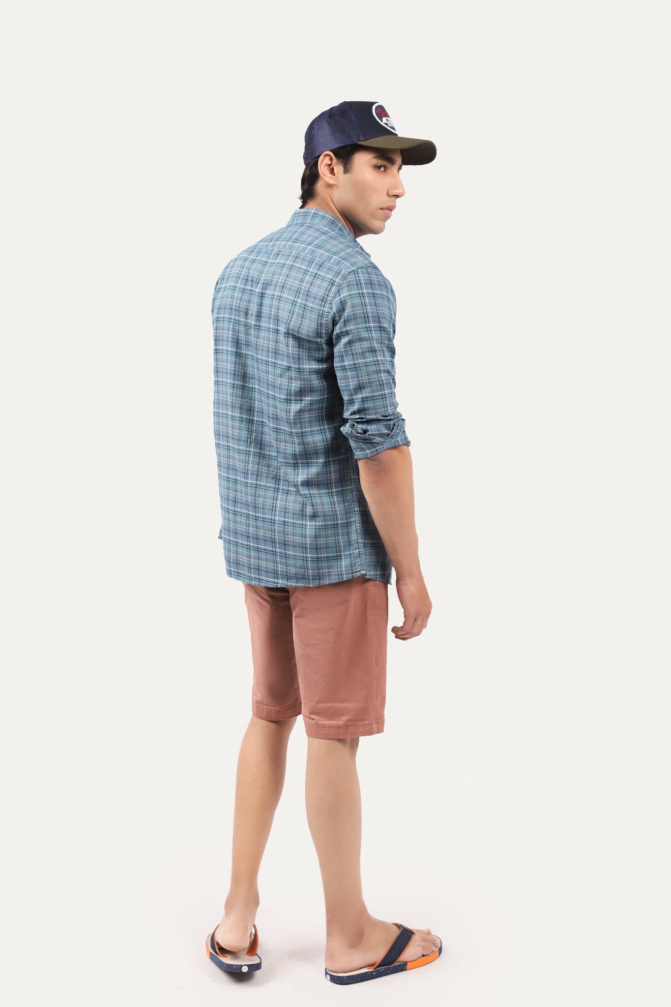 Long sleeve shirt with buttoned cuffs, classic collar, printed lining and button up front