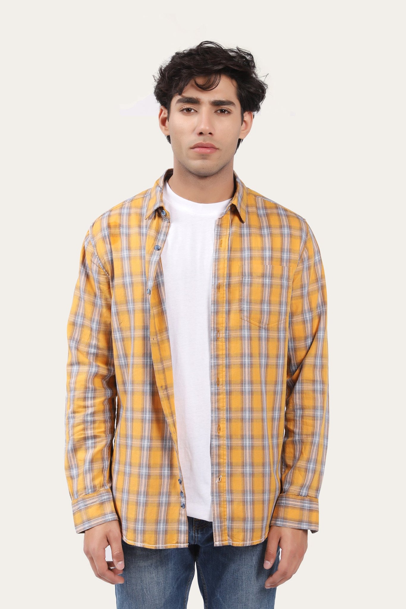 Classic collar chequered shirt with button up front, long sleeves, one chest pocket and buttoned cuffs
