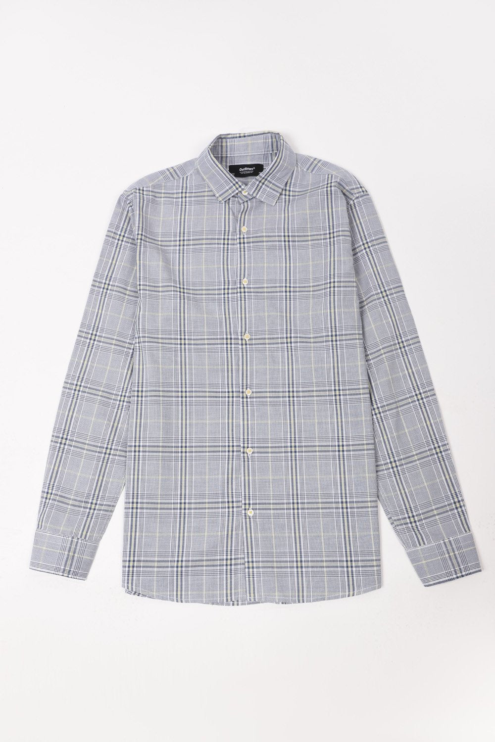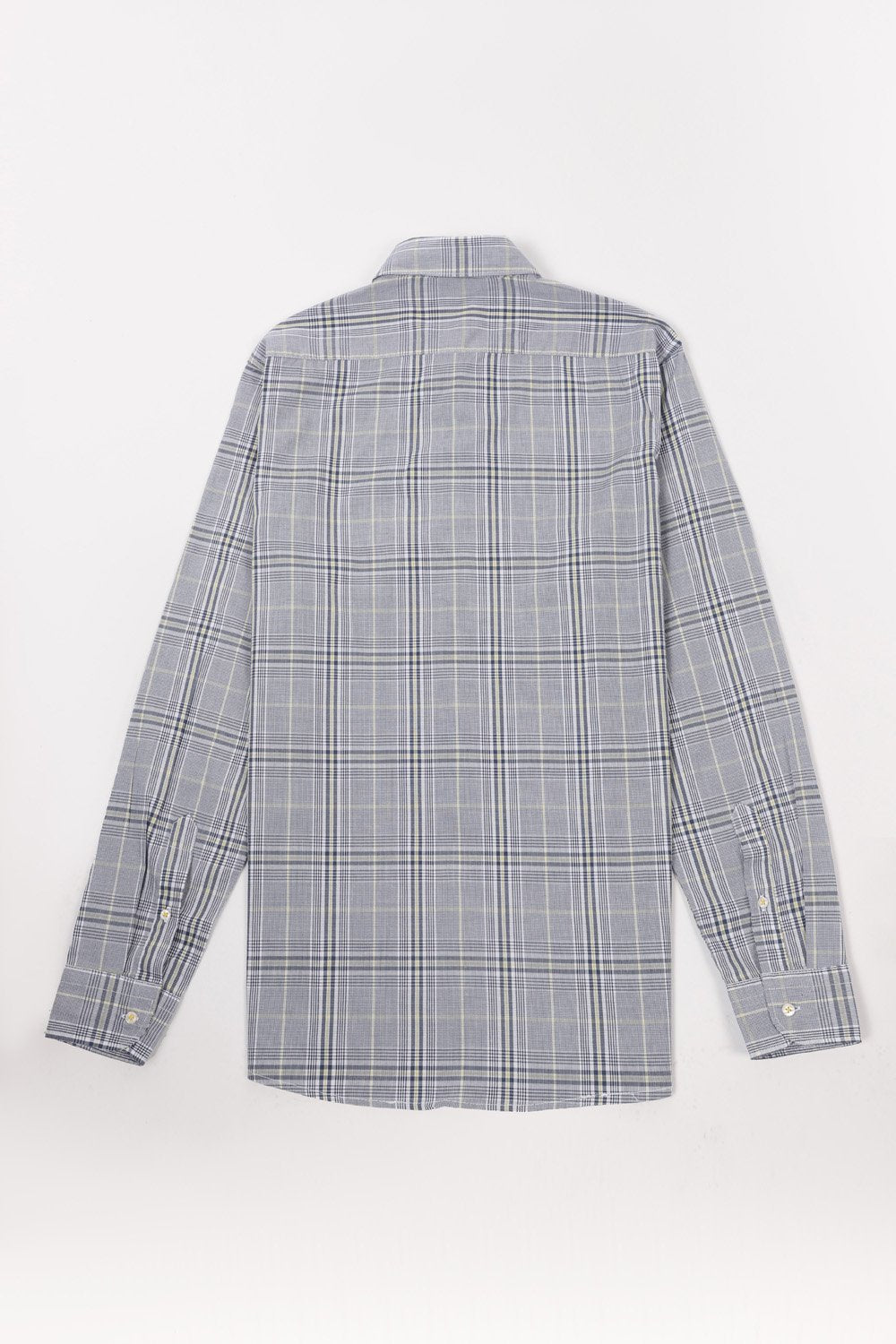 Plaid pattern shirt featuring classic collar, button-up front and long sleeves with buttoned cuffs