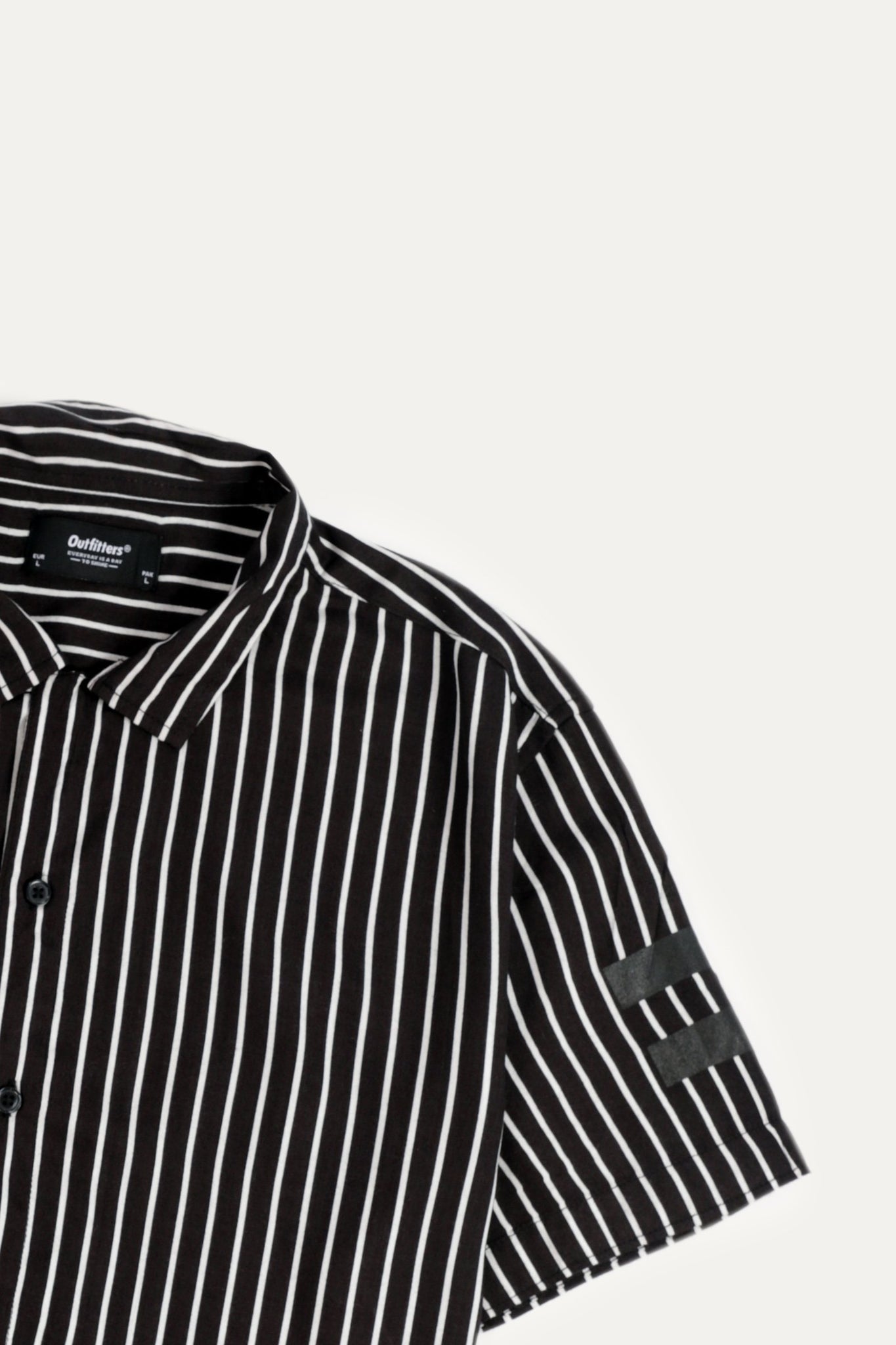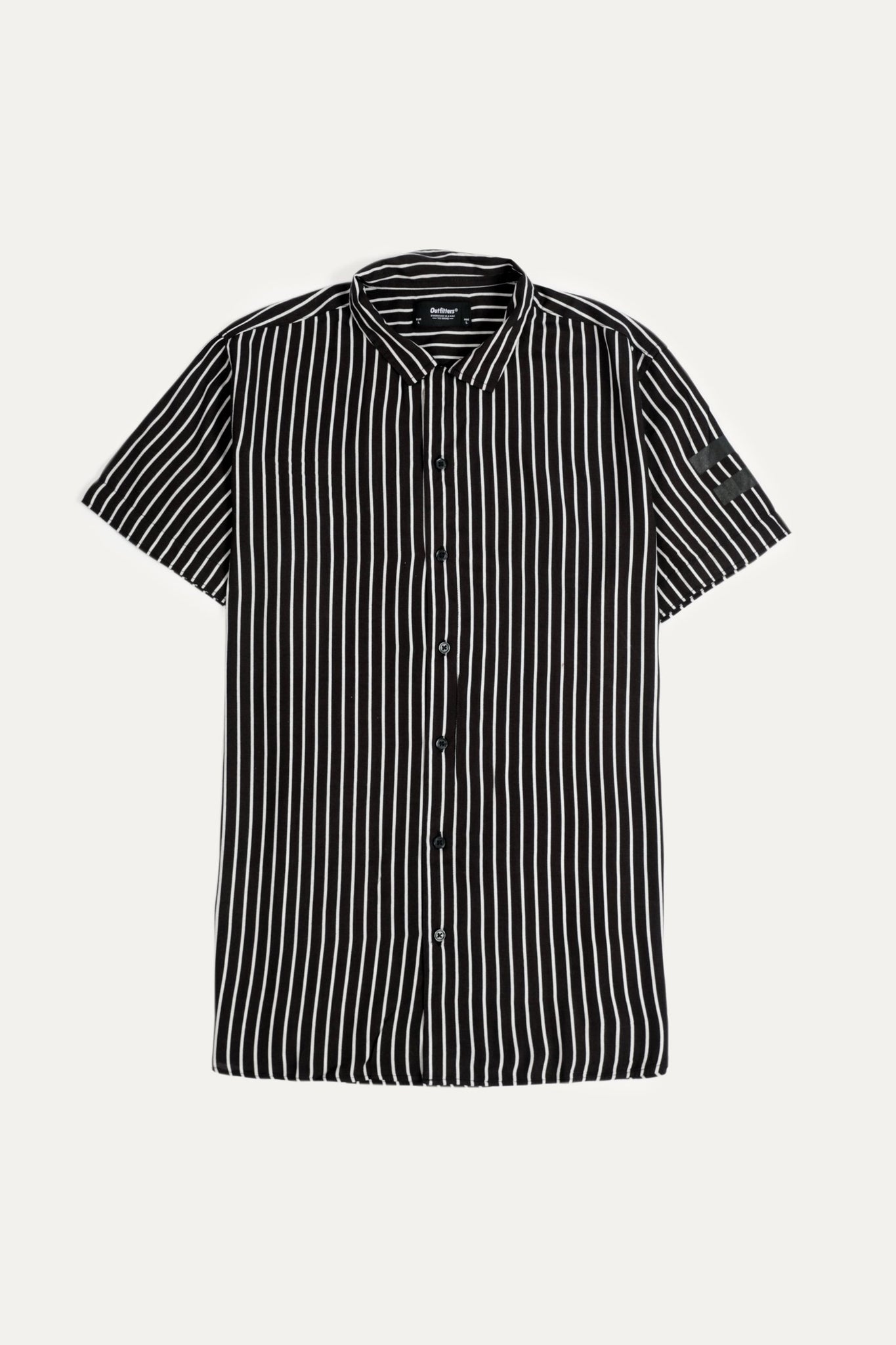 Shirt with buttoned collar front, half sleeves with stripes on side, lining detail front and back