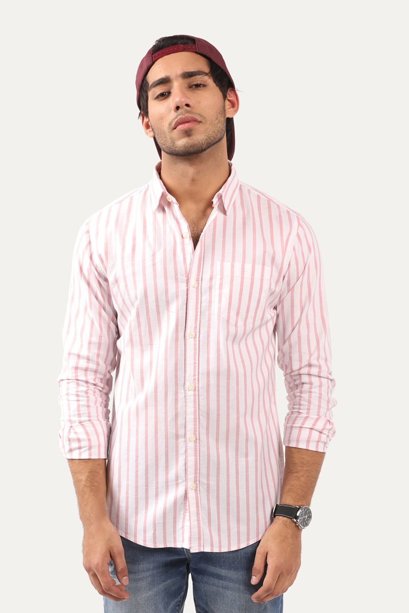 Lining design shirt featuring classic collar, button-up front and long sleeves with buttoned cuffs