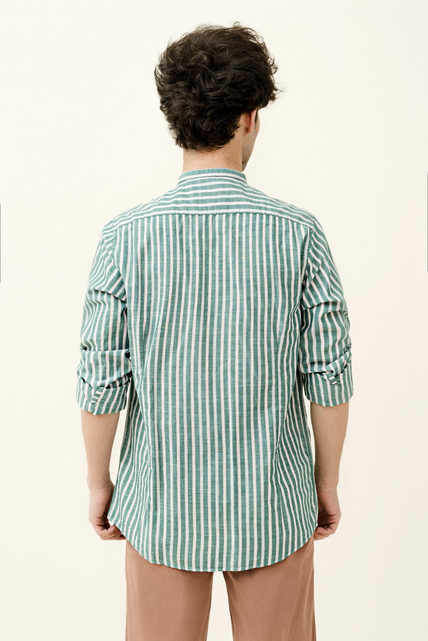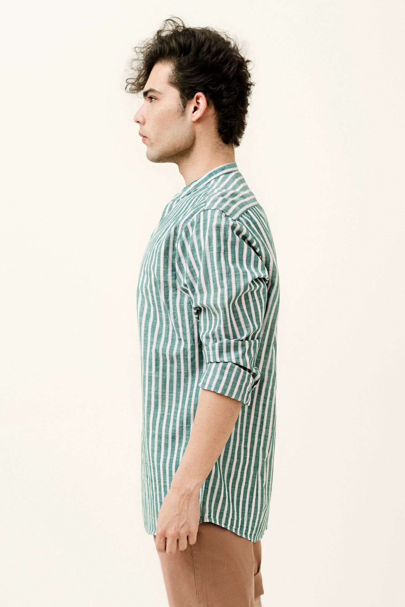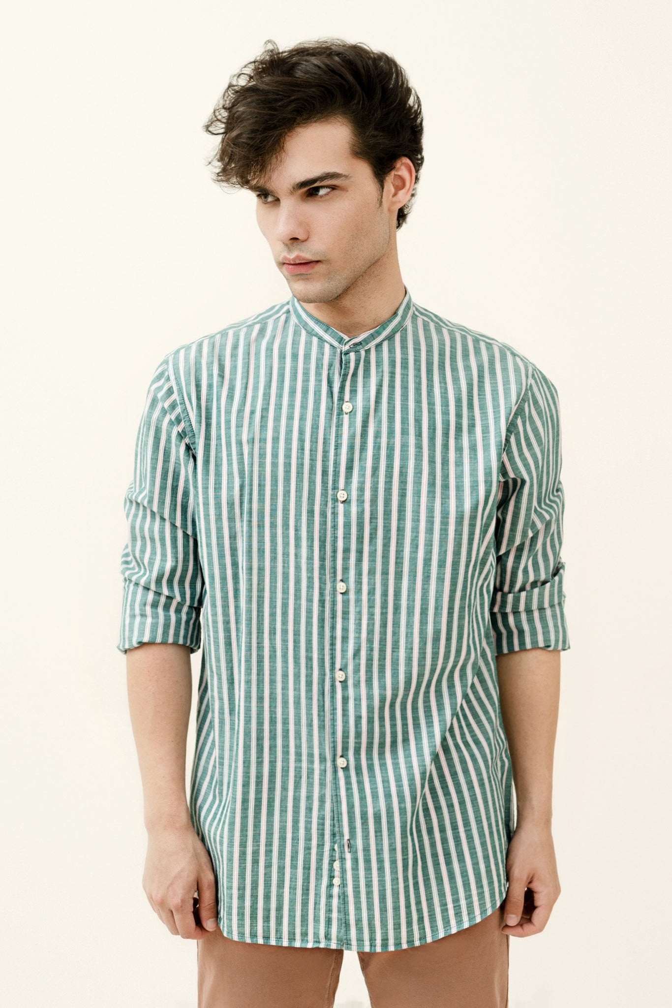 Full sleeves shirt with classic collar, button up front and broad lining design