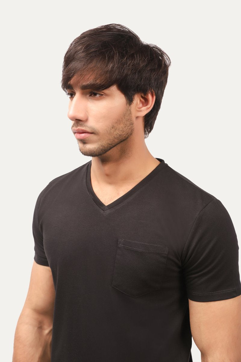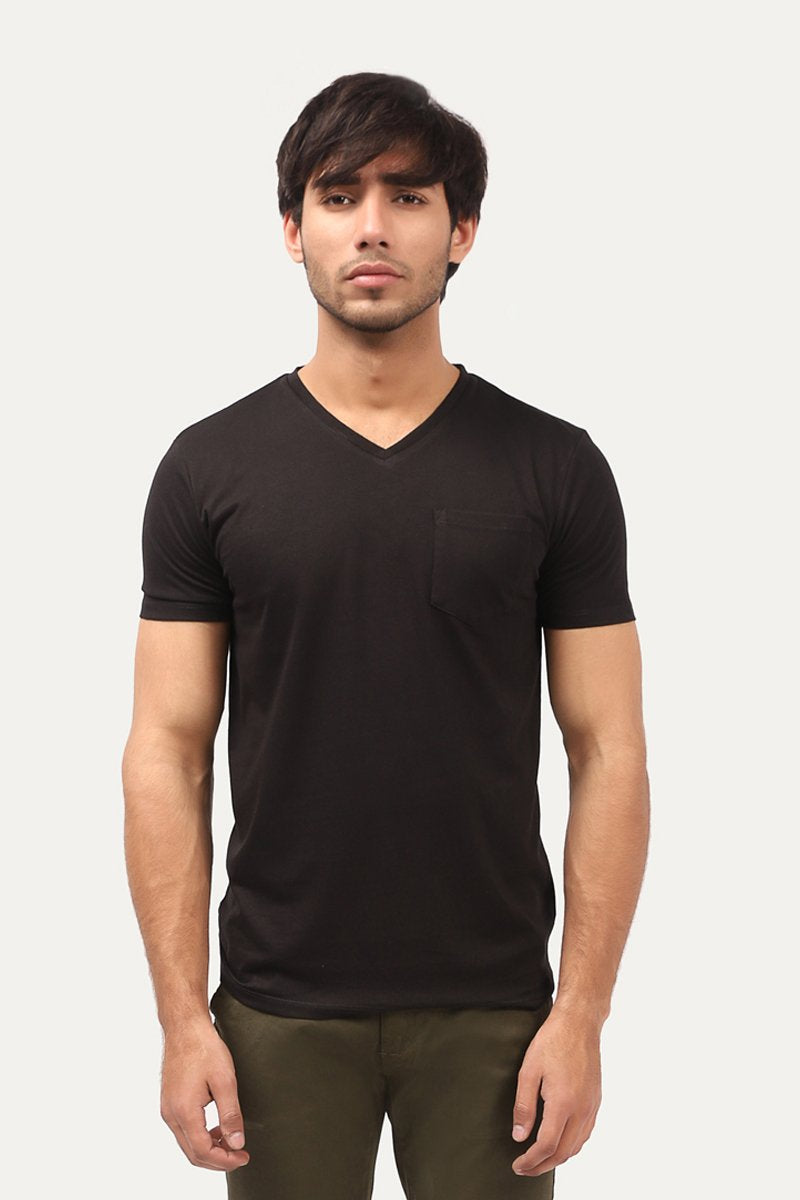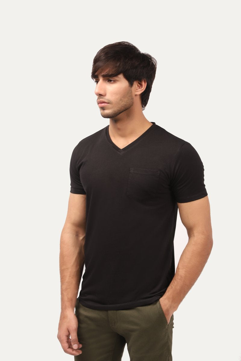T-shirt featuring half sleeves, V-neck and one chest pocket