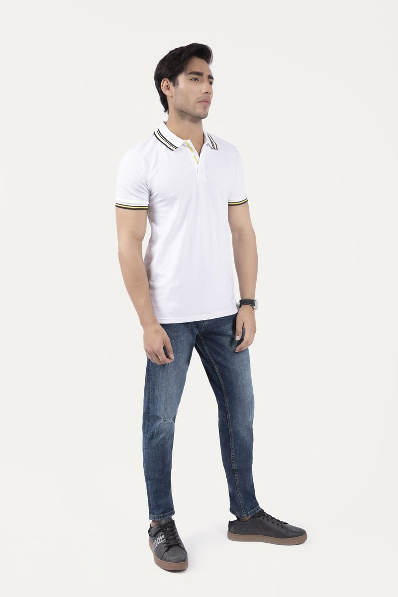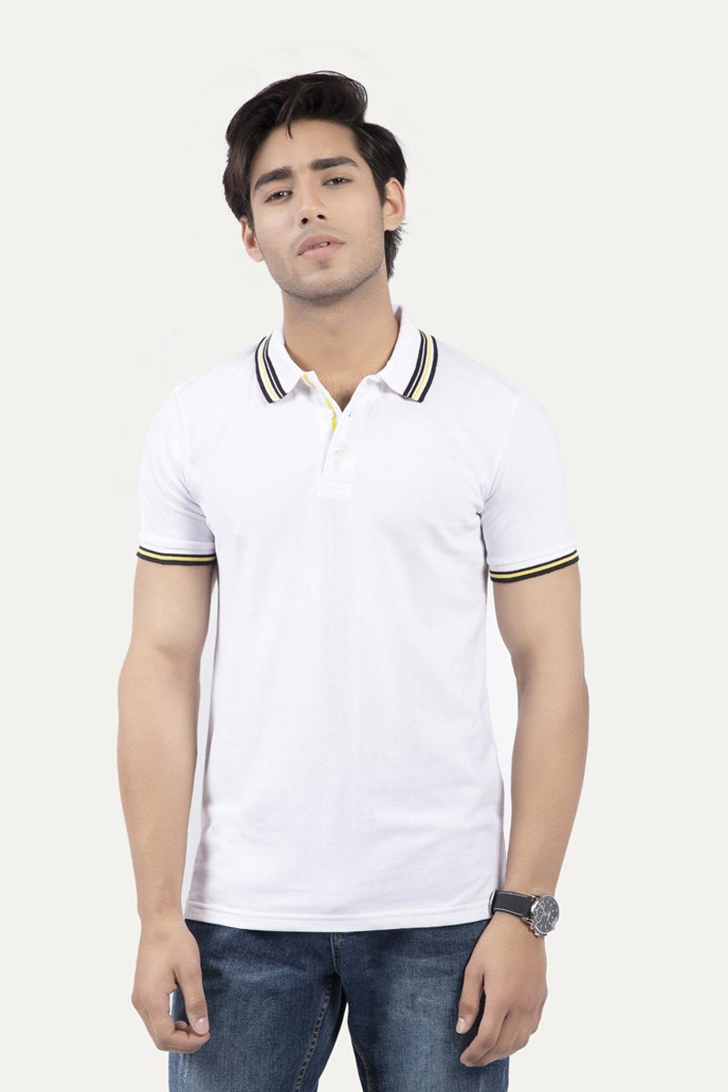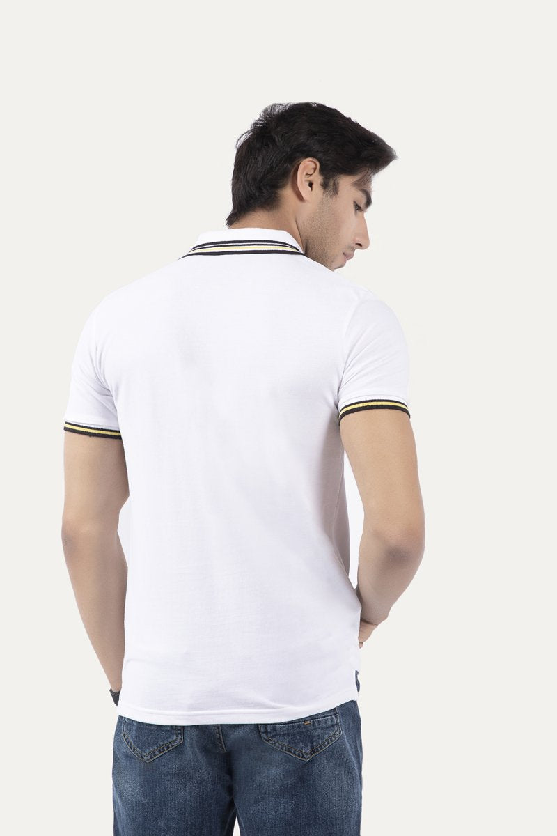 Stripes Collar Polo Shirt with half sleeves, plain back