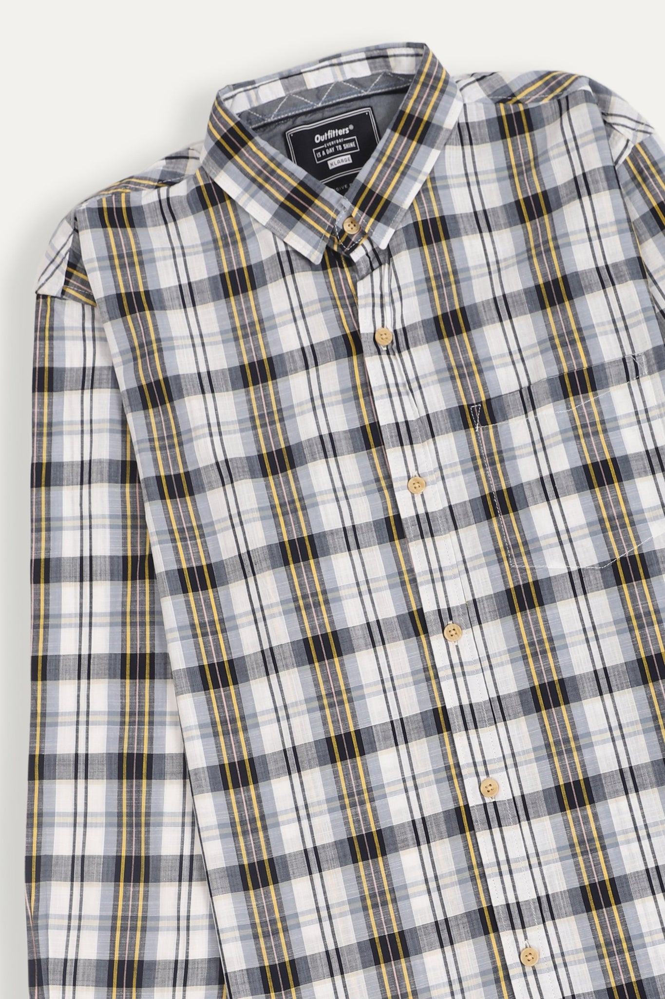 Product Description: Check styled Long sleeve shirt with buttoned cuffs, classic collar, lining back with button up front