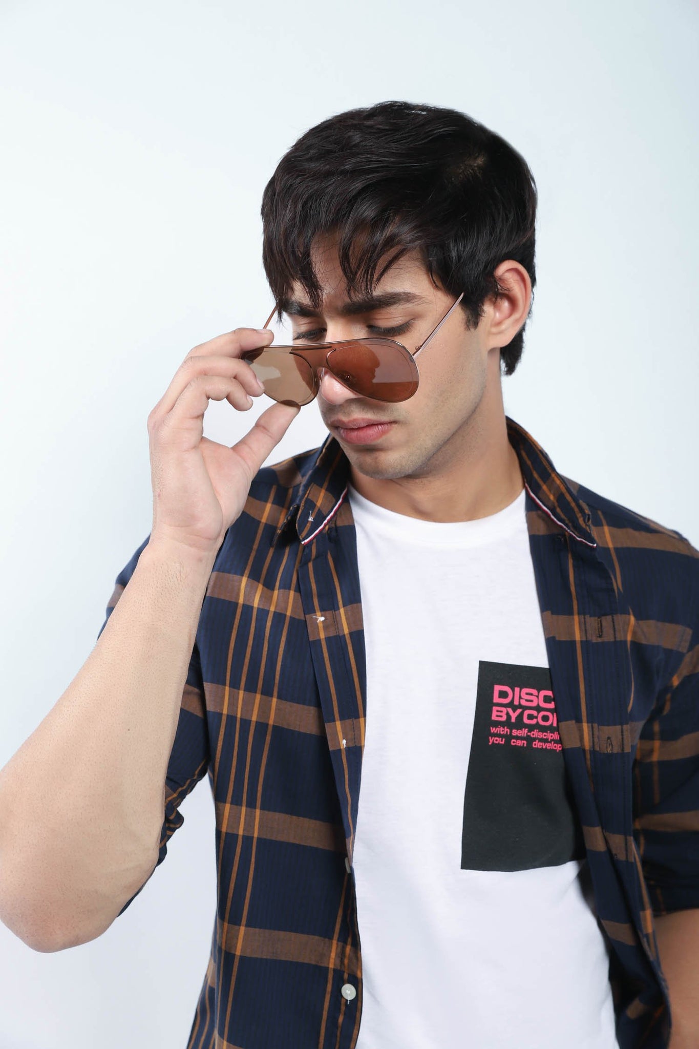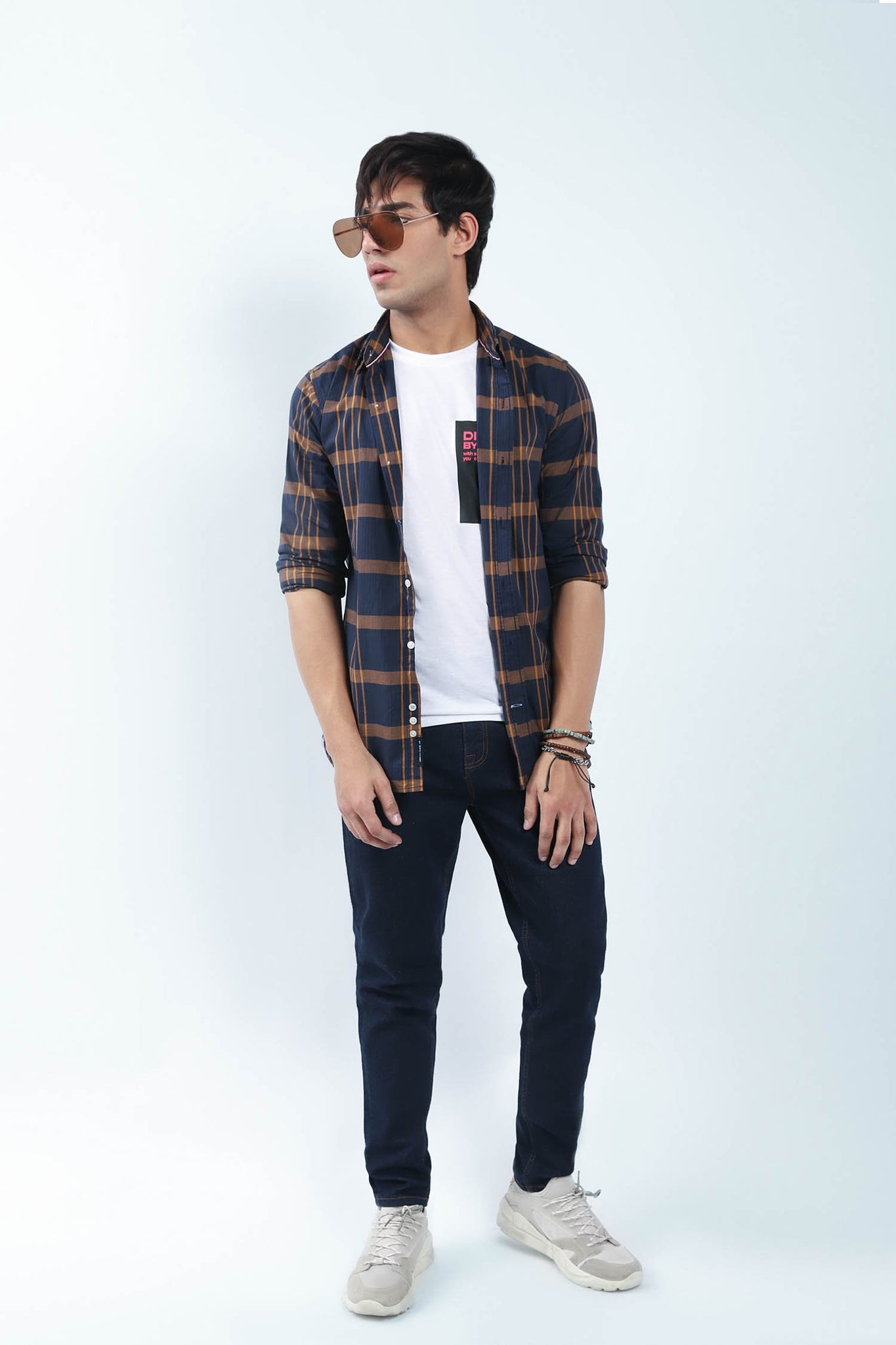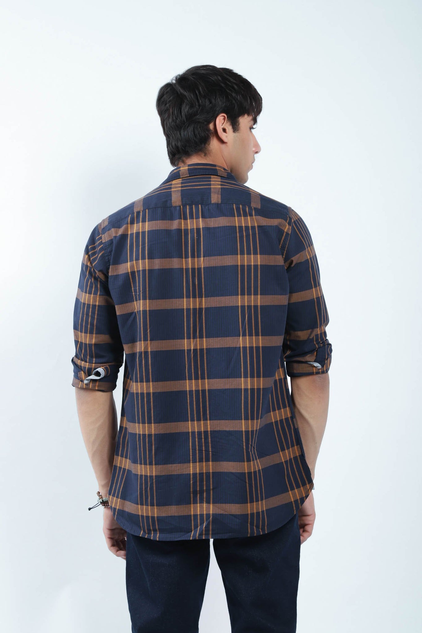 Check styled Long sleeve shirt with buttoned cuffs, classic collar, plain back with button up front