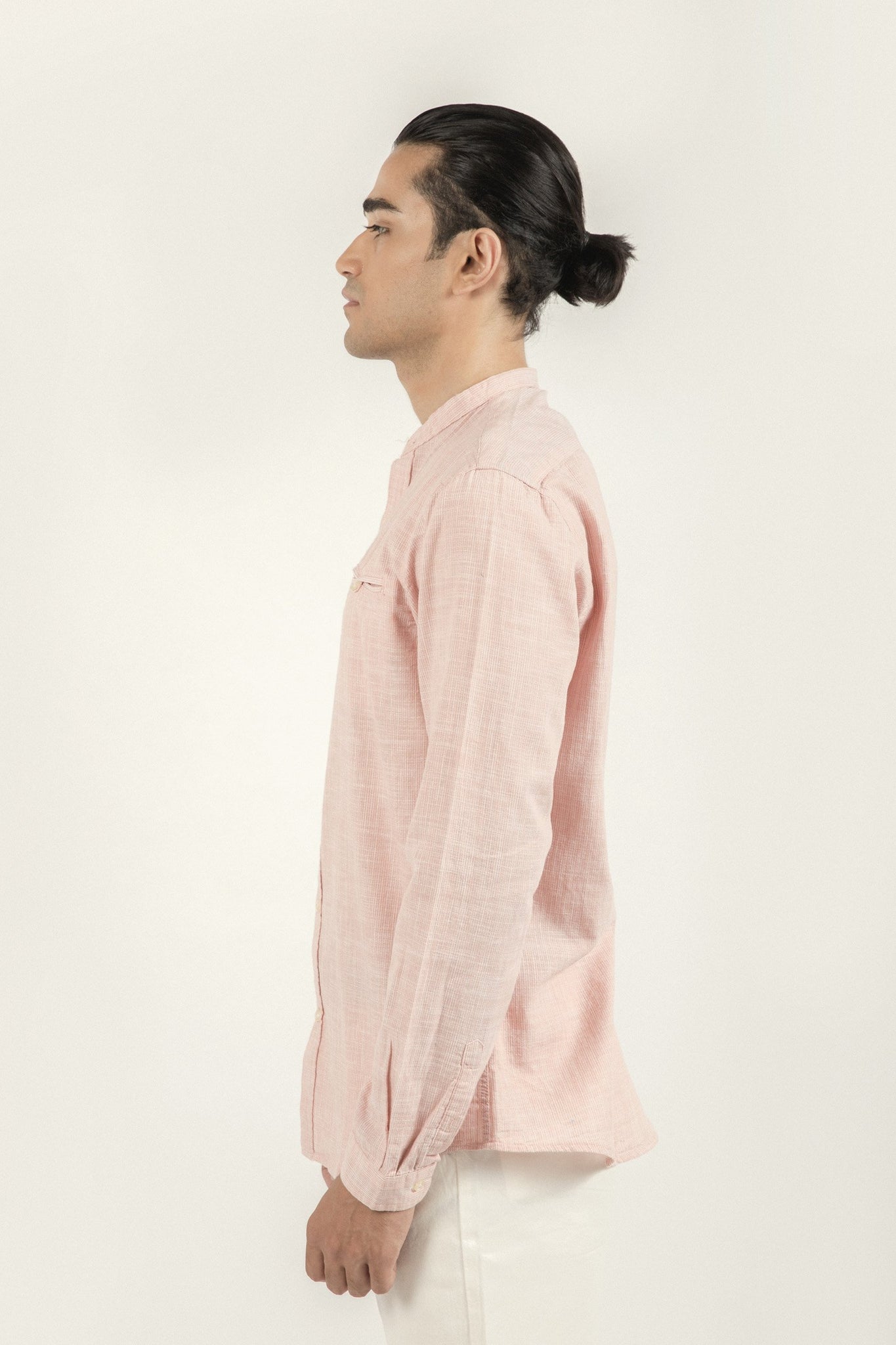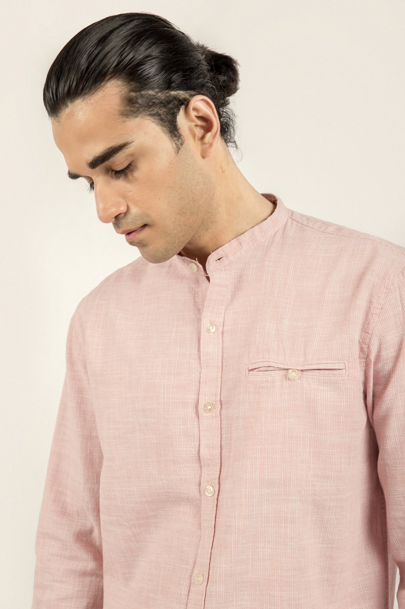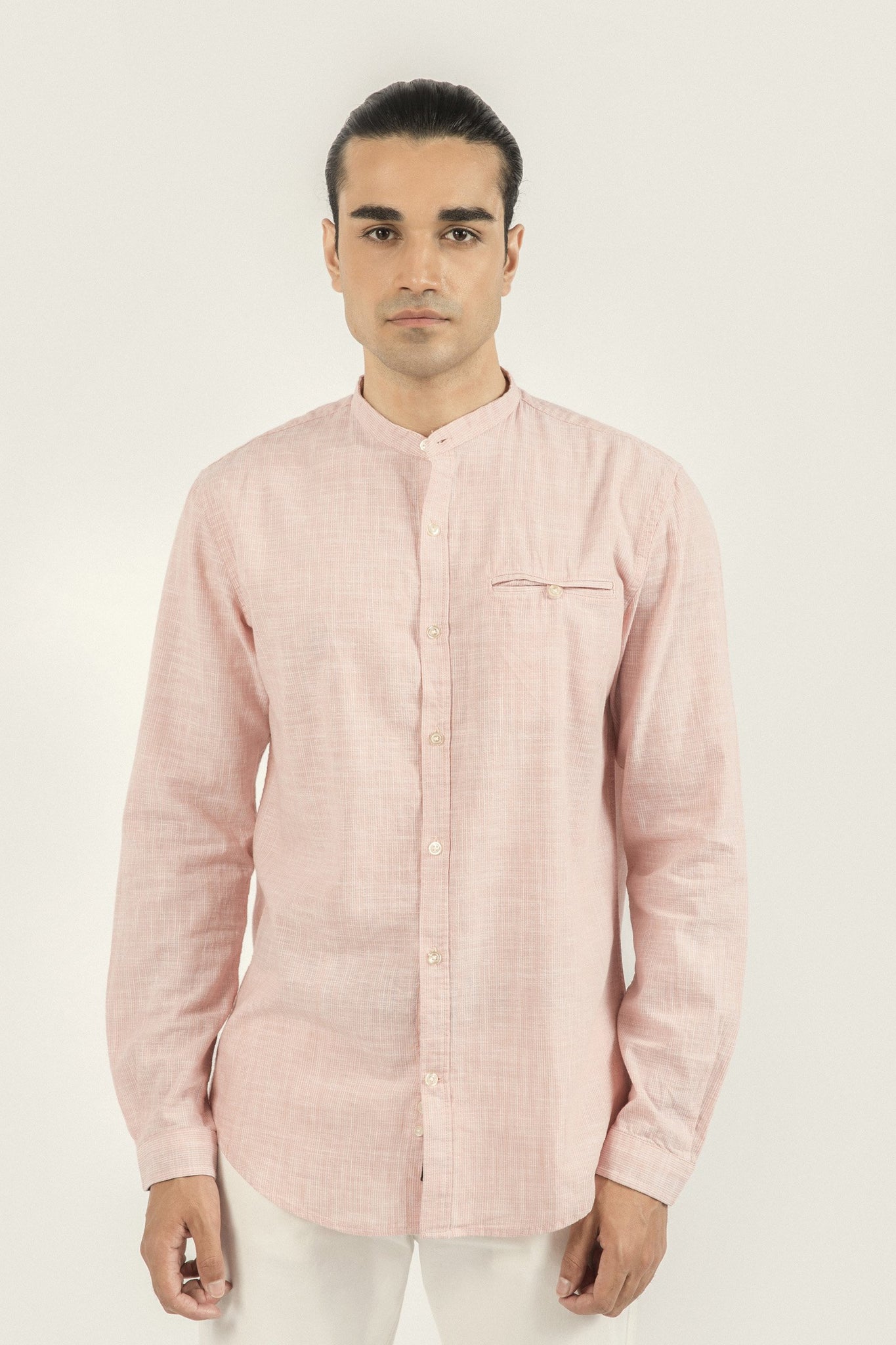 Long sleeve shirt with buttoned cuffs, buttoned front pocket, classic collar, plain back and buttoned up front