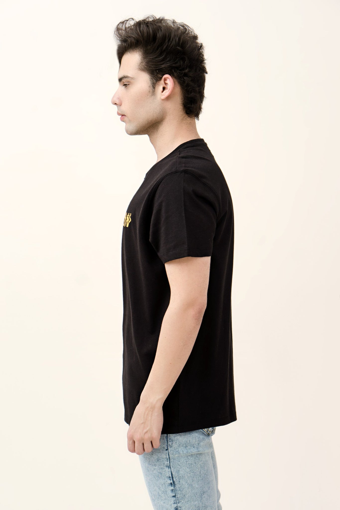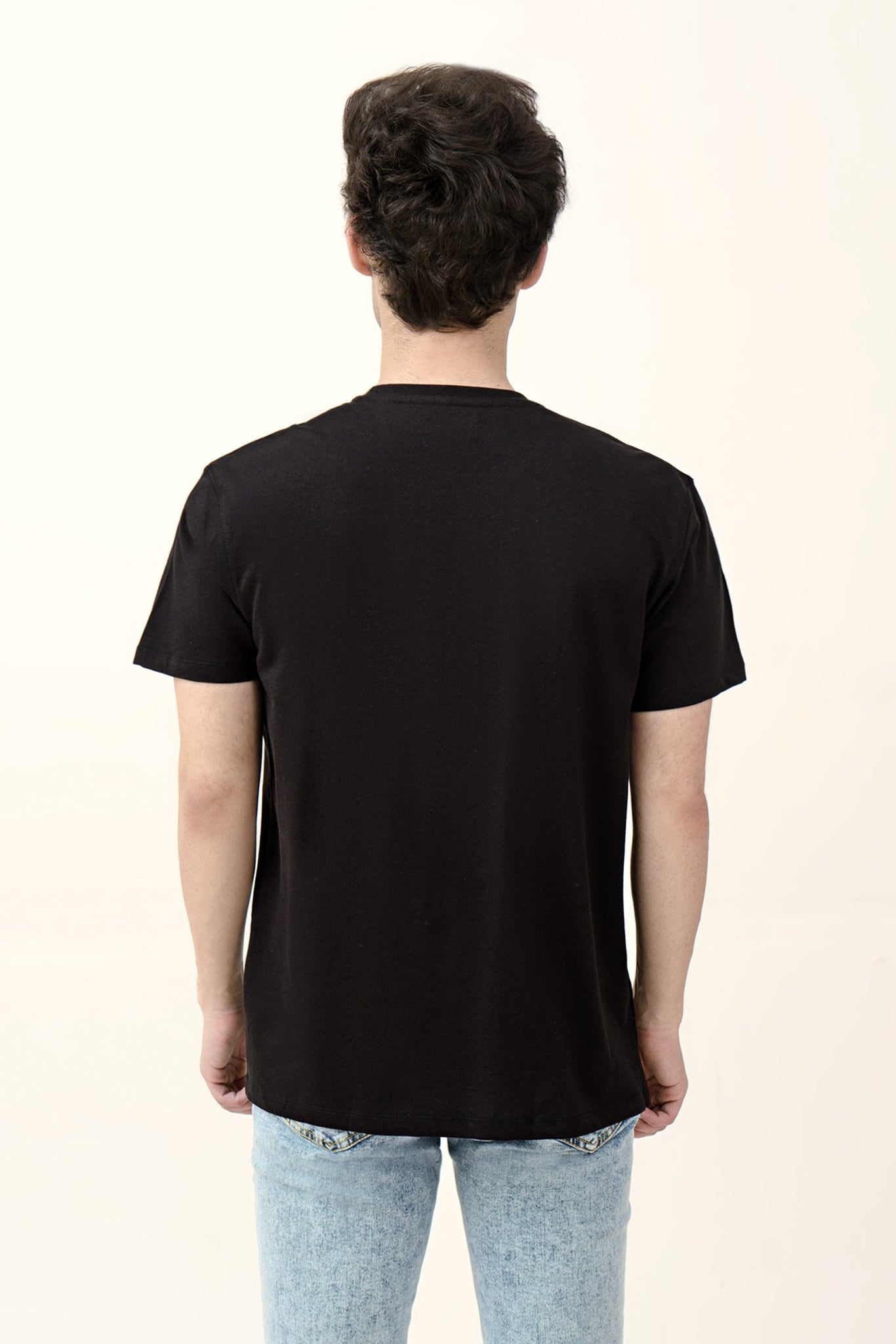 Round neck plain t-shirt with half sleeves and one printed design on chest